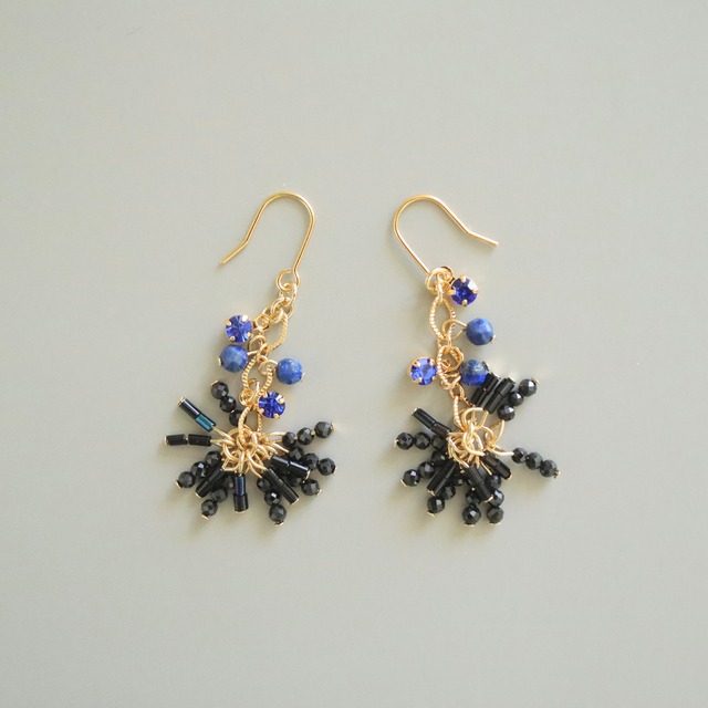 ● 使用素材 : フランスアンティークビーズ、フランスヴィンテージビーズ、 天然石ガーネット、ダルメシアンジャスパー、ブラックスピネル ピアス(チタンポスト)イヤリング(金メッキ) ● サイズ : 25×13mm(着用写真参考) ・・・・・・・・・・ ヴィンテージ、アンティーク、天然石などを ランダムに編み込んで制作した華やかなデザイン。 揺れずにピタッと止まるため、 ロングヘアでも髪に絡まずにお使いいただけます さまざまな透明感あるパーツを重ねた一点ものジュエリー 全く同じ配置のデザインは唯一無二です。 クラシカルなブラックのアンティークビーズと 部分的にスピネルを忍ばせ、 シルエットの異なる奥行きを表現しました。 透け感をほんのり感じる真っ赤なガーネットを リボンのようにライン上に配置し、 ダルメシアンジャスパーとともに 女性らしい抜け感をお楽しみいただけます◎ ・・・・・・・・・・ ● ギフトラッピング承ります 当店商品ページにもあげております、 ギフトボックスでのラッピングを選択できます。 ご希望の方はタブよりお選びくださいませ。 ・・・・・・・・・・ ゴールド、コンテンポラリー、式、オケージョン、可愛い、大人、洗練、抜け感、プレゼント、ギフトラッピング、アンティーク、ヴィンテージ、天然石、ブラック、黒、クラシカル、モノトーン、レッド、赤、紅、シック