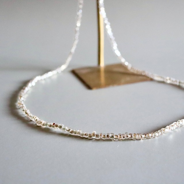 ・・・・・・・・・・・・ コツは、「シロミ」 シルバーの味方は白です ・・・・・・・・・・・・ 【ゴールド派のためのシルバーアクセサリー】を作りました。 ☑︎ガラスによるシルバーで光を取り込み、肌馴染み◎ ☑︎白みの強いシルバーは、イエベさんにも似合いやすい ☑︎メタル感がないので 軽やか & 柔らかい印象に。 ・・・・・・・・・・ ほのかにキラッと品の良いネックレスです。 普段シルバーは苦手、と言う方に向けて制作したアクセサリー。 シルバーアクセサリーの特徴でもあるシャープな無骨さは、 人によっては難しいと感じる点。 今期トレンドのシルバーアクセを、普段のワードローブに加えやすく 特に白のお洋服への相性◎のアクセサリーになっています。 サイズ 約40㎝ 素材 ヴィンテージビーズ、本ロジウム ・・・・・・・・・・ ● ギフトラッピング承ります 当店商品ページにもあげております、ギフトボックスでのラッピングを選択できます。 ご希望の方はタブよりお選びくださいませ。 ・・・・・・・・・・ ネックレス、necklace、シルバー、silver、キラキラ、夏、フェミニン、合わせやすい、華奢、シンプル、上質、上品、普段使い、ギフト、プレゼント、光沢、ヴィンテージ、アンティーク、ニュアンス