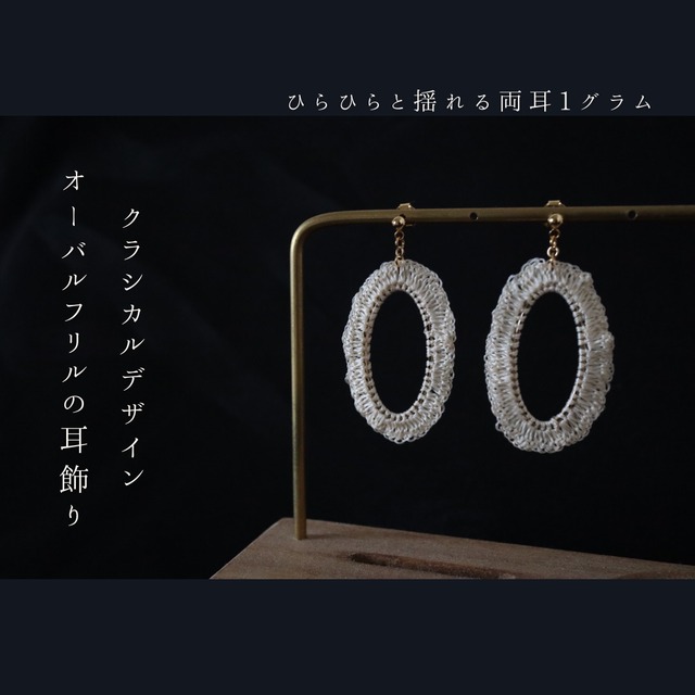 ――――――――――――――――――― ◻︎ 受注制作の耳飾り ― 柔らかなシルクレース ◻︎ ――――――――――――――――――― こちらは受注をいただいてから制作する作品です。 発送までにおよそ7日ほどお時間をいただいております。 イベント出店時は発送スケジュールが異なることもありますので、 恐れ入りますがプロフィールでご確認くださいませ。 ――――――――――――――――――― ◻︎ 素材・サイズ ◻︎ ・ワイルドシルク糸(染色なしの生成り色) ・16kgp(ゴールドメッキ) ・レース直径 約17mm(約2cm弱の小さめサイズ) ――――――――――――――――――― 自然のままの生成りシルク糸で編んだ、 繊細なレースモチーフの耳飾りです。 やわらかなサークル形に、ナチュラルなフリルを添え、 甘すぎず落ち着いた印象に仕上げました。 小さめのサイズ感なので、 大人の女性にも気軽につけていただけるデザインです。 今年のフェミニンファッションにもぴったり合います。 ――――――――――――――――――― 両耳で1グラム未満ととても軽く、 長時間つけていても耳が疲れにくいのが嬉しいポイント。 これからの暖かい季節のお出かけに、 そっと寄り添うアクセサリーとしておすすめです。 ――――――――――――――――――― ◻︎ ギフトにもどうぞ ◻︎ ギフトラッピングも承っております。 当店の商品ページより、 ギフトボックスでのラッピングをお選びいただけますので、 贈り物にもぜひご利用ください。 ――――――――――――――――――― シルク/レース/フリル/レース編み/かぎ針編み/ ナチュラル/自然/生成り/小ぶり/プチ/丸/輪/羽根/ 繊細/華奢/上品/エクリュ/キナリ/ギフト/ 大人可愛い/プレゼント