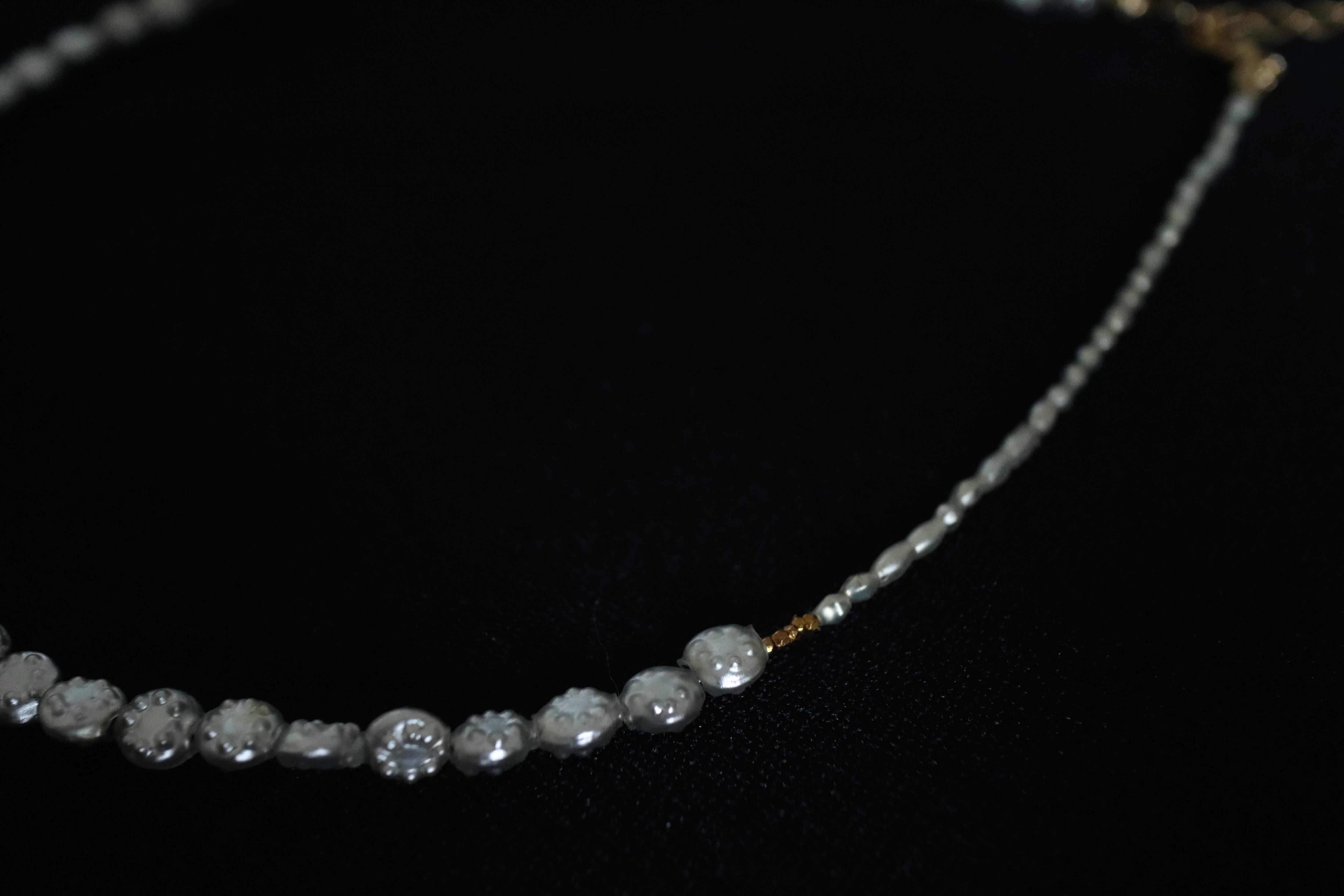 アクセントにあしらったメタリックゴールドのビーズも