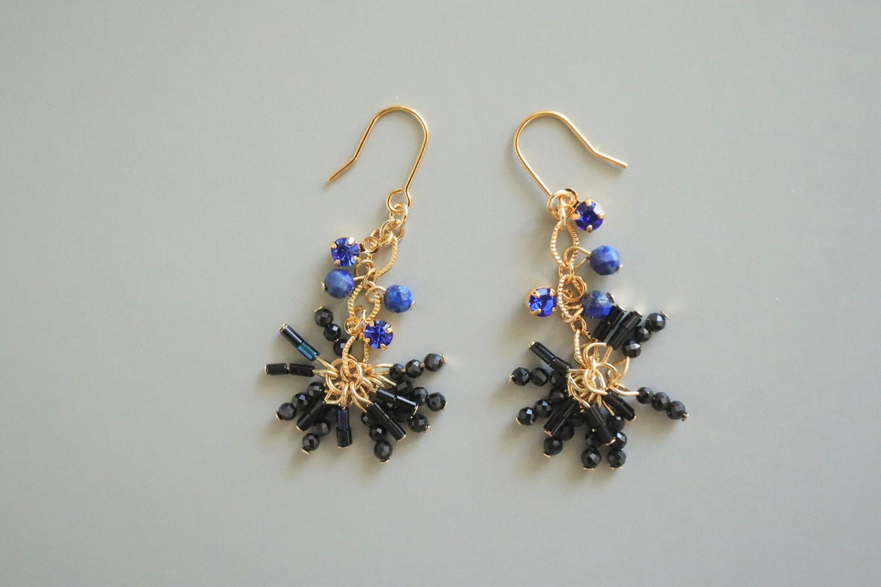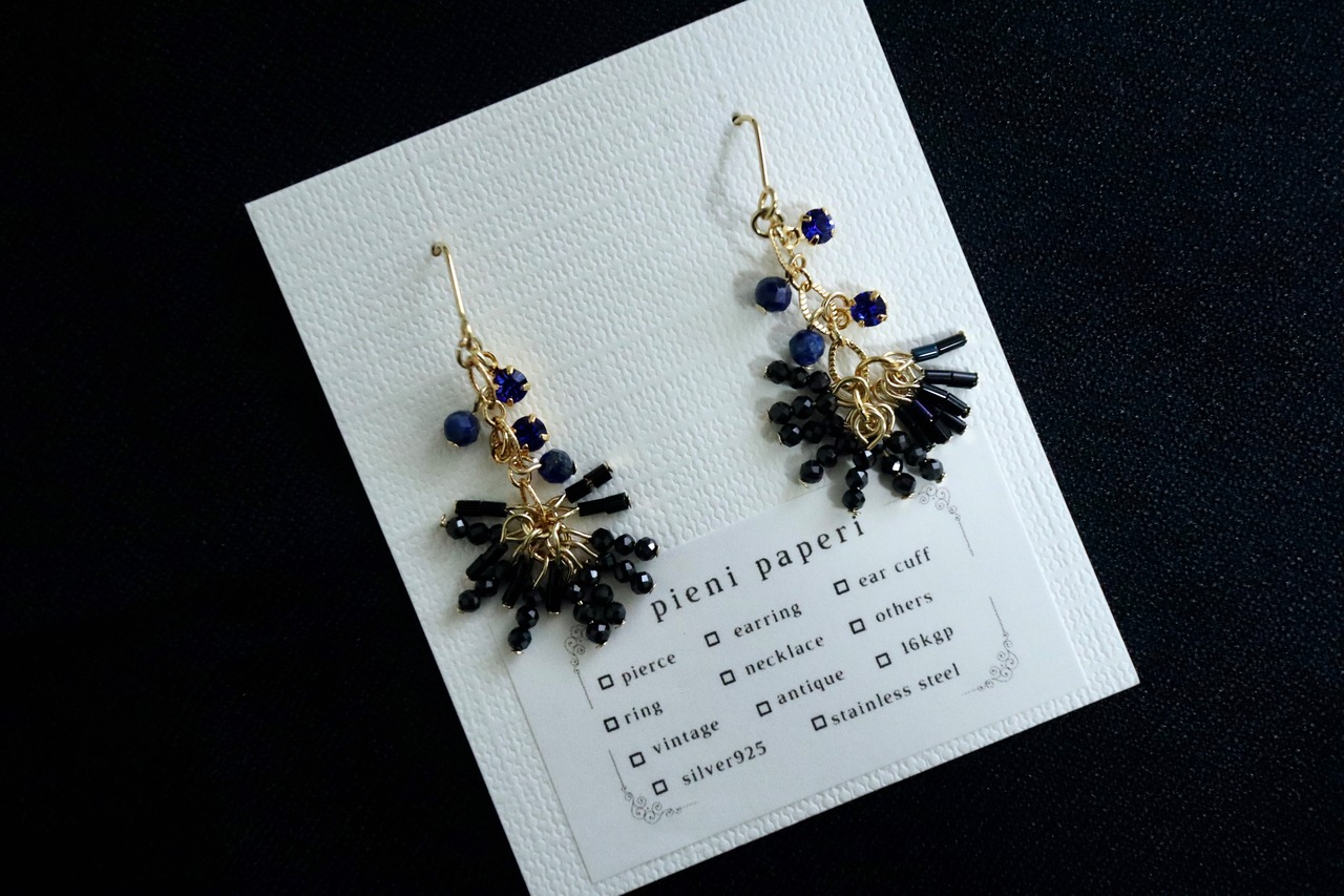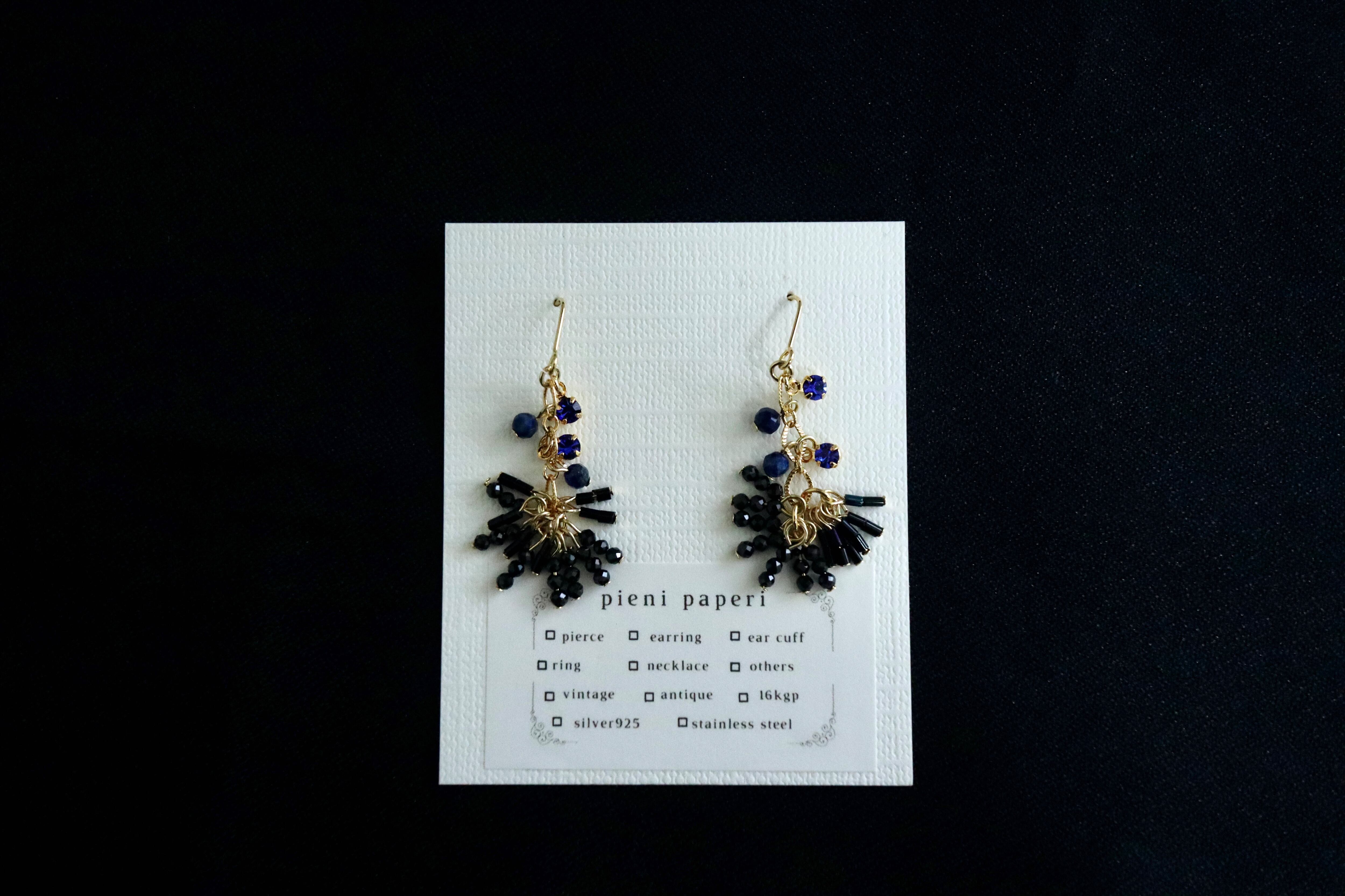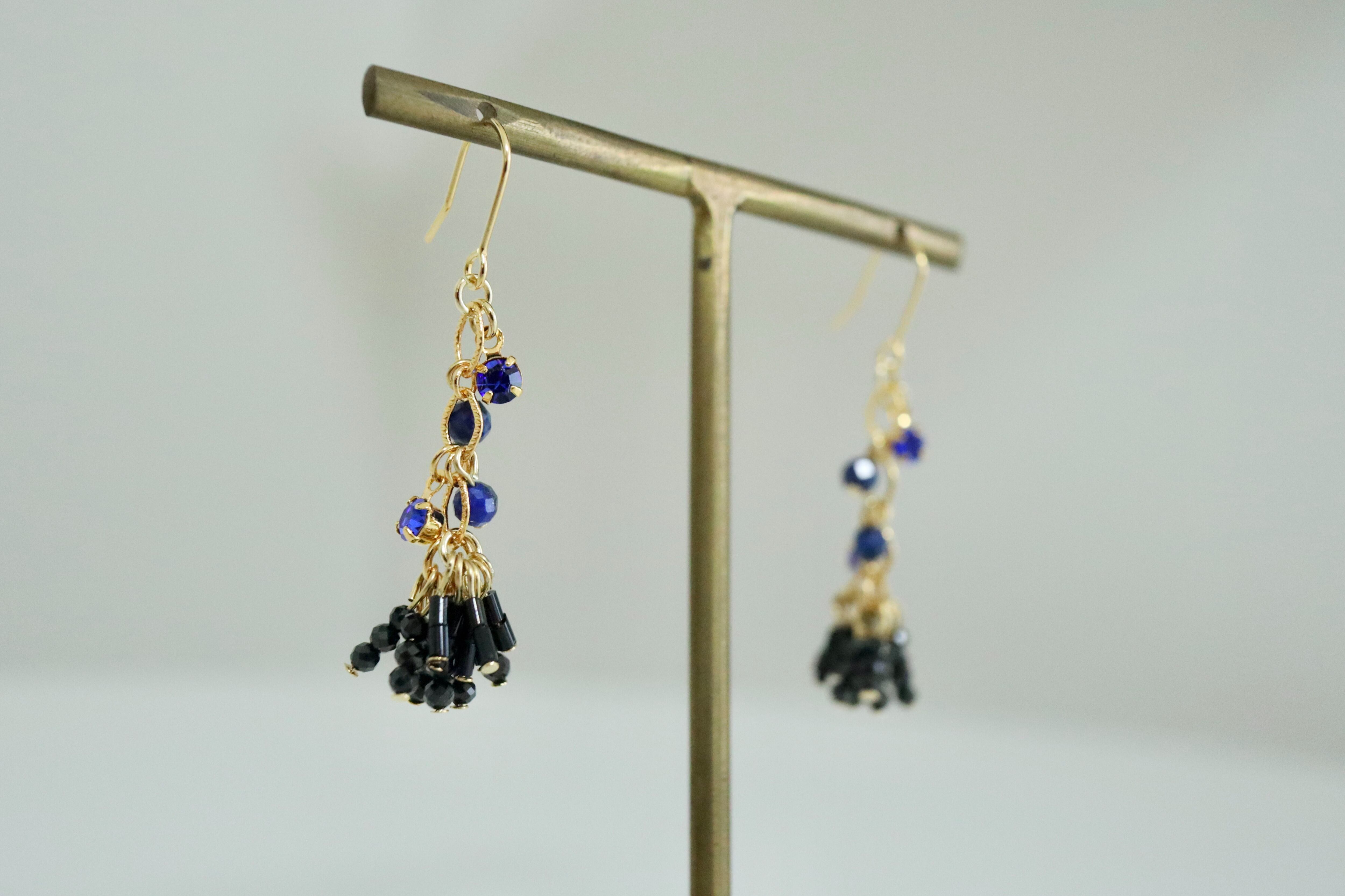 ピアス イヤリング 天然石 ブラックスピネル ソーダライト 揺れる 華奢 繊細 ゴールド ジュエリー アクセサリー 大人の女性 上品 シンプル 特別 贈り物 自分へのご褒美 揺れるピアス 天然石ピアス