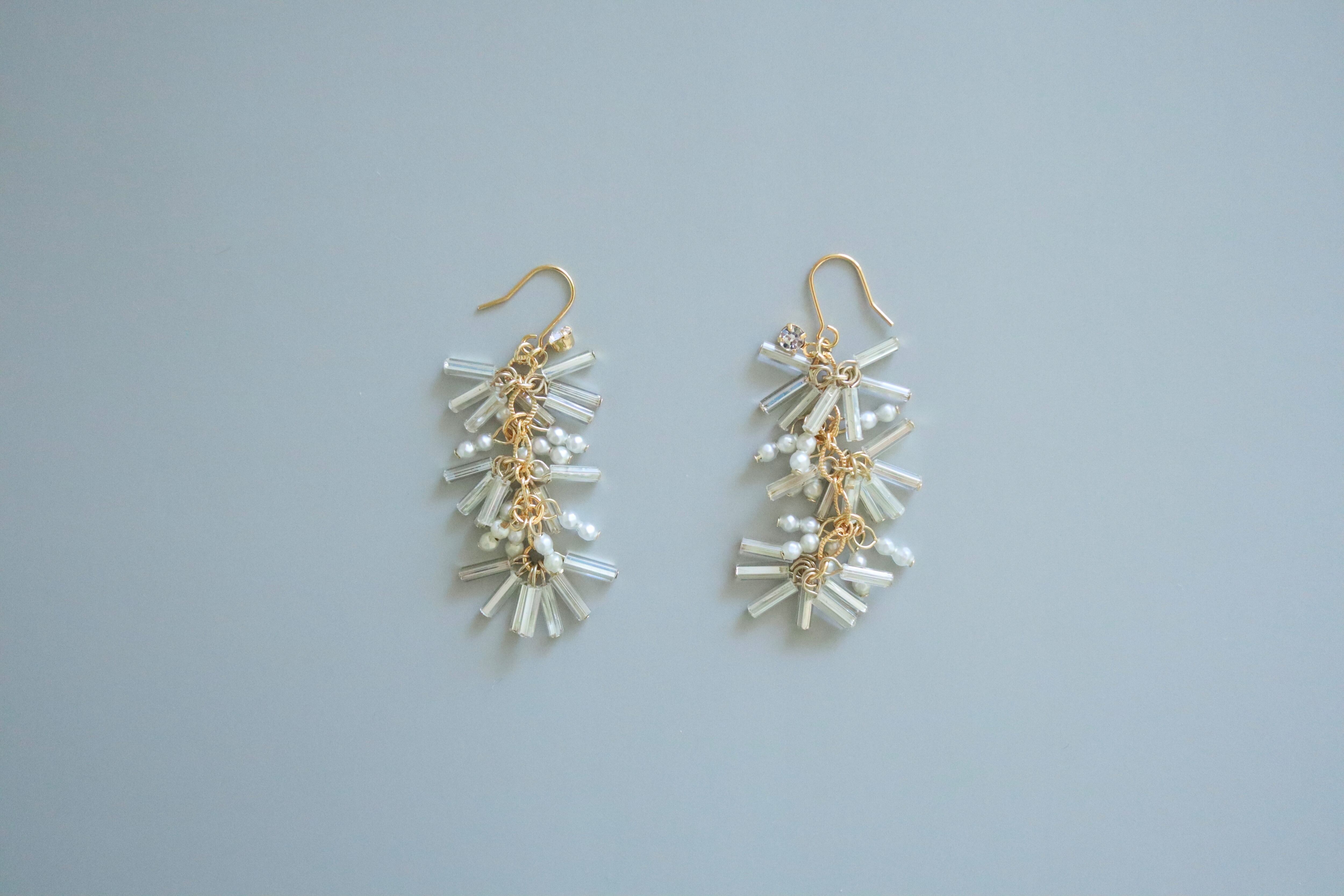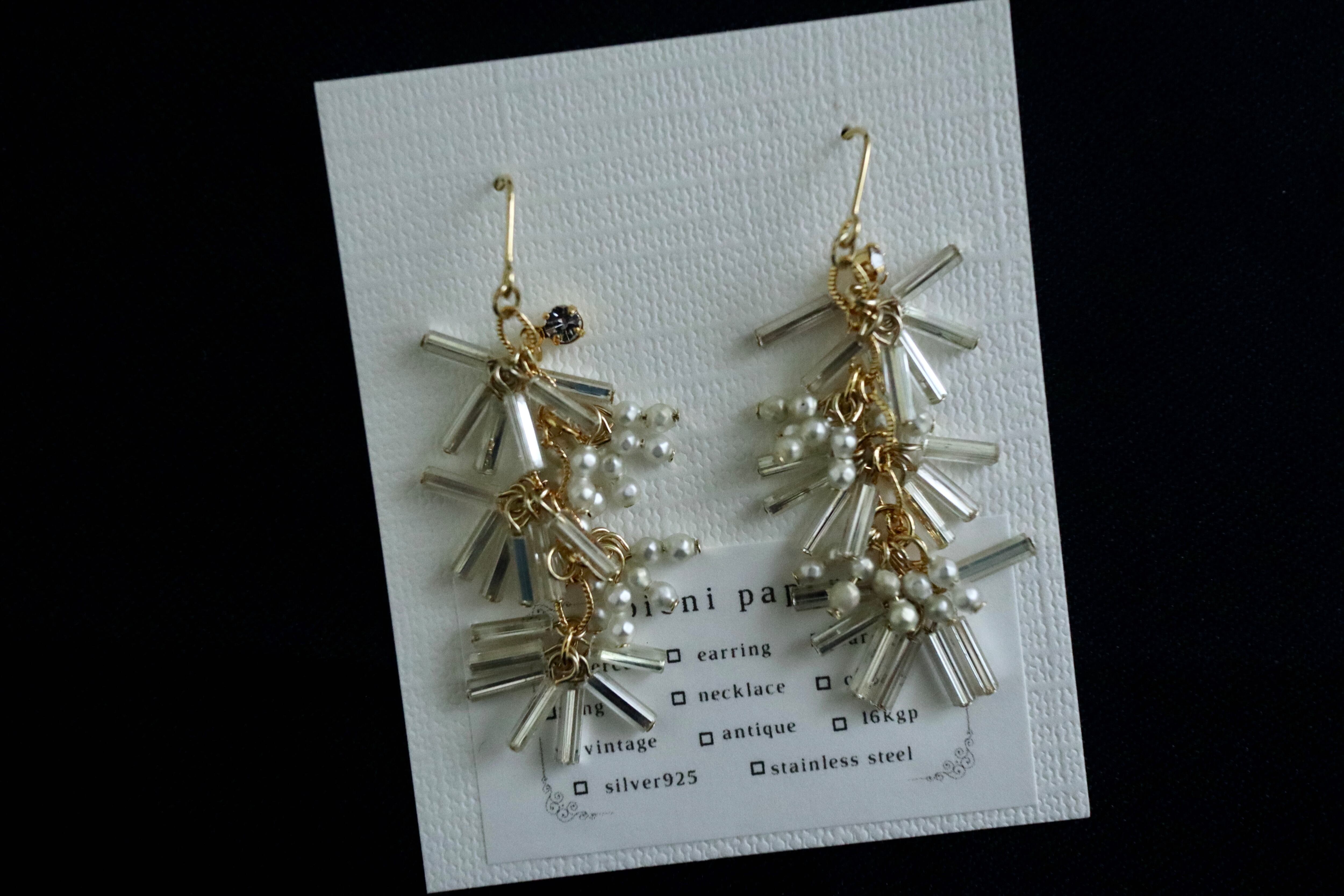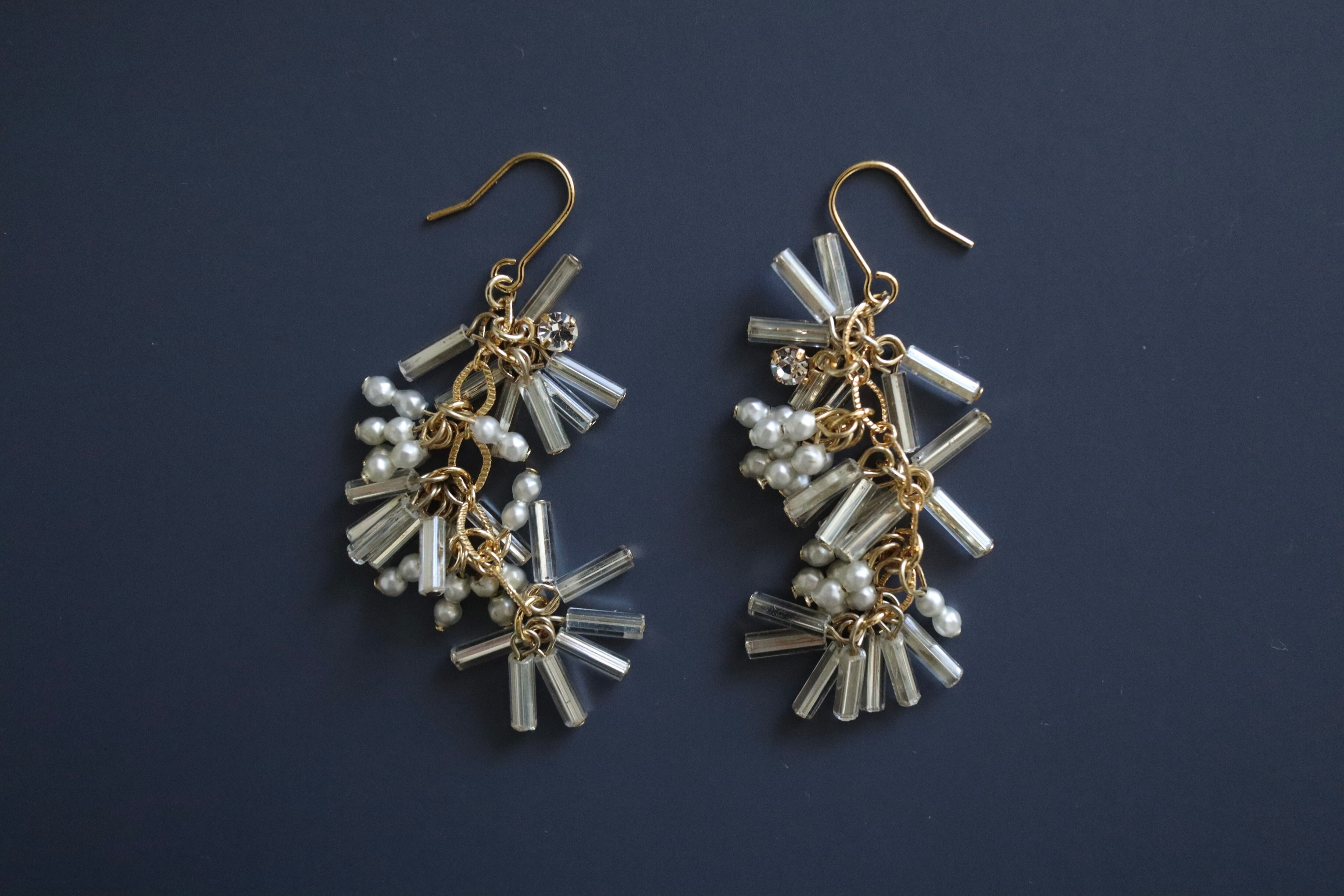ピアス イヤリング 天然石 フリンジ ロングピアス 華奢 繊細 ゴールド ジュエリー アクセサリー 大人の女性 上品 シンプル 特別 贈り物 自分へのご褒美 アンティークビーズ 揺れるピアス