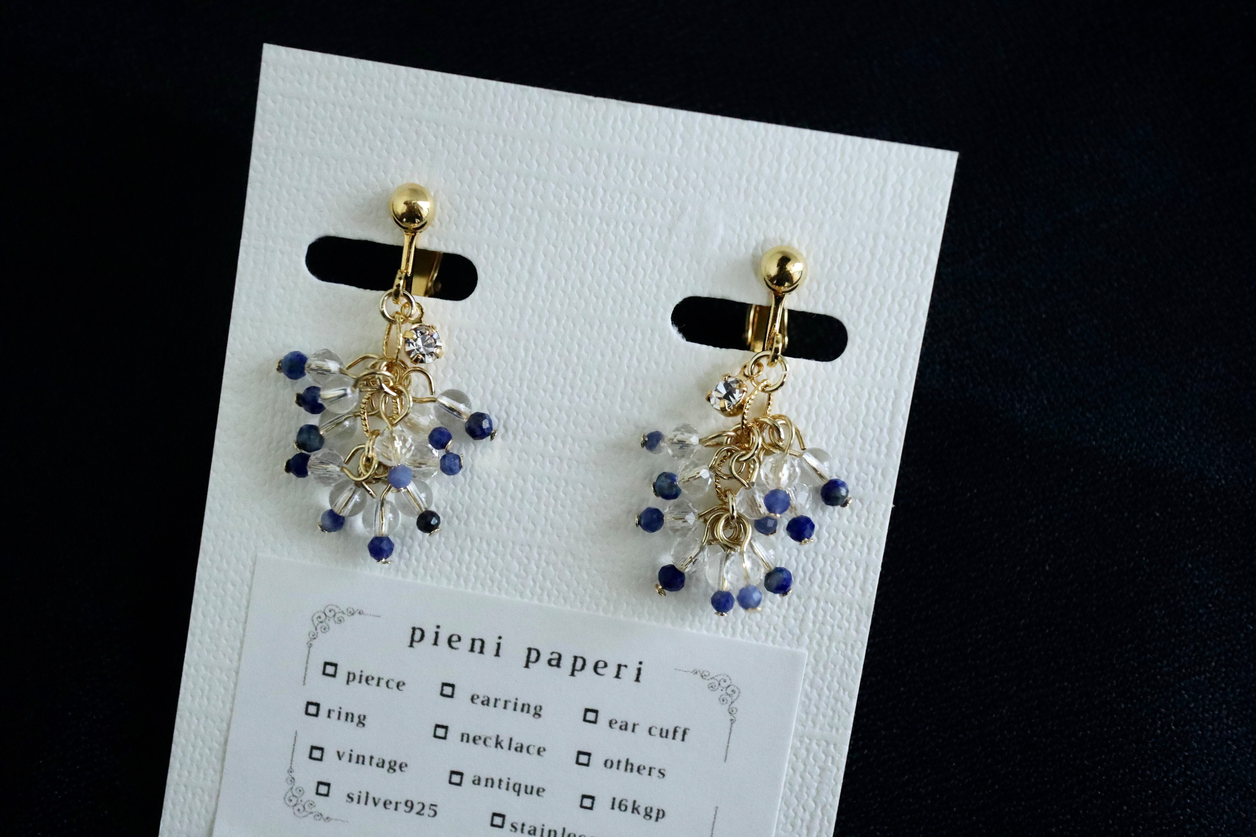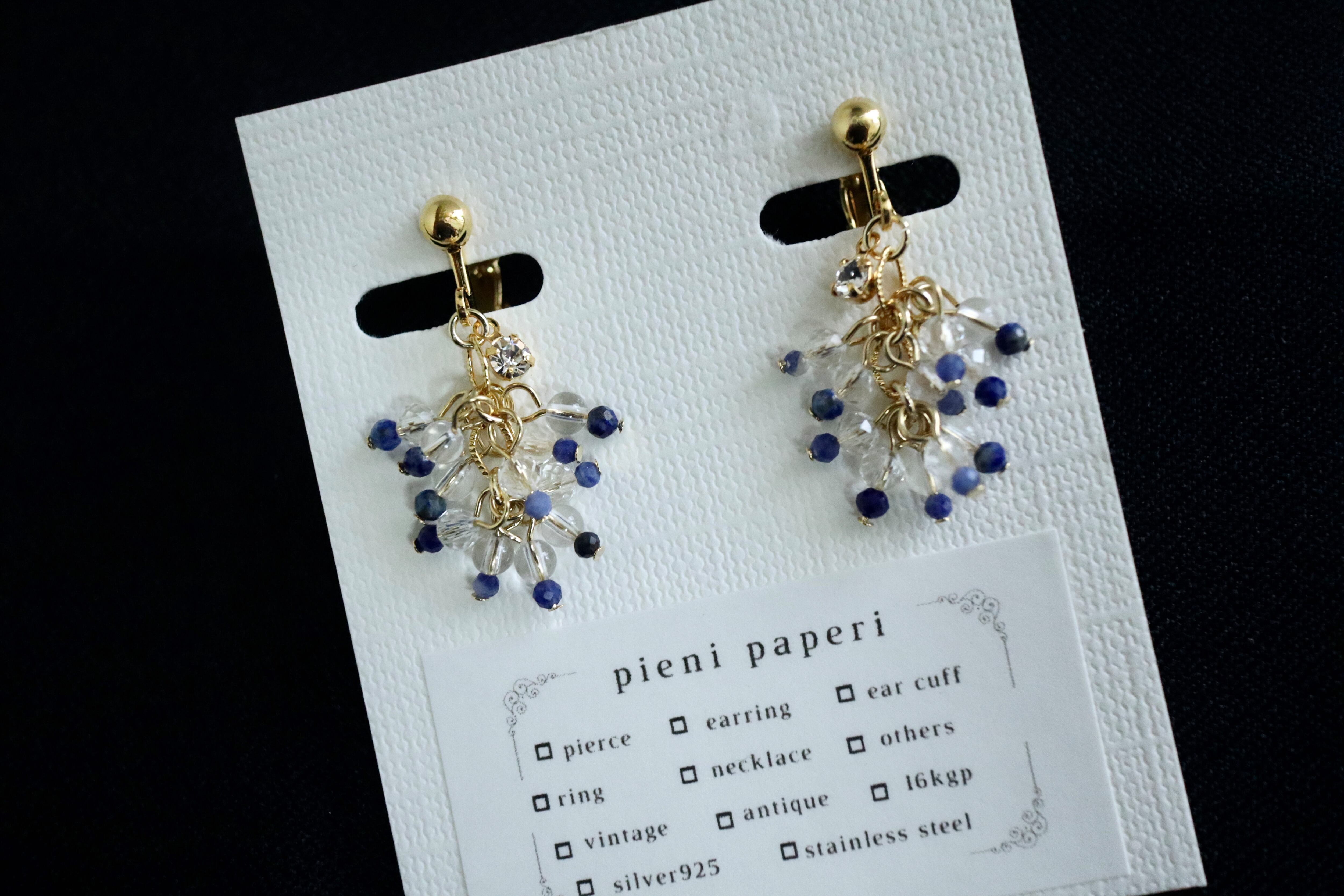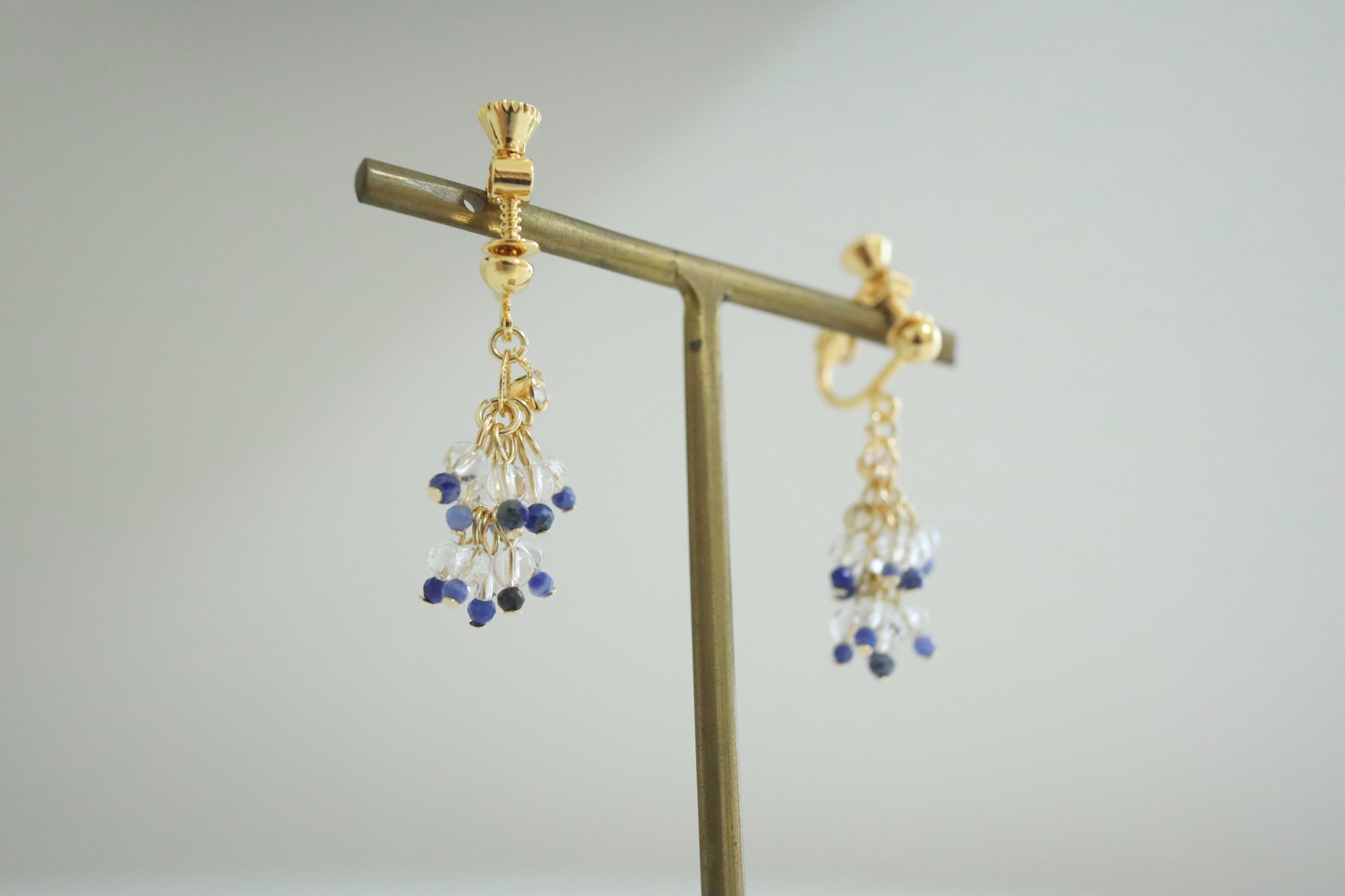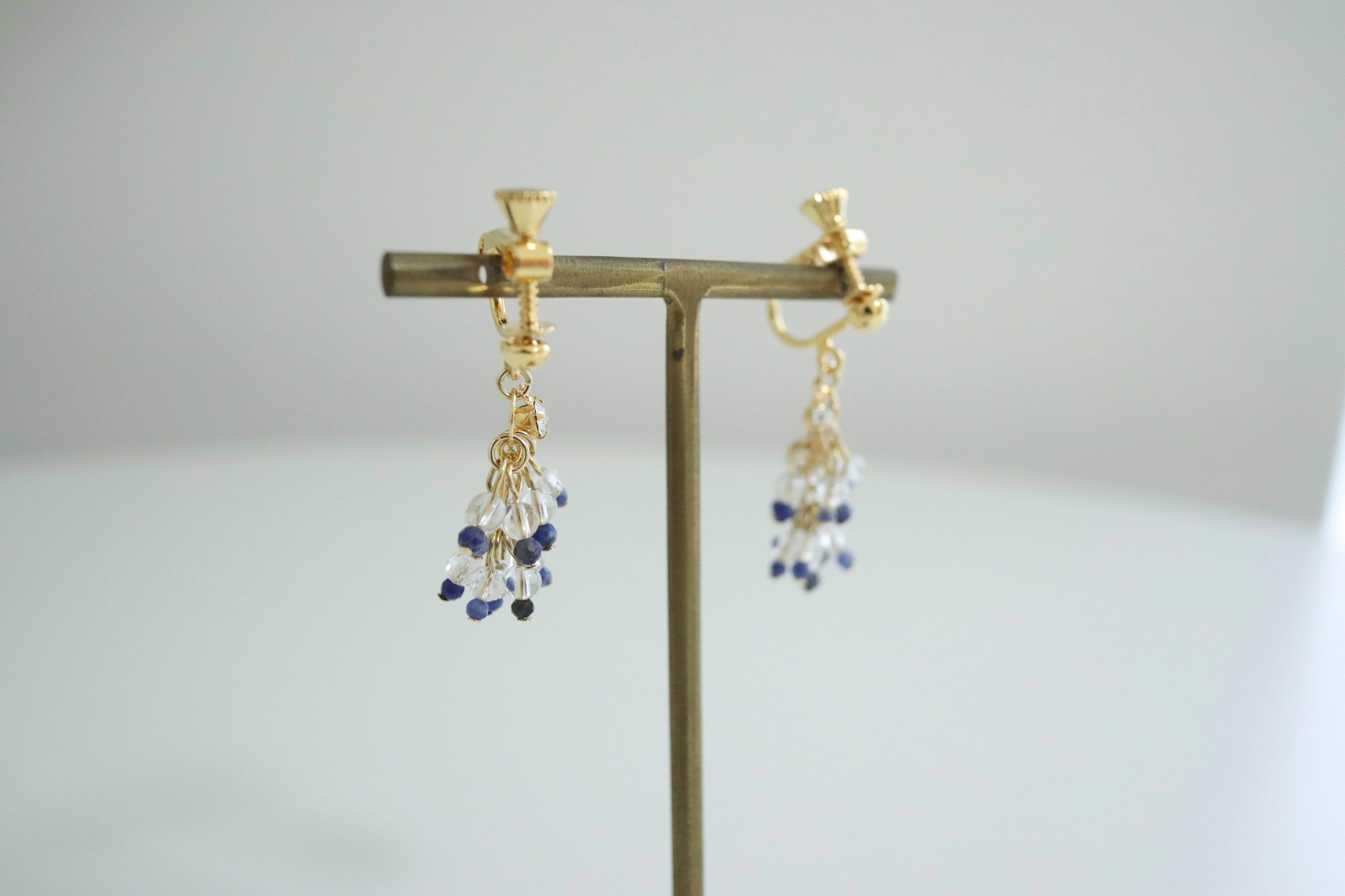 ピアス イヤリング 天然石 水晶 ソーダライト 揺れる 華奢 繊細 ゴールド ジュエリー アクセサリー 大人の女性 上品 シンプル 特別 贈り物 自分へのご褒美 揺れるピアス