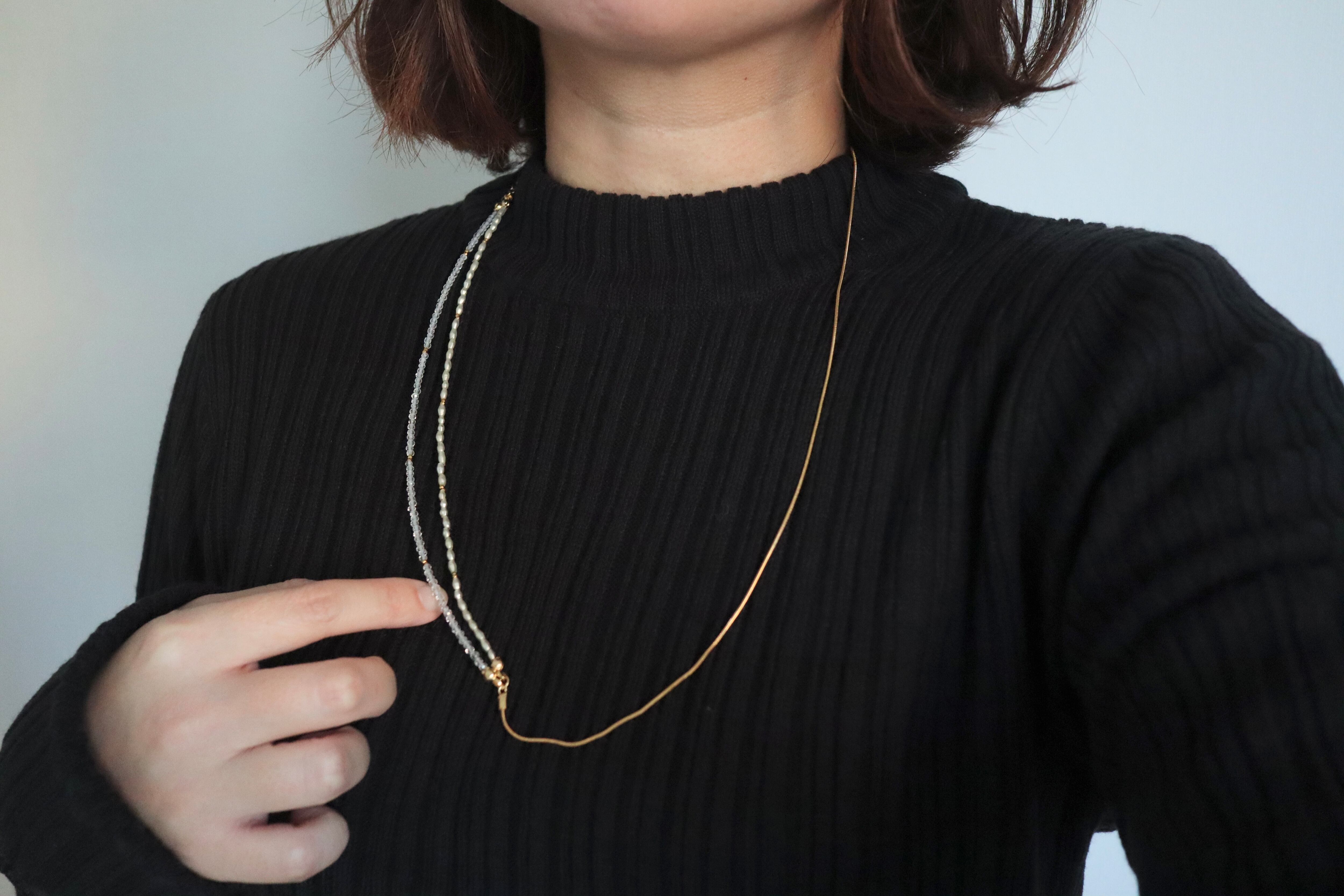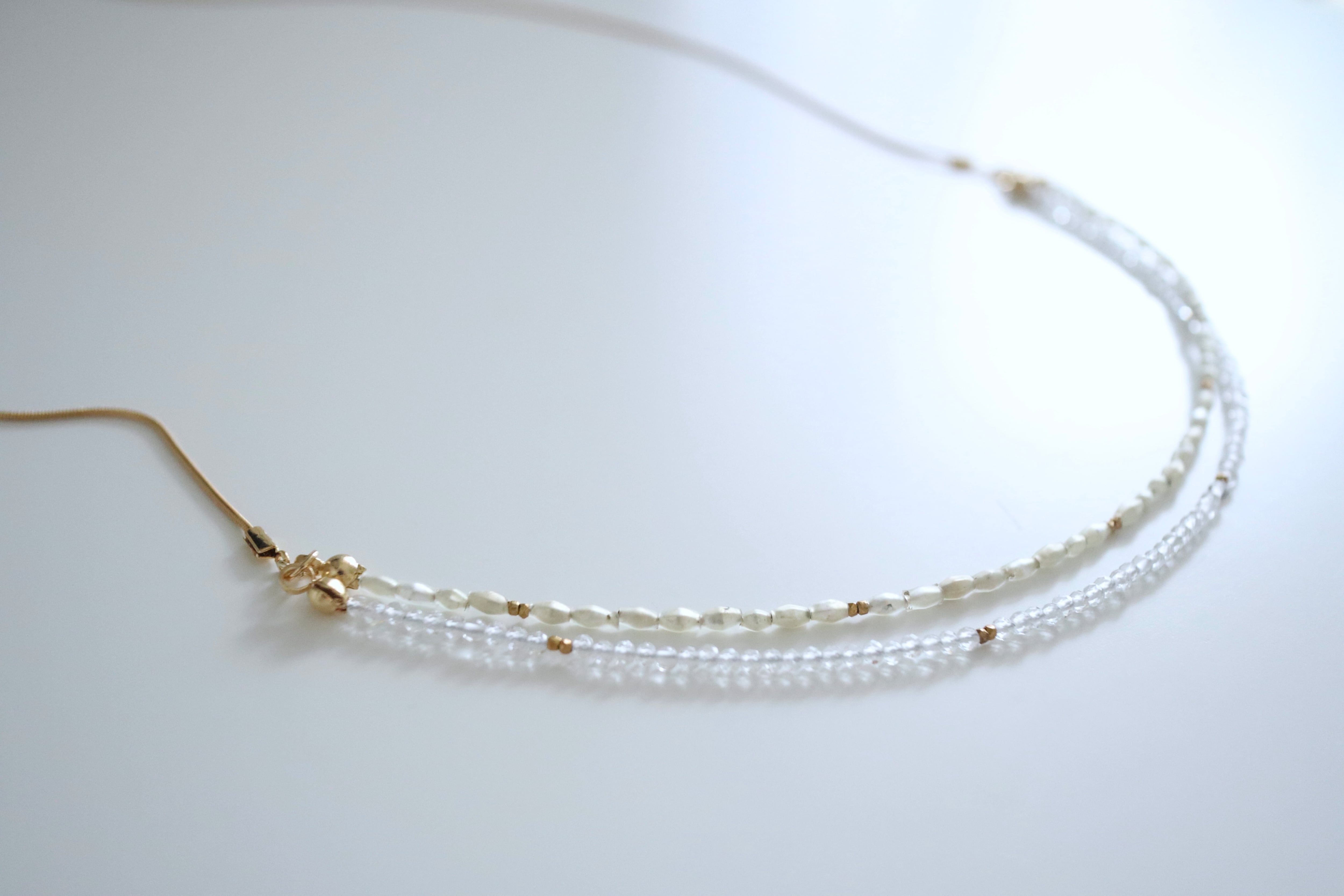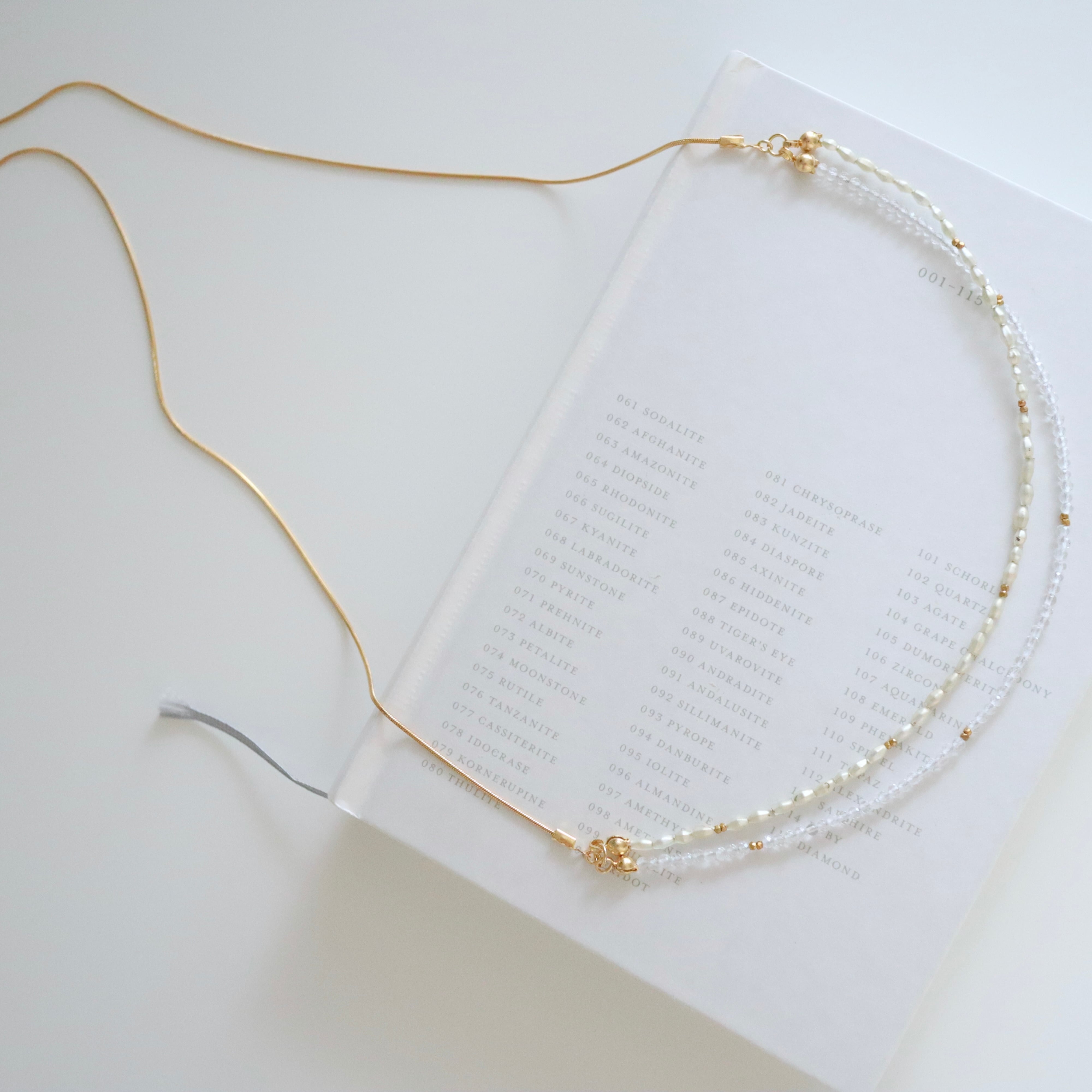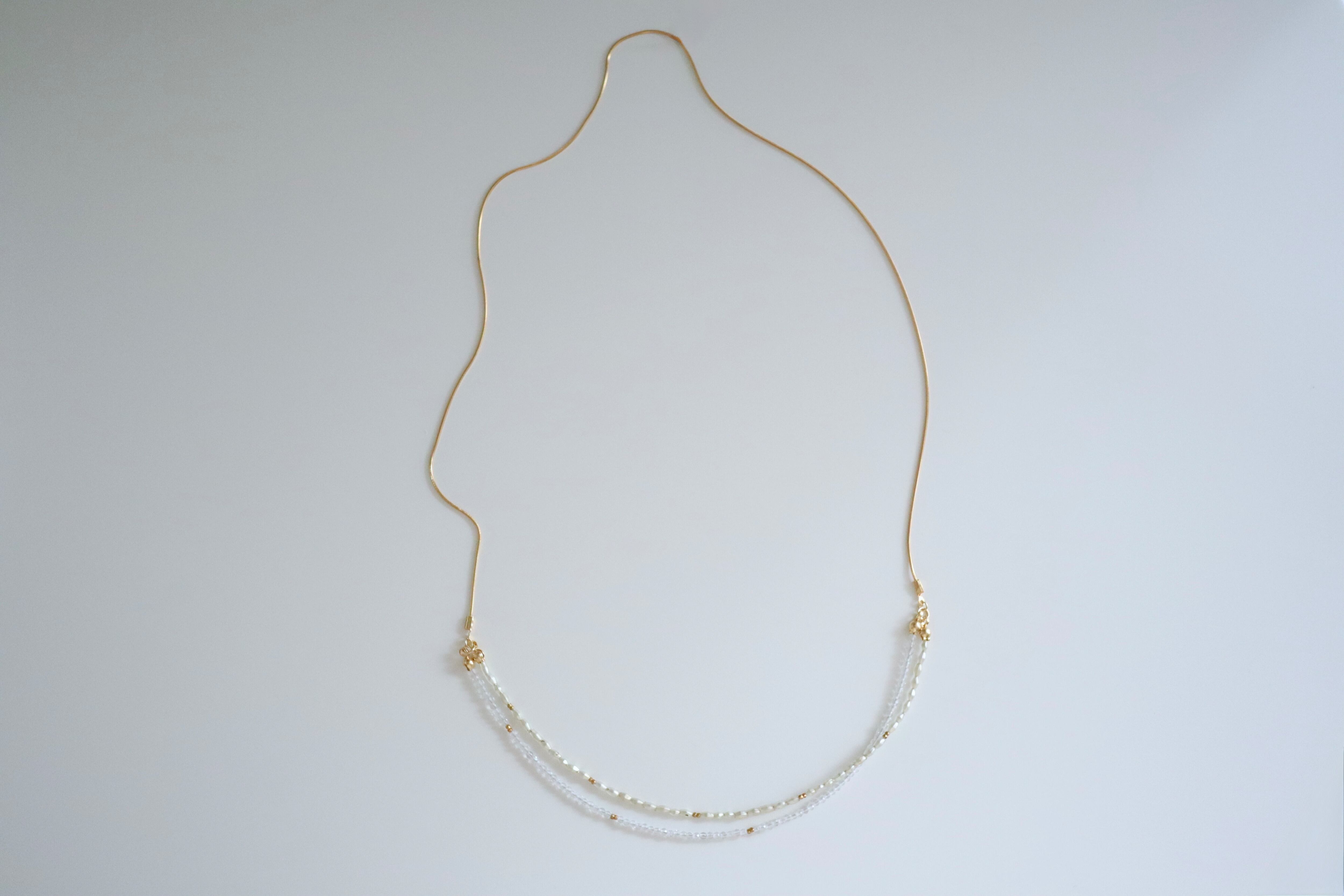 二連ネックレス、アンティーク、ビンテージ、大人可愛い、オケージョン、華やか、セレモニー、式、ロングネックレス、ミドルネックレス、白、透け感、クリア、上品、プレゼント、ギフトラッピング