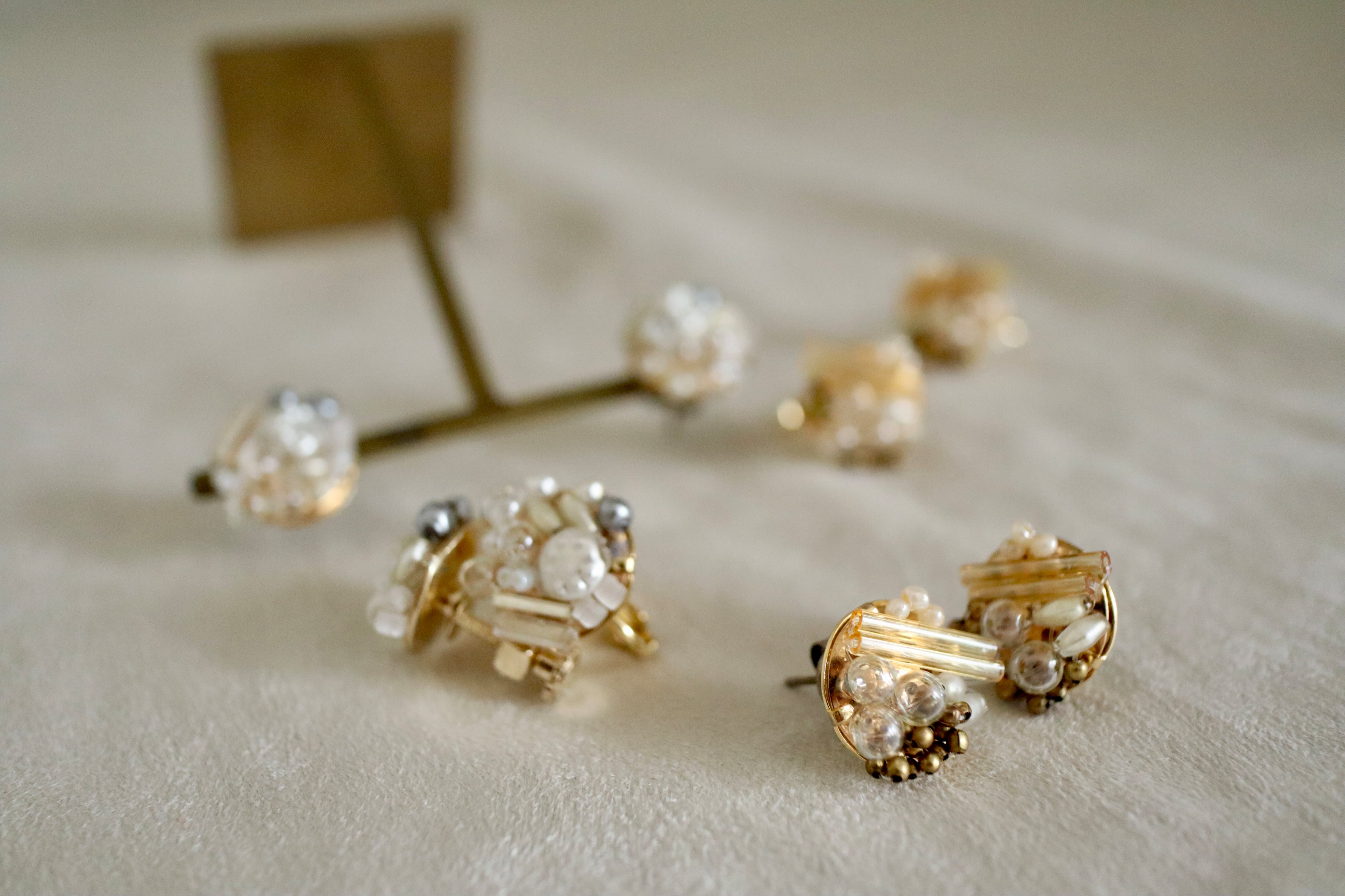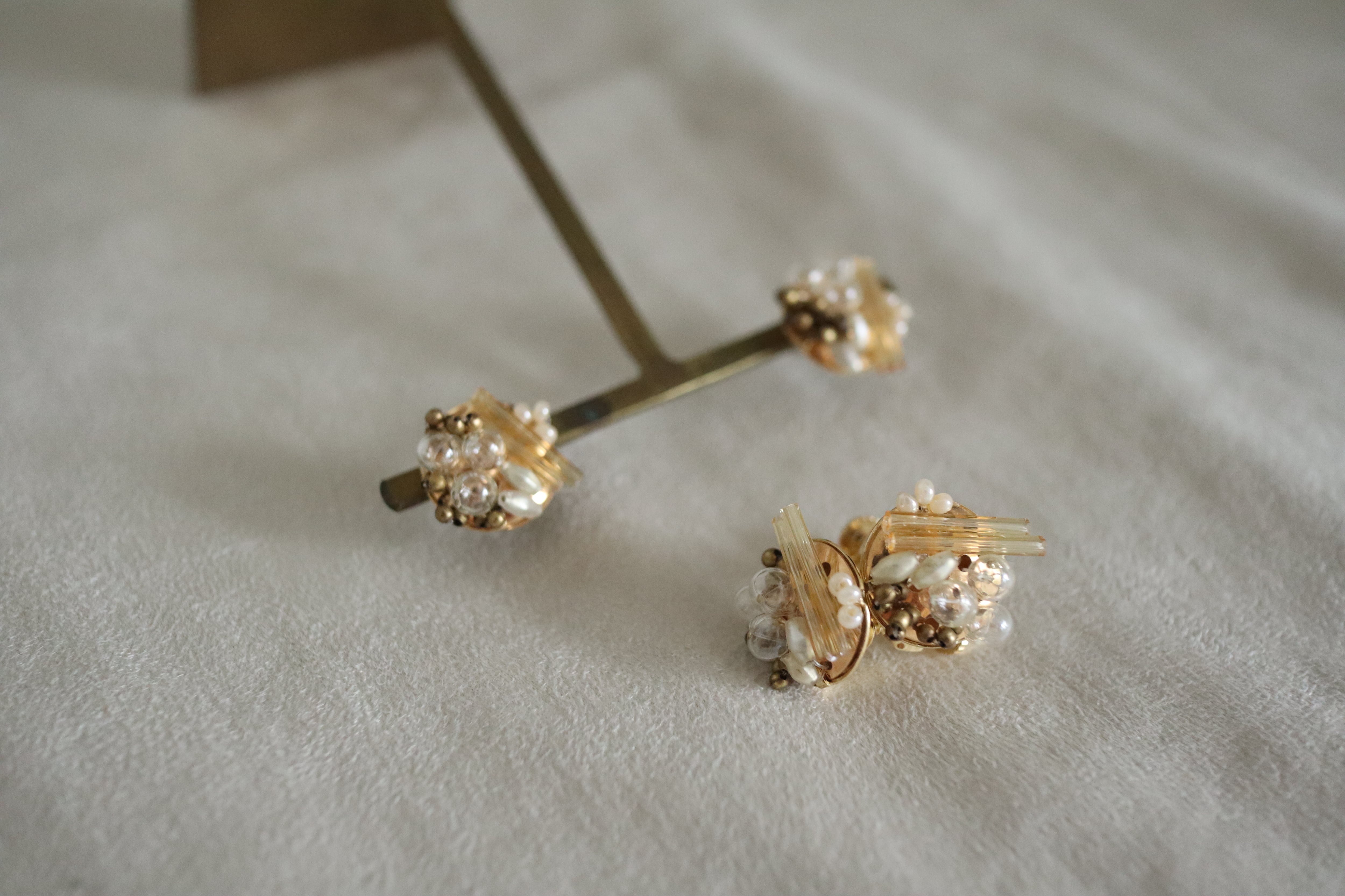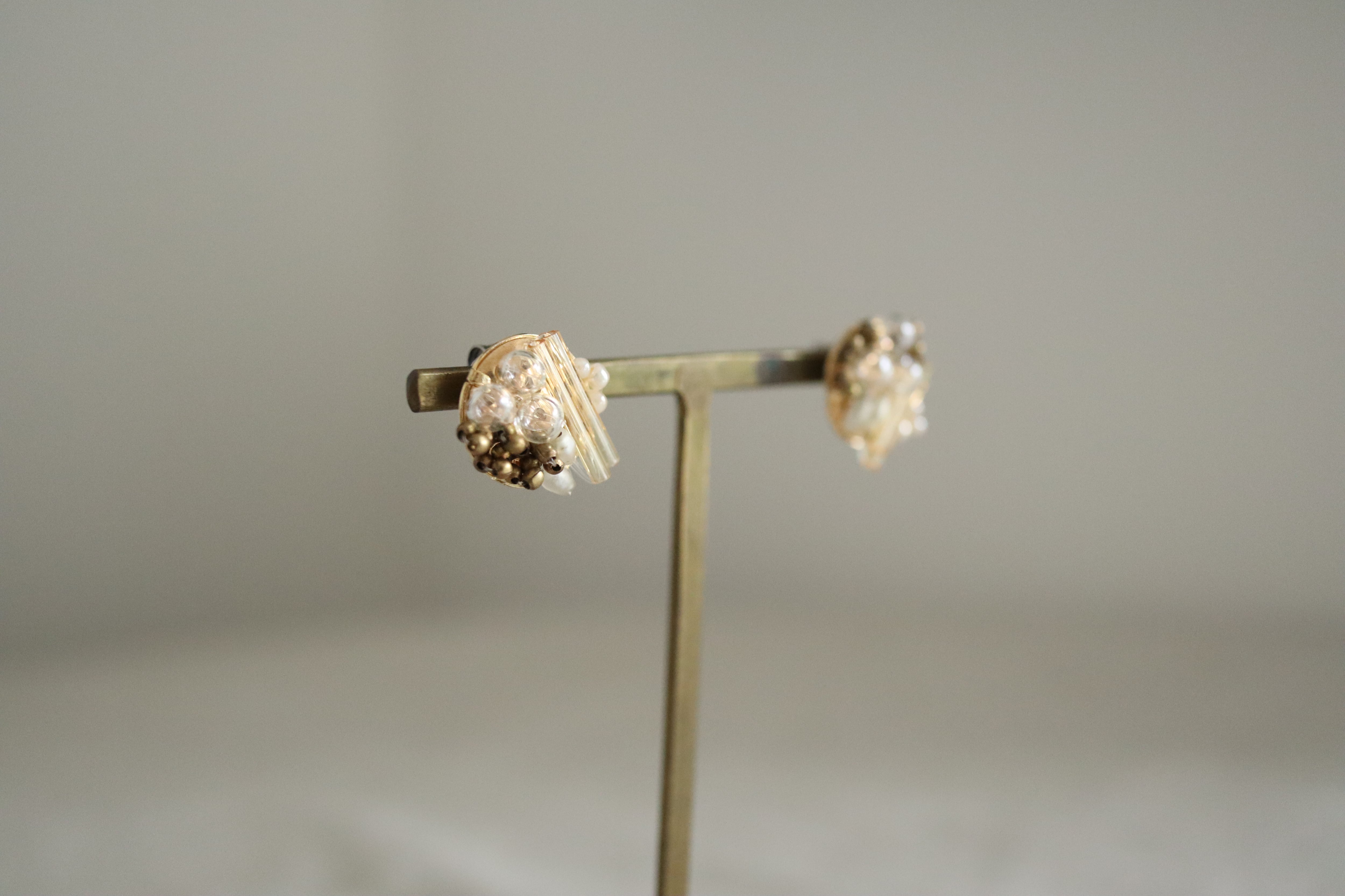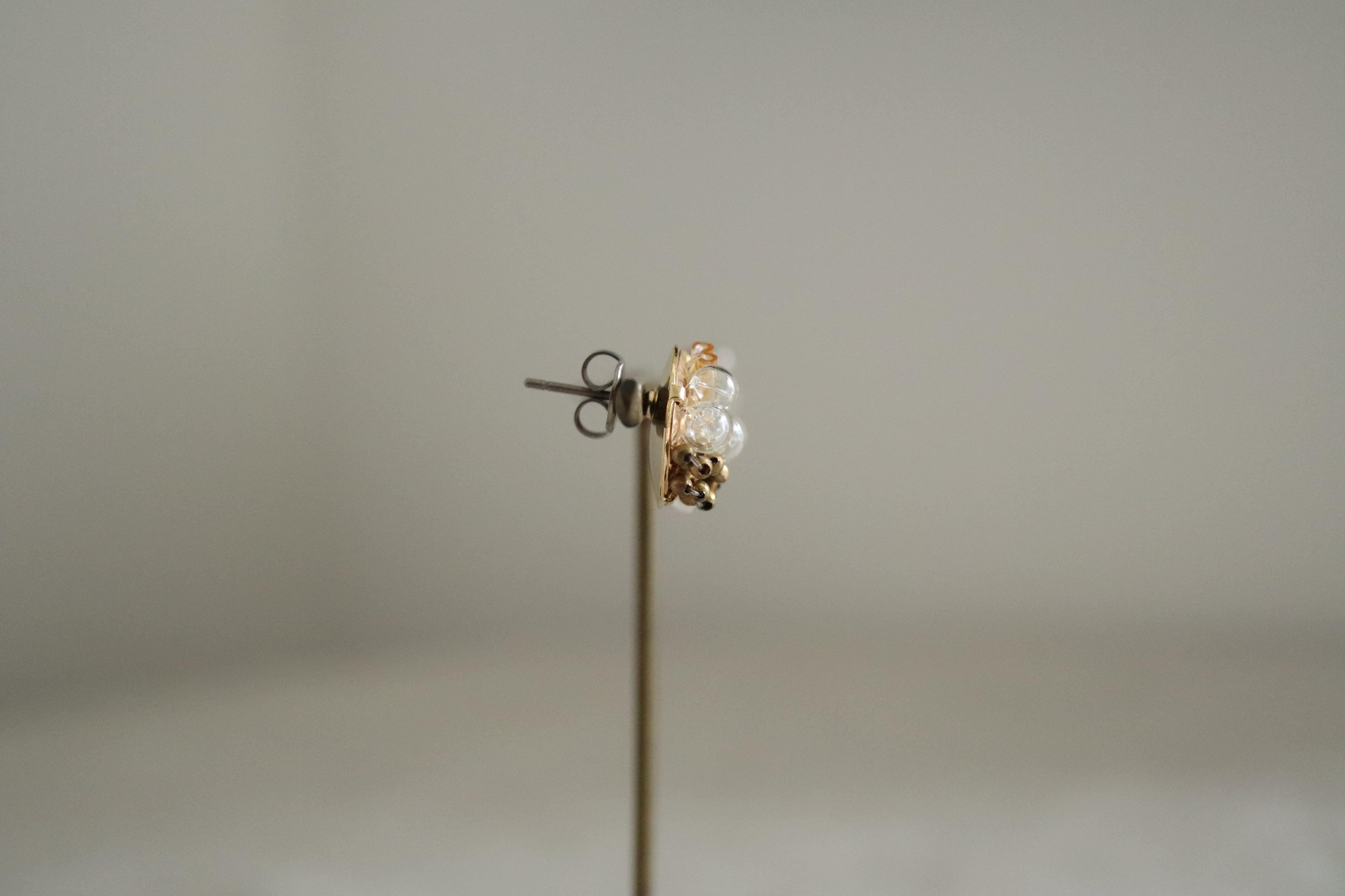 ゴールド、式、オケージョン、可愛い、大人、洗練、抜け感、プレゼント、ギフトラッピング、アンティーク、ヴィンテージ、ブラウン、茶、ベージュ、雪、ゴールド、イエベ、ナチュラル、スタッズ、ポイント、揺れない、金具変更可、イヤリング