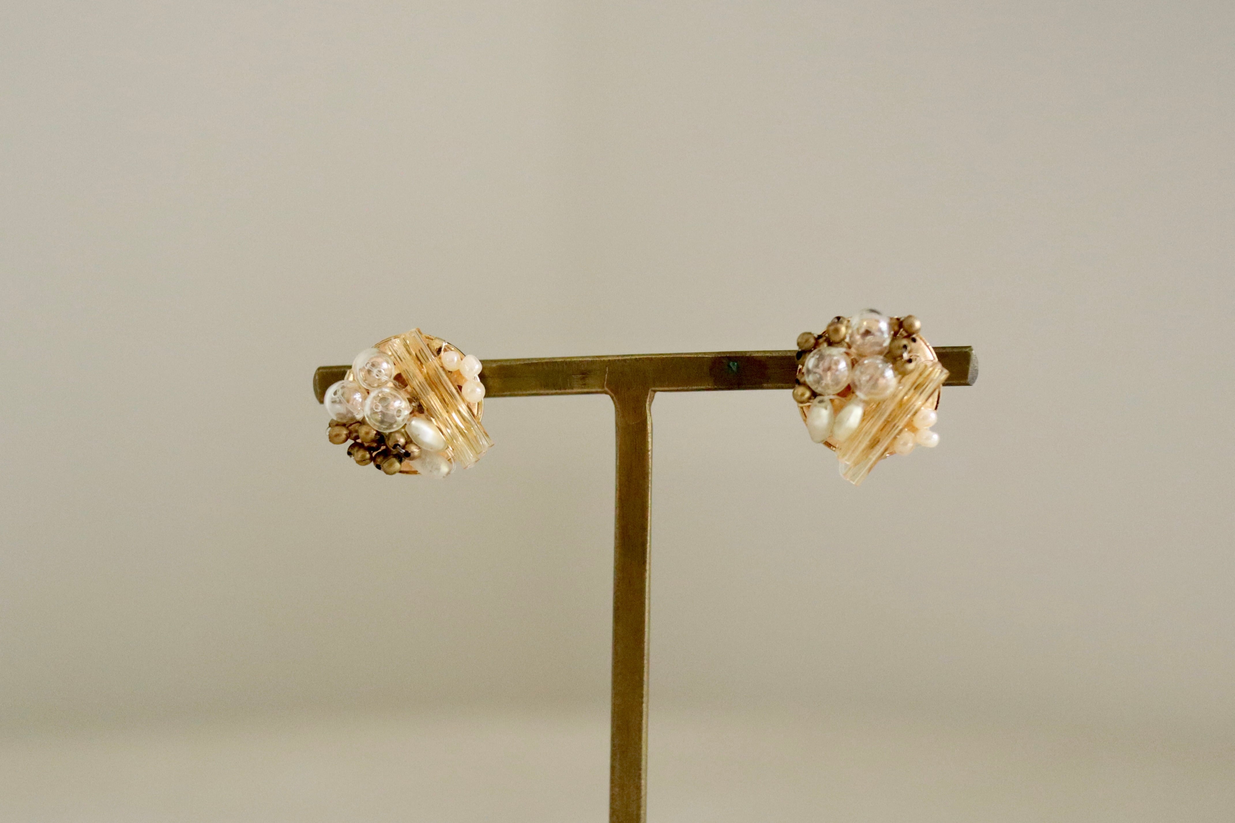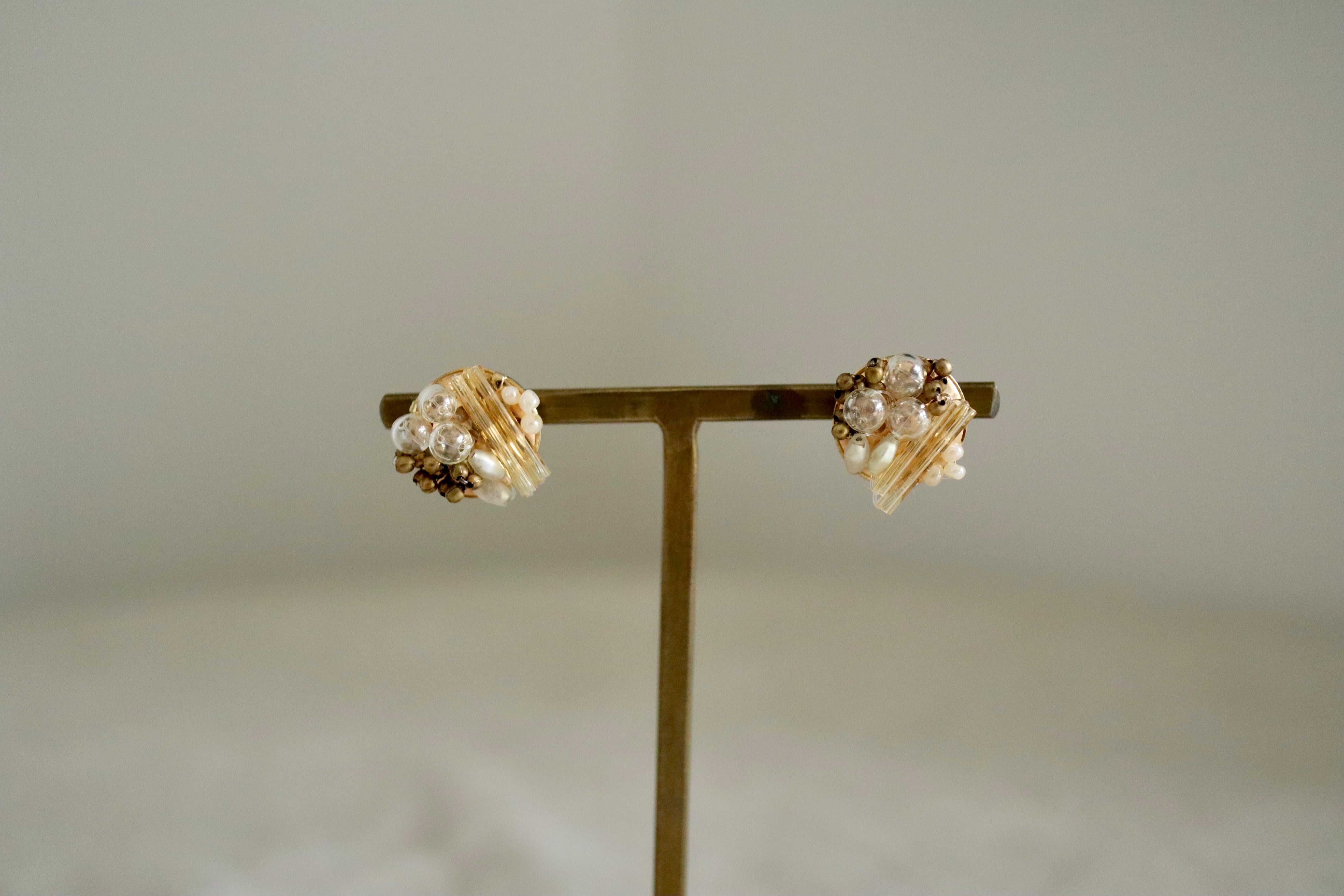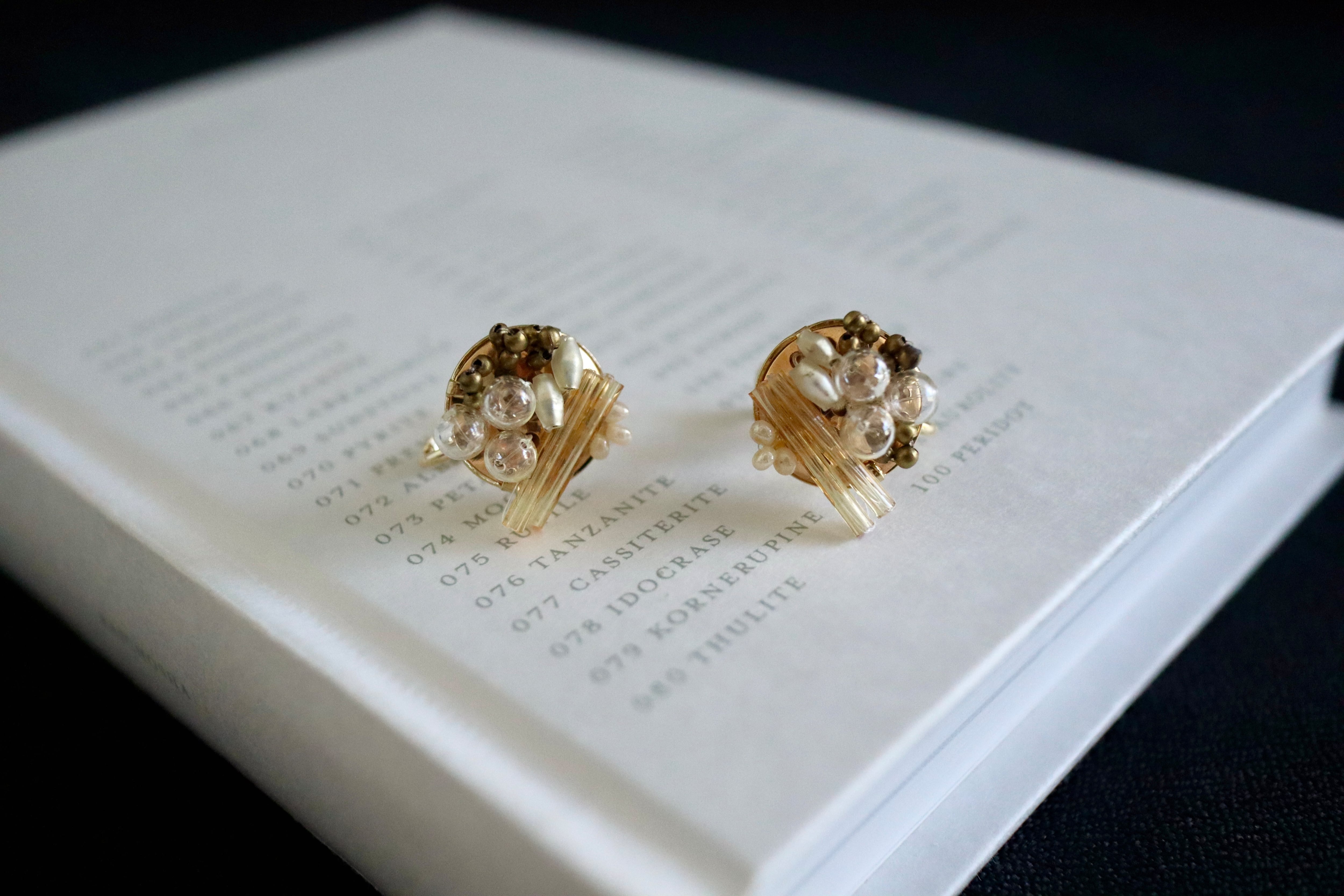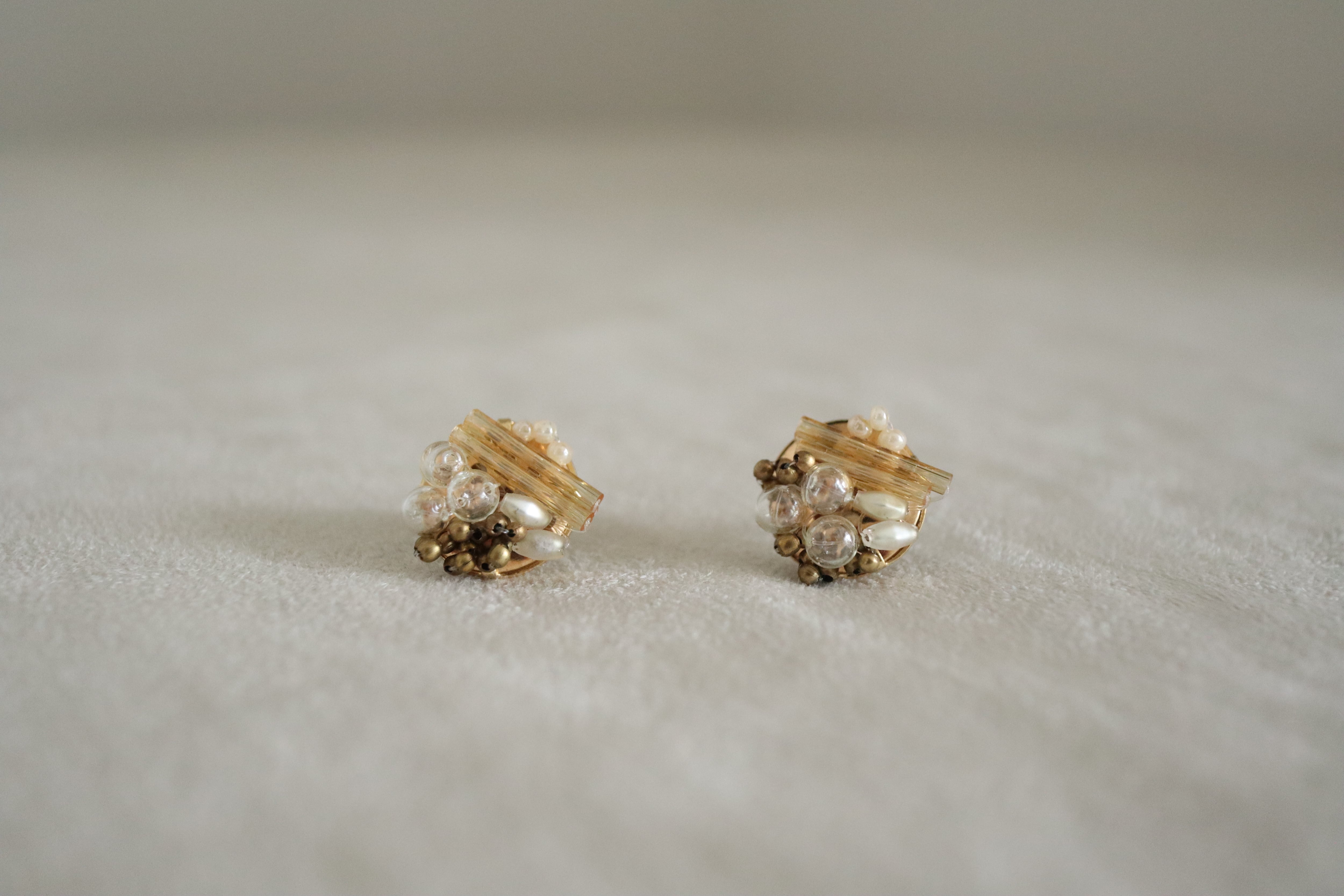 ゴールド、式、オケージョン、可愛い、大人、洗練、抜け感、プレゼント、ギフトラッピング、アンティーク、ヴィンテージ、ブラウン、茶、ベージュ、雪、ゴールド、イエベ、ナチュラル、スタッズ、ポイント、揺れない、金具変更可、イヤリング