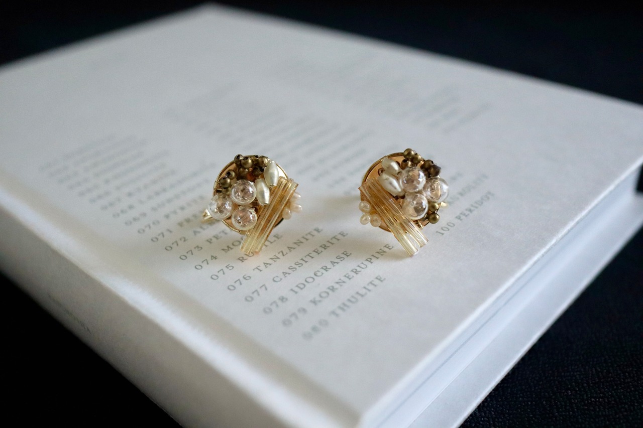 イエローゴールドやクリアなスフレビーズを用いて