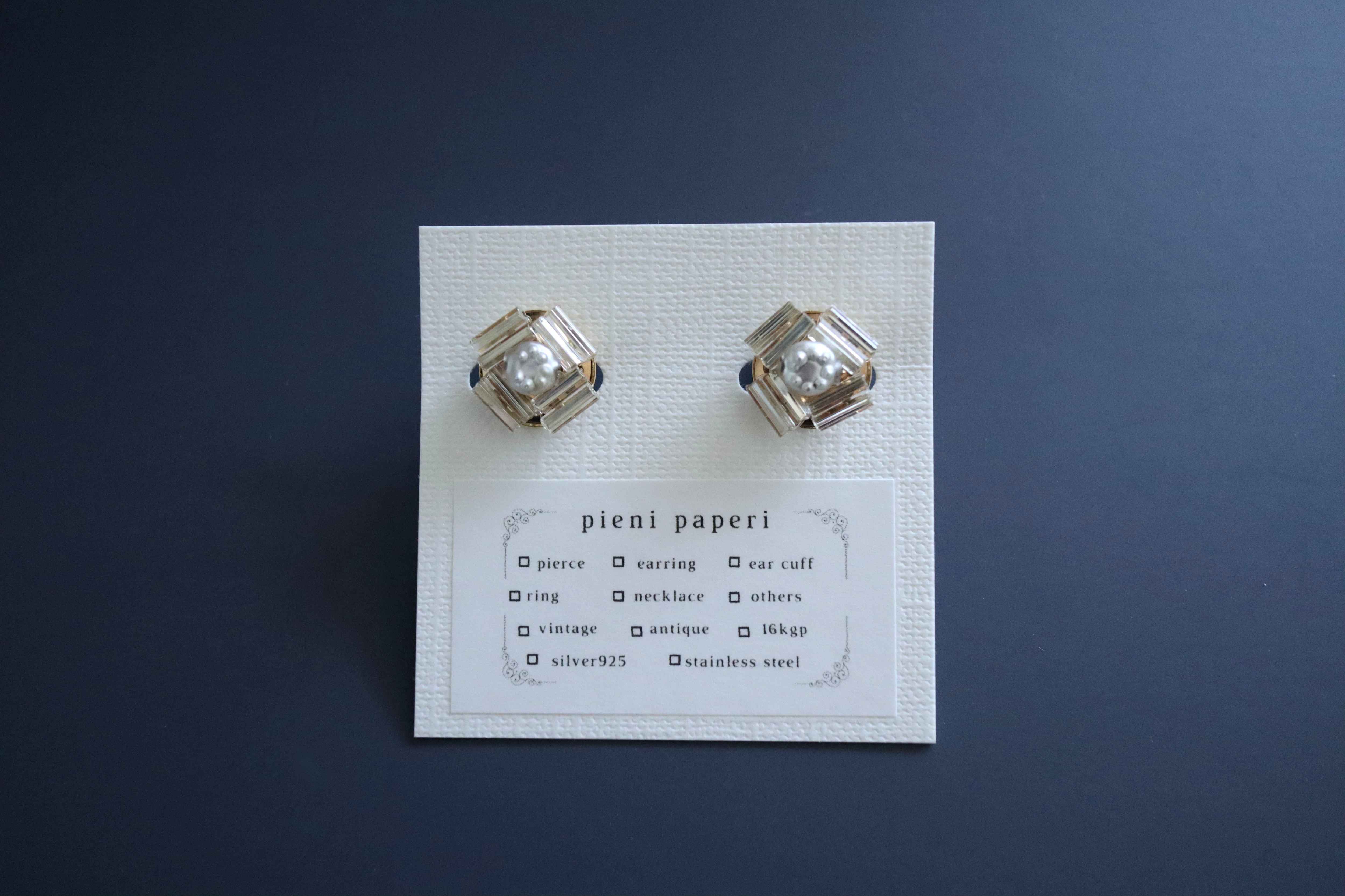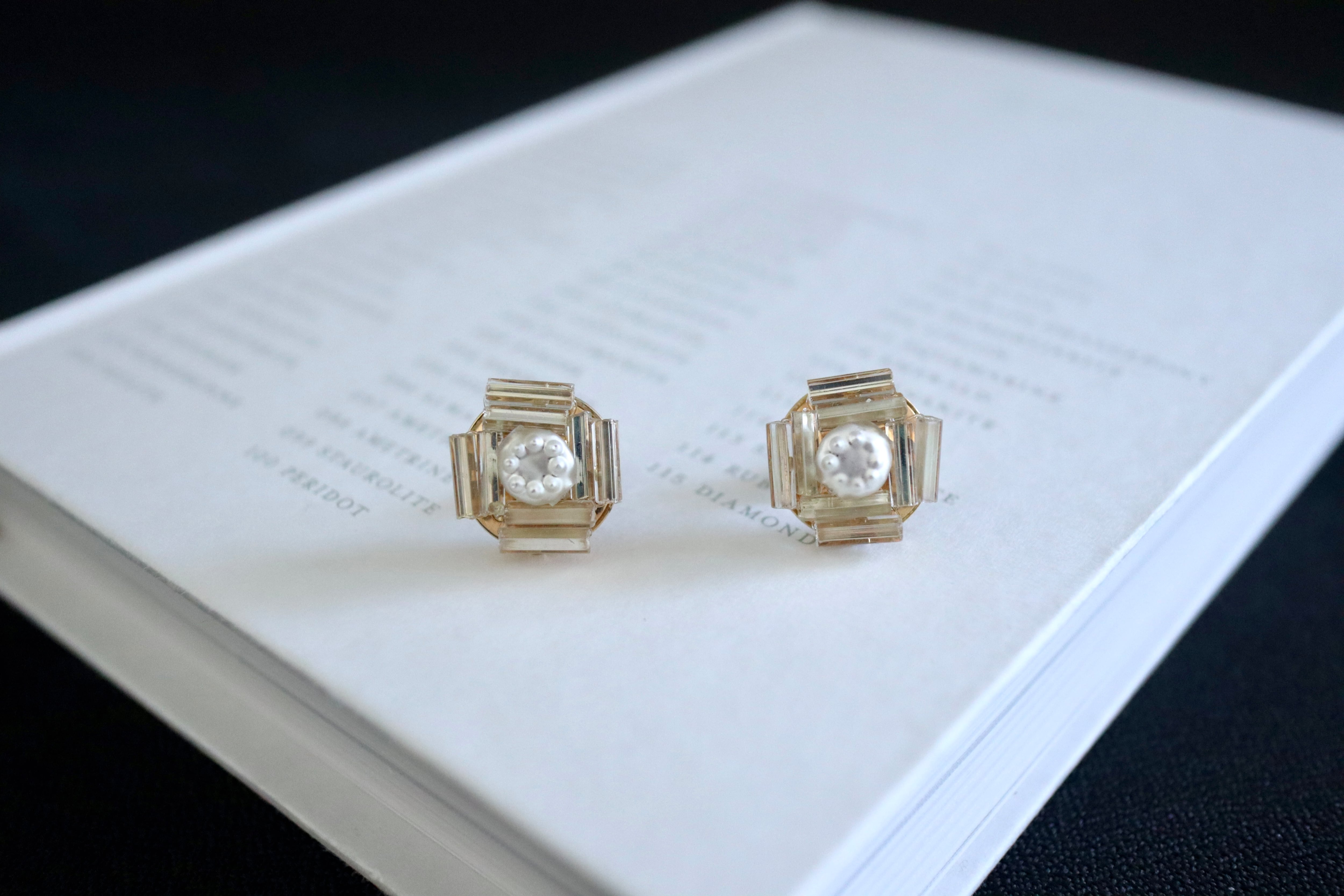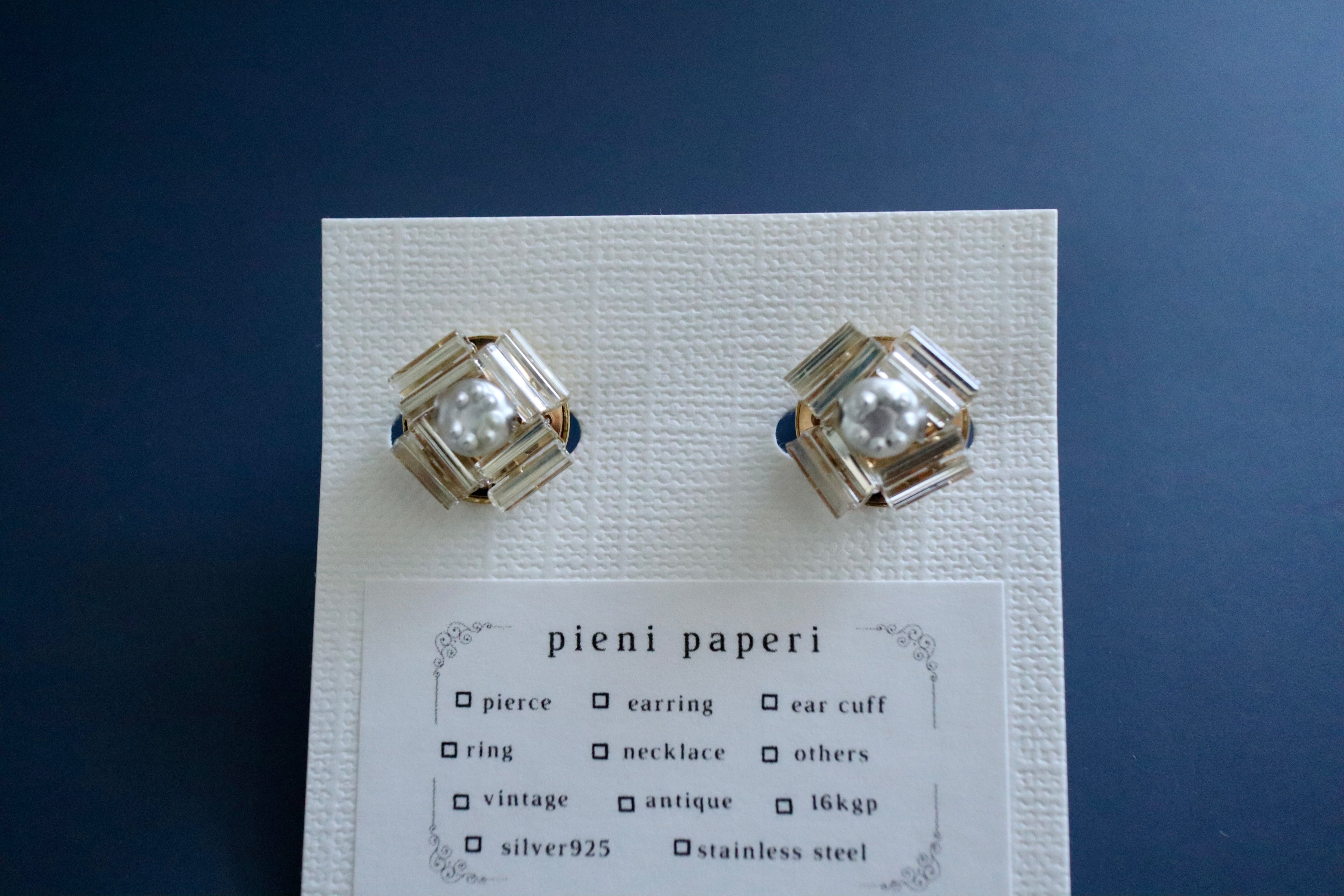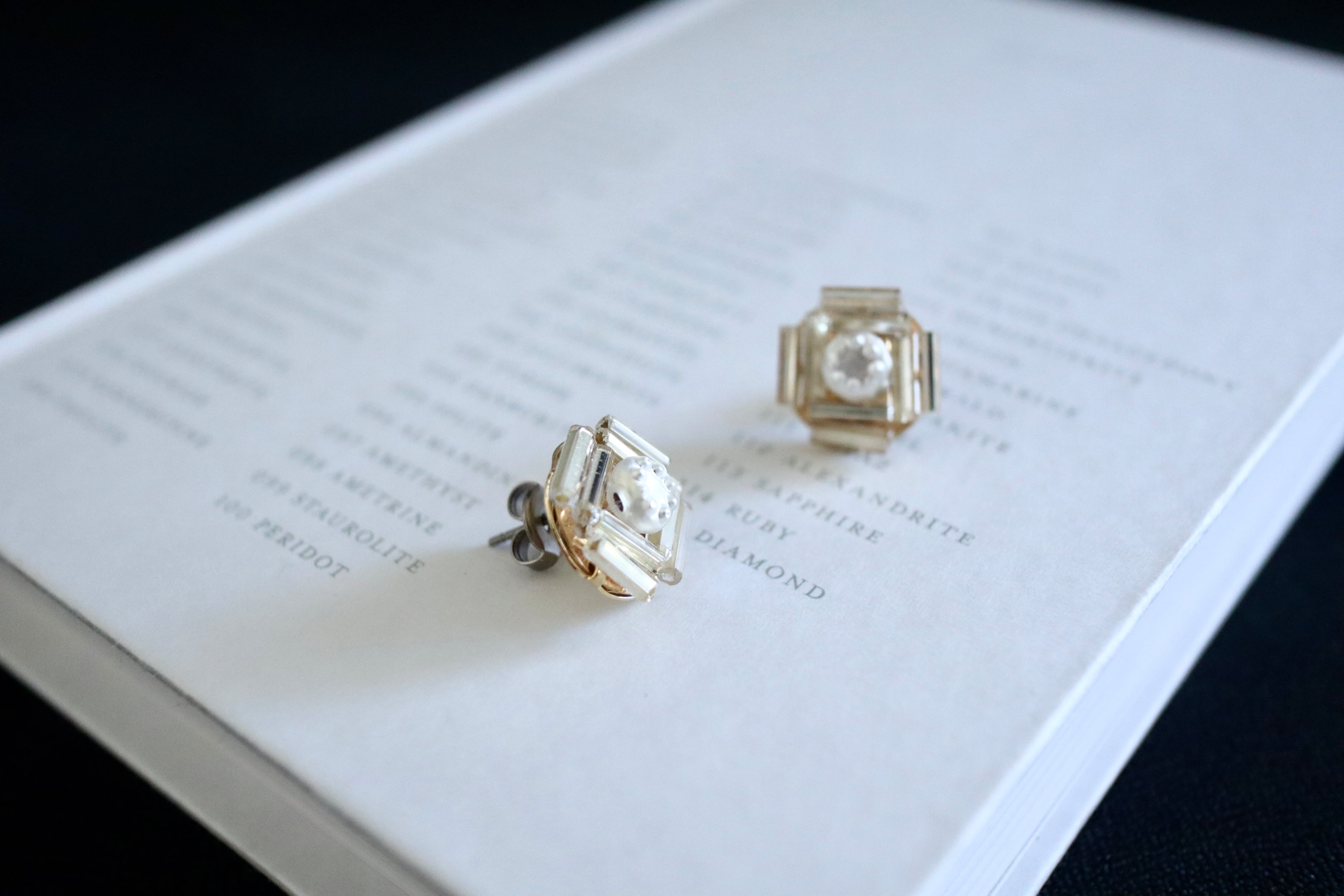 ゴールド、式、オケージョン、可愛い、大人、洗練、抜け感、プレゼント、ギフトラッピング、アンティーク、ヴィンテージ、シルバー、ホワイト、白、雪、スタッズ、ポイント、揺れない、金具変更可、イヤリング