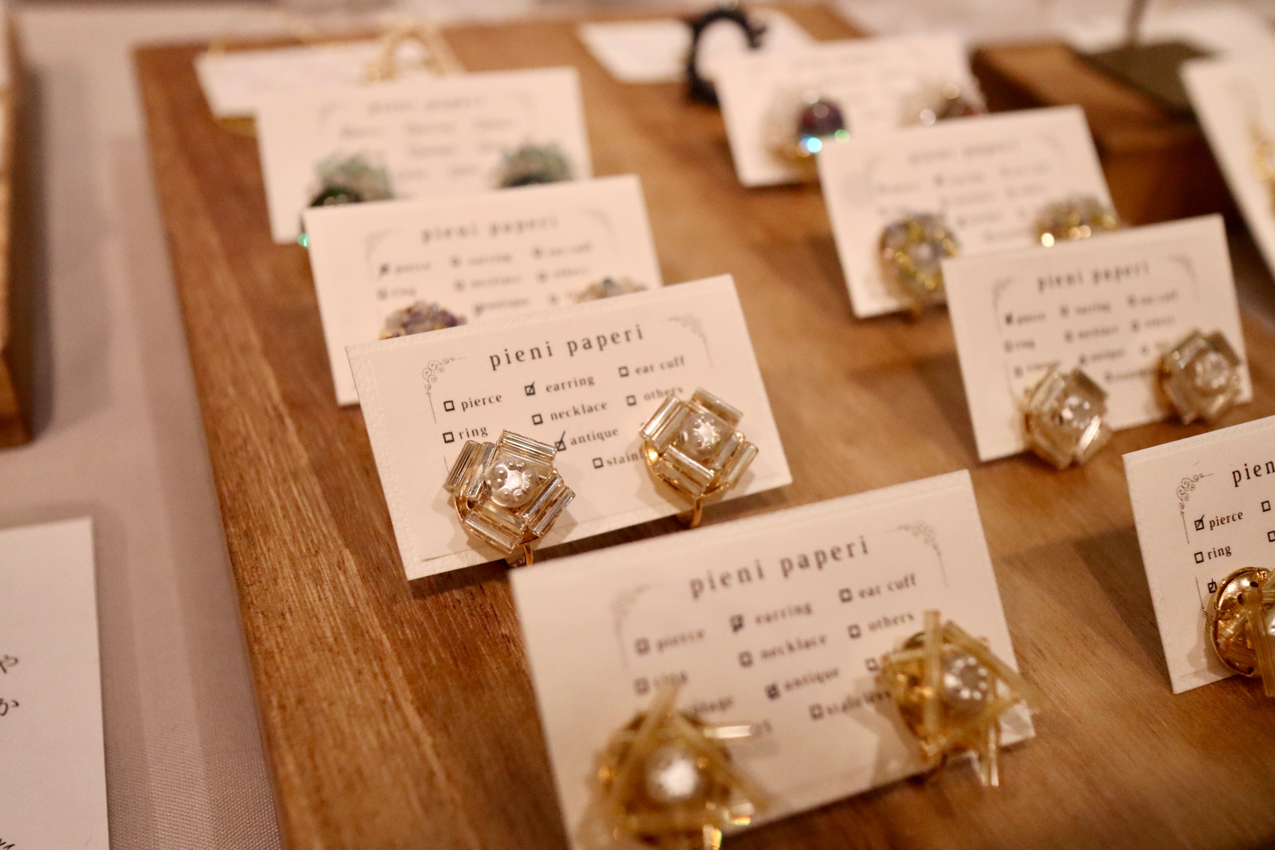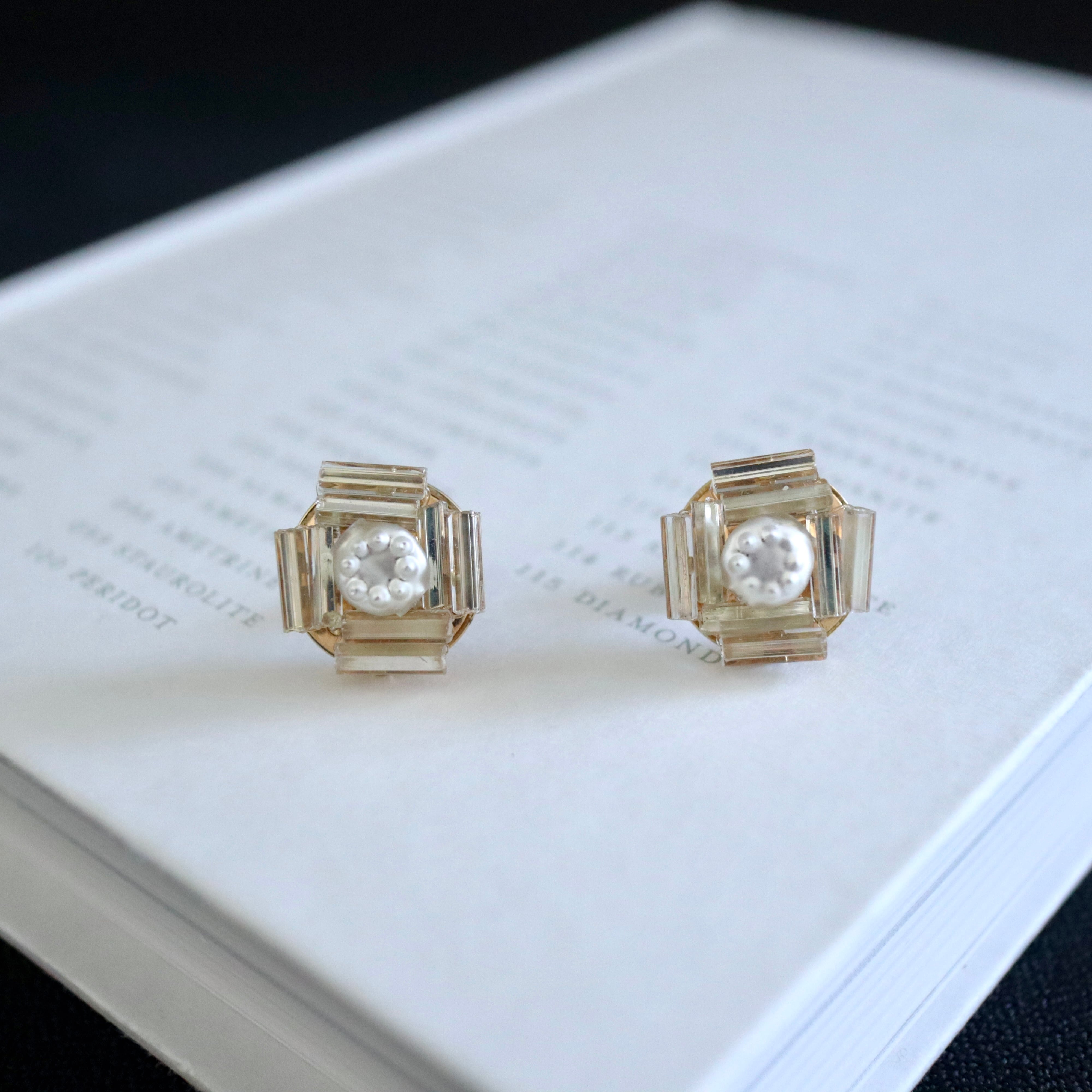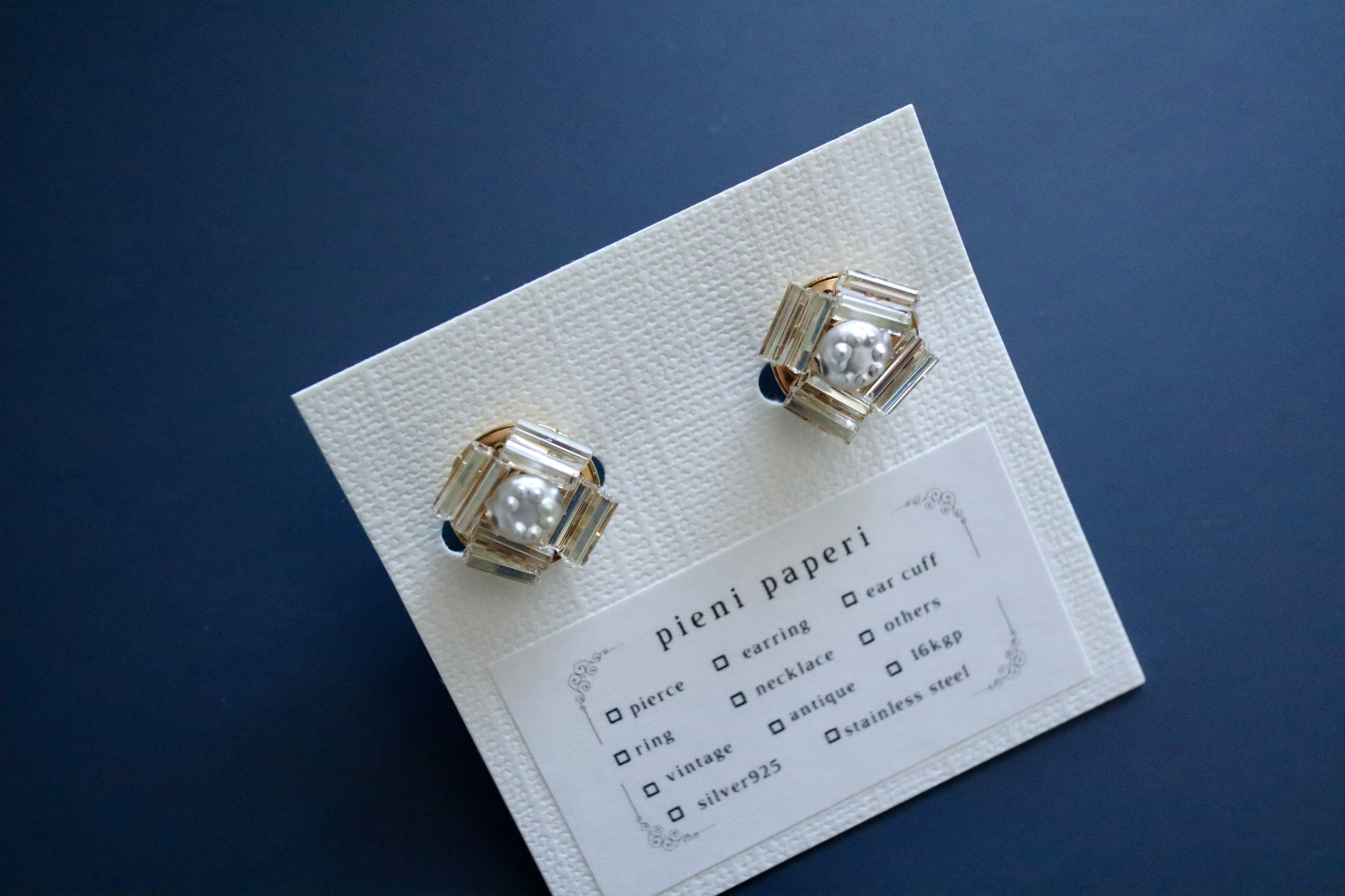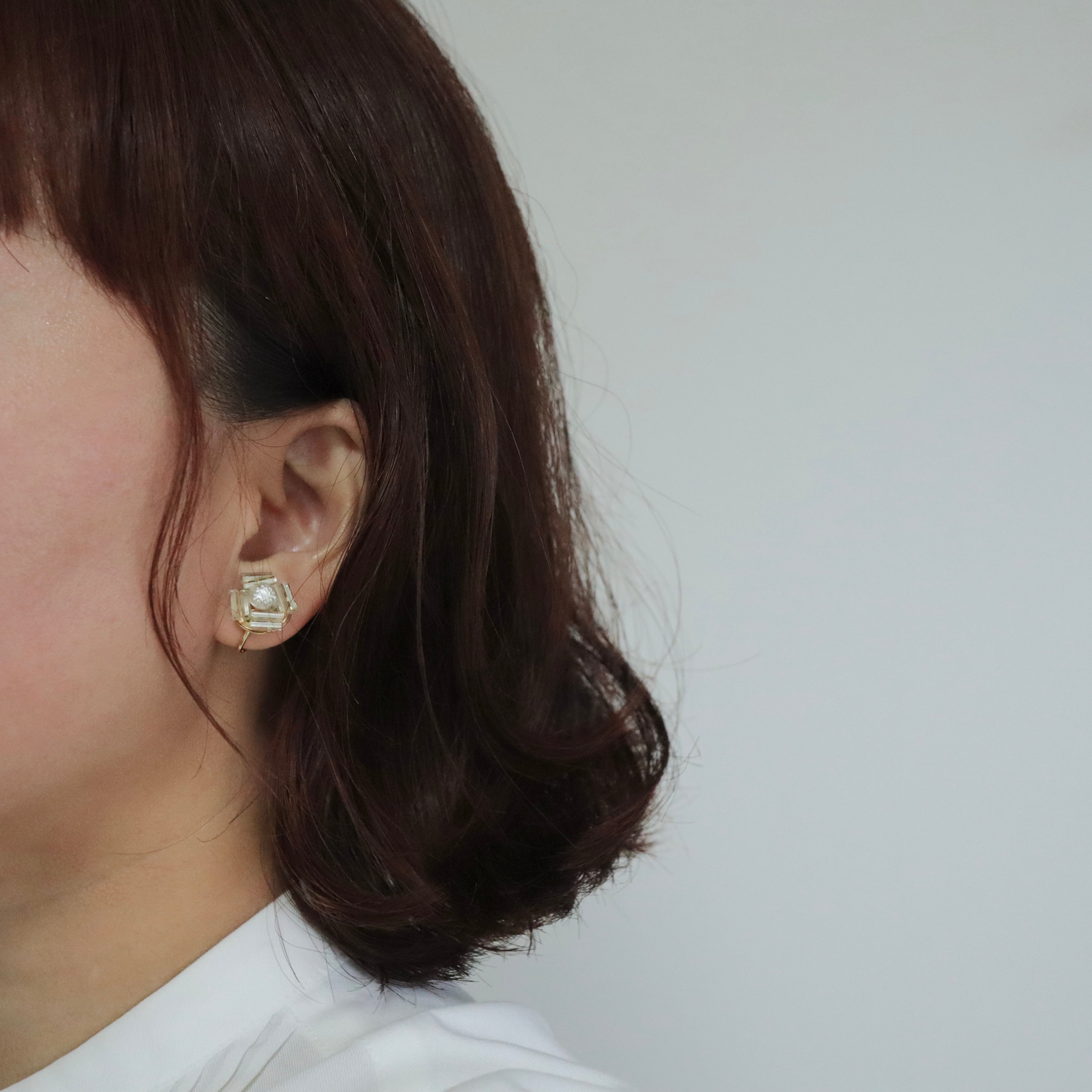 ゴールド、式、オケージョン、可愛い、大人、洗練、抜け感、プレゼント、ギフトラッピング、アンティーク、ヴィンテージ、シルバー、ホワイト、白、雪、スタッズ、ポイント、揺れない、金具変更可、イヤリング