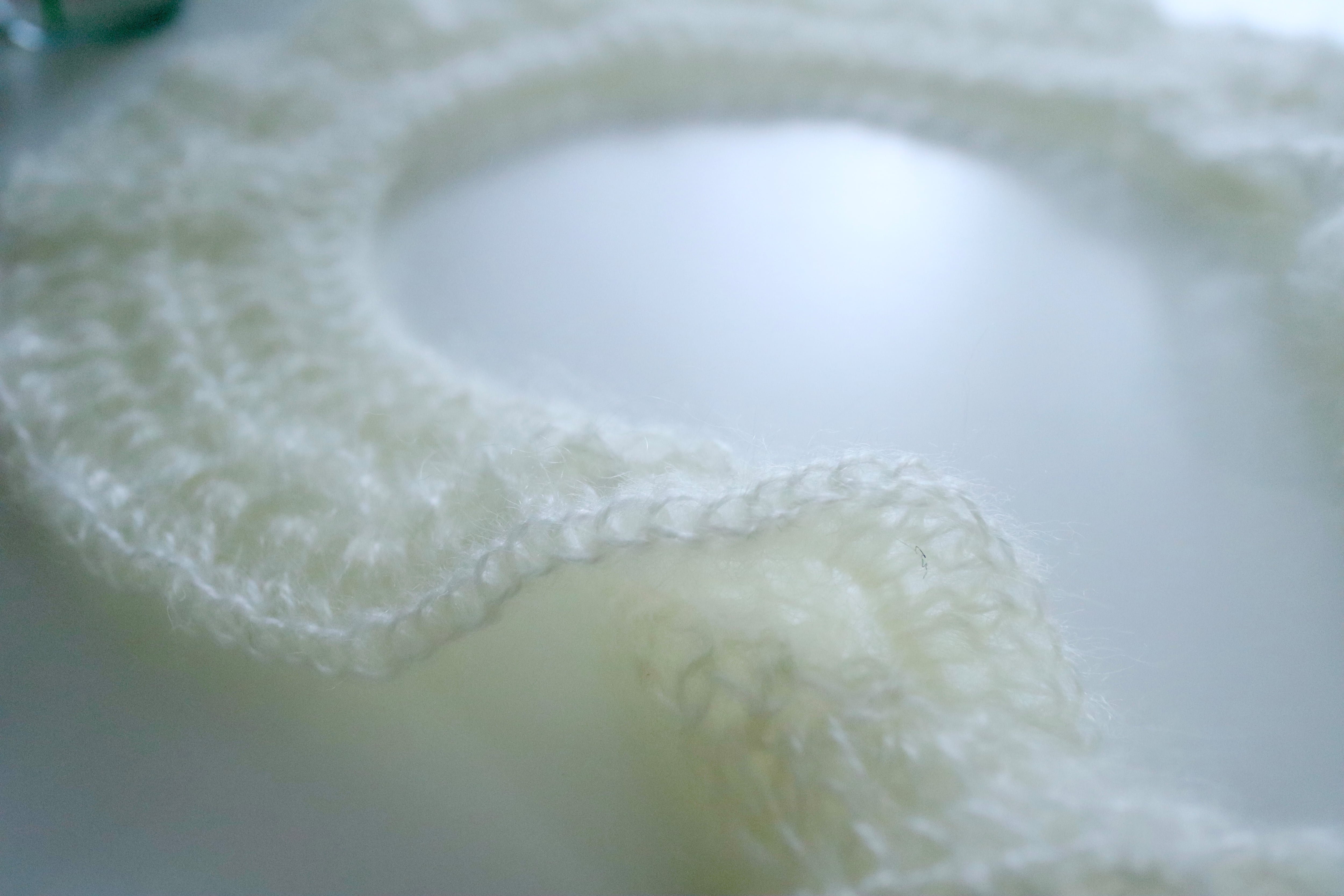 毛糸、ふわふわ、白、かわいい、やわらかい、ティペット、付け襟、つけ襟、付け衿、スカーフ、首、プレゼント、ギフトラッピング、大人用、ニット