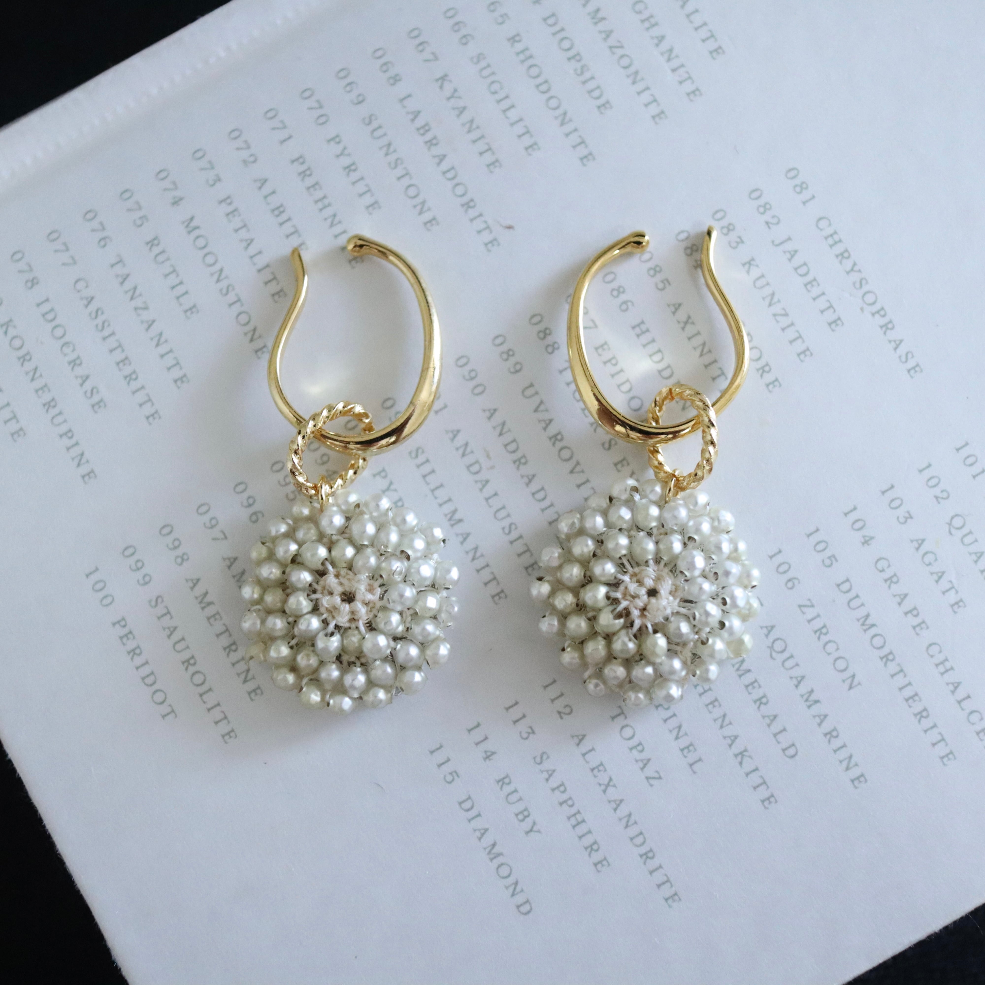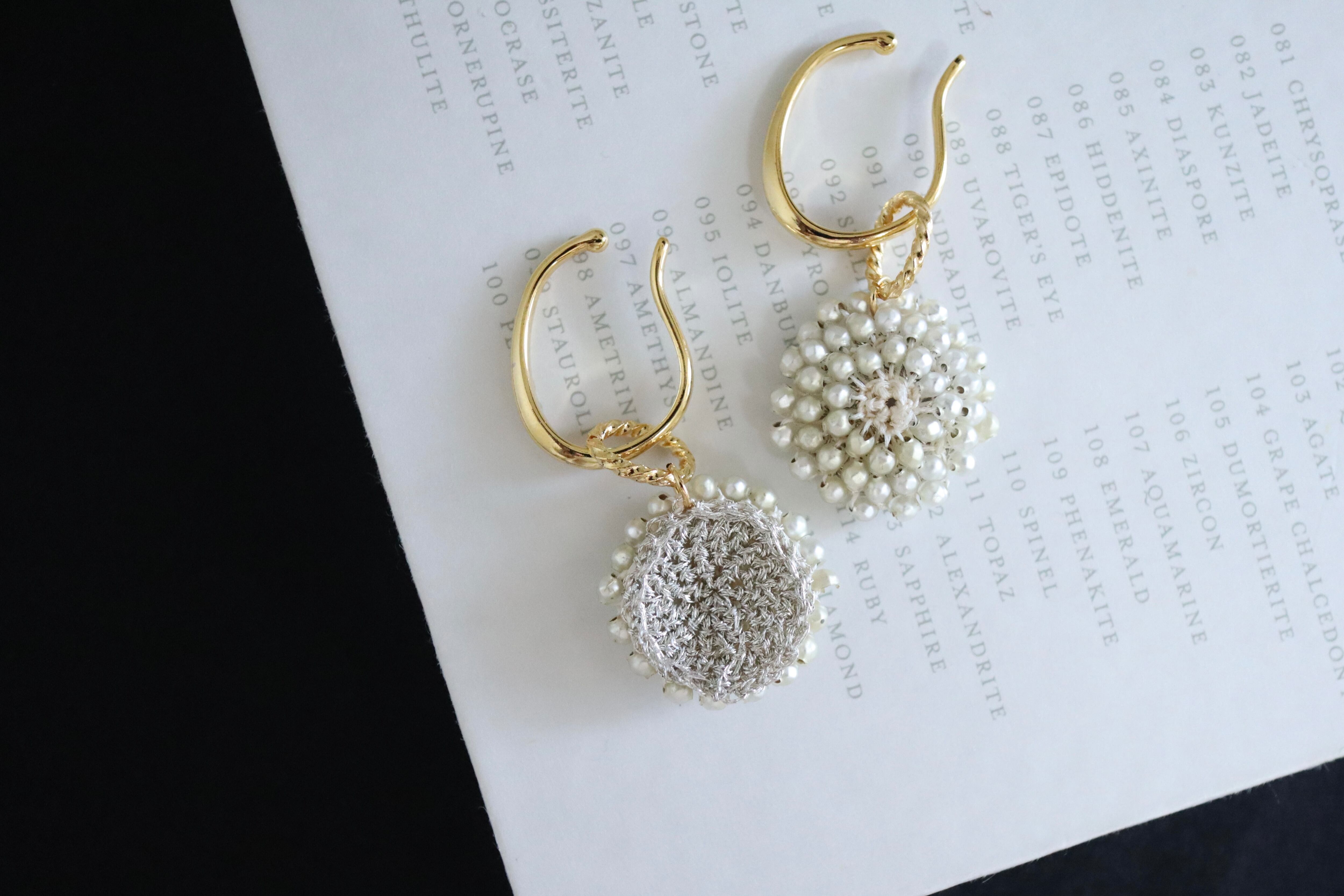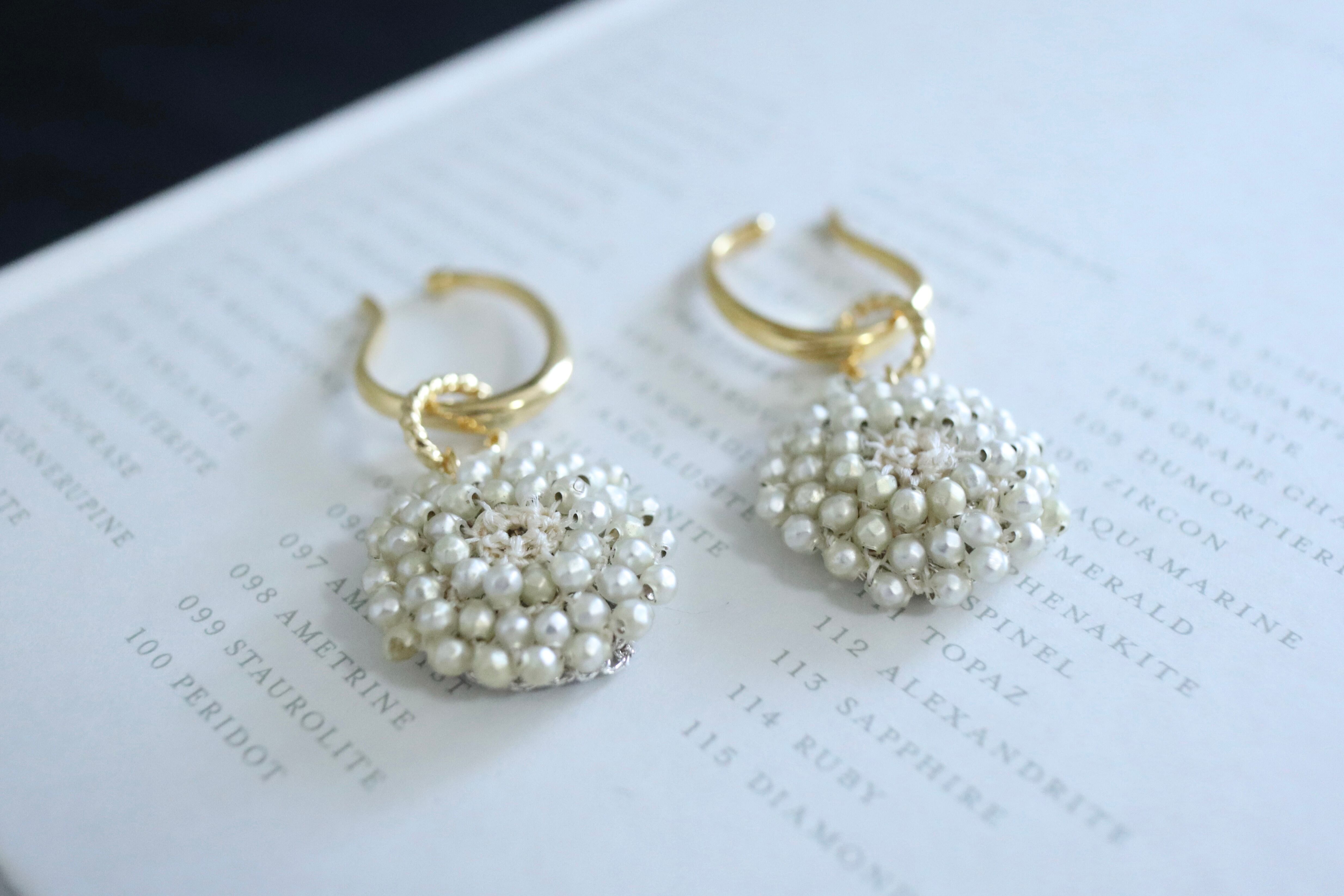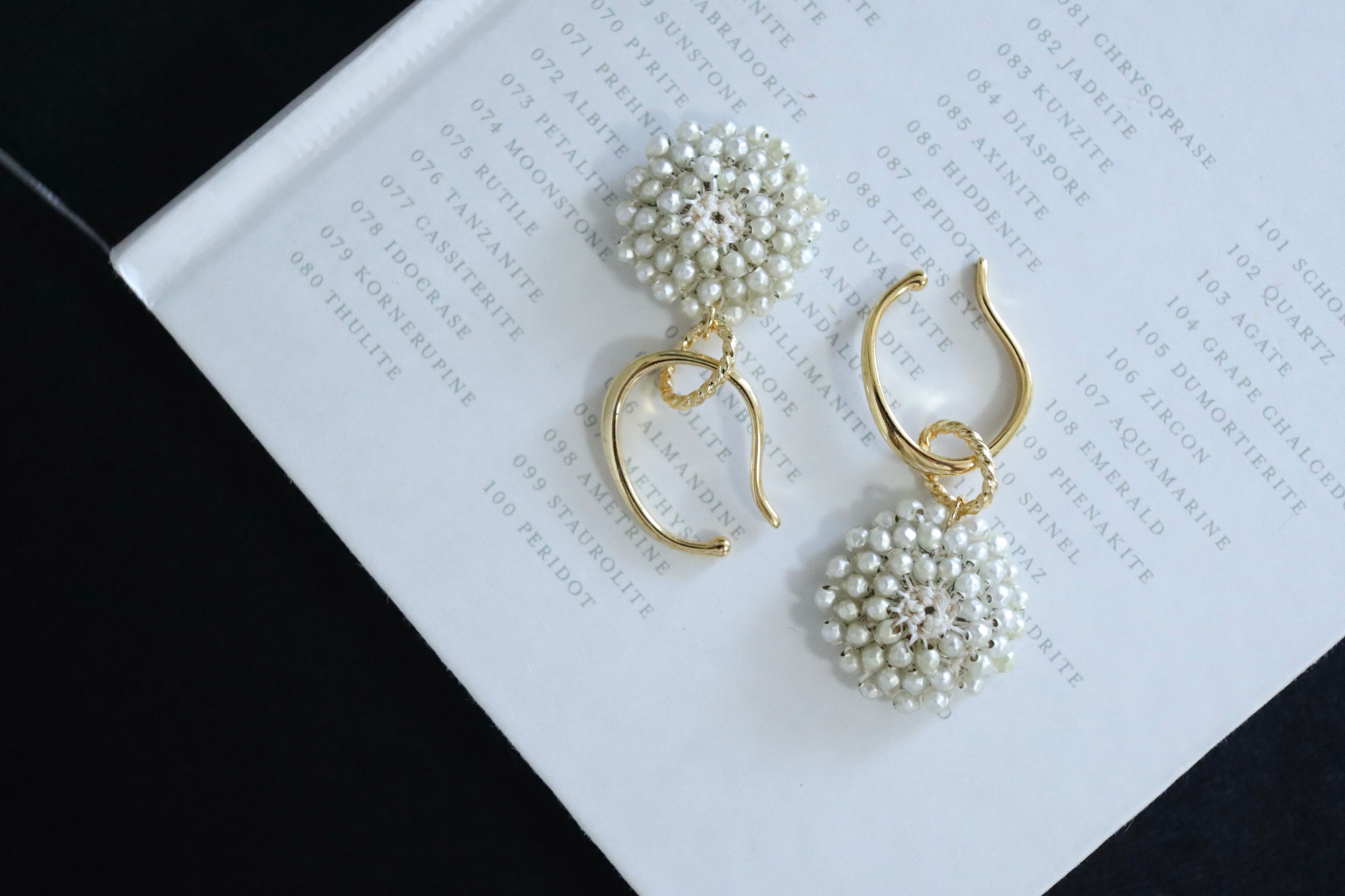 フランスアンティークビーズ, スフレビーズ, レース編みジュエリー, アンティークジュエリー, イヤーカフ, 白い花のアクセサリー, 一点物ジュエリー, 卒業式ピアス, 入学式アクセサリー, 春の新作, 希少ビーズ, 自分へのご褒美ジュエリー