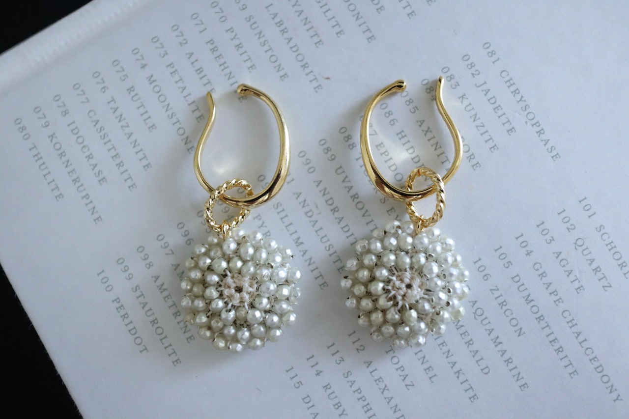 スフレビーズを使用した花のようなモチーフのイヤーカフ