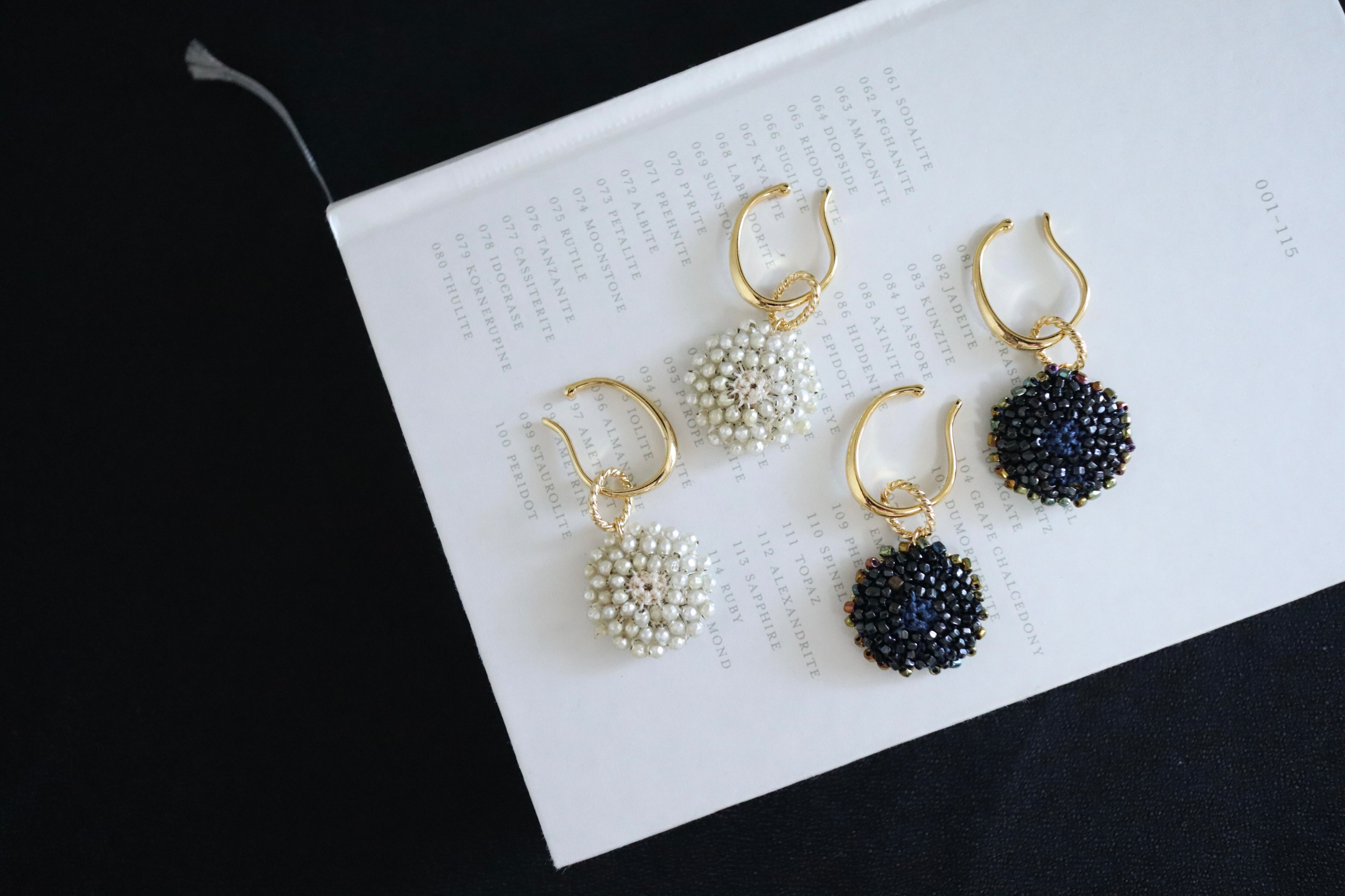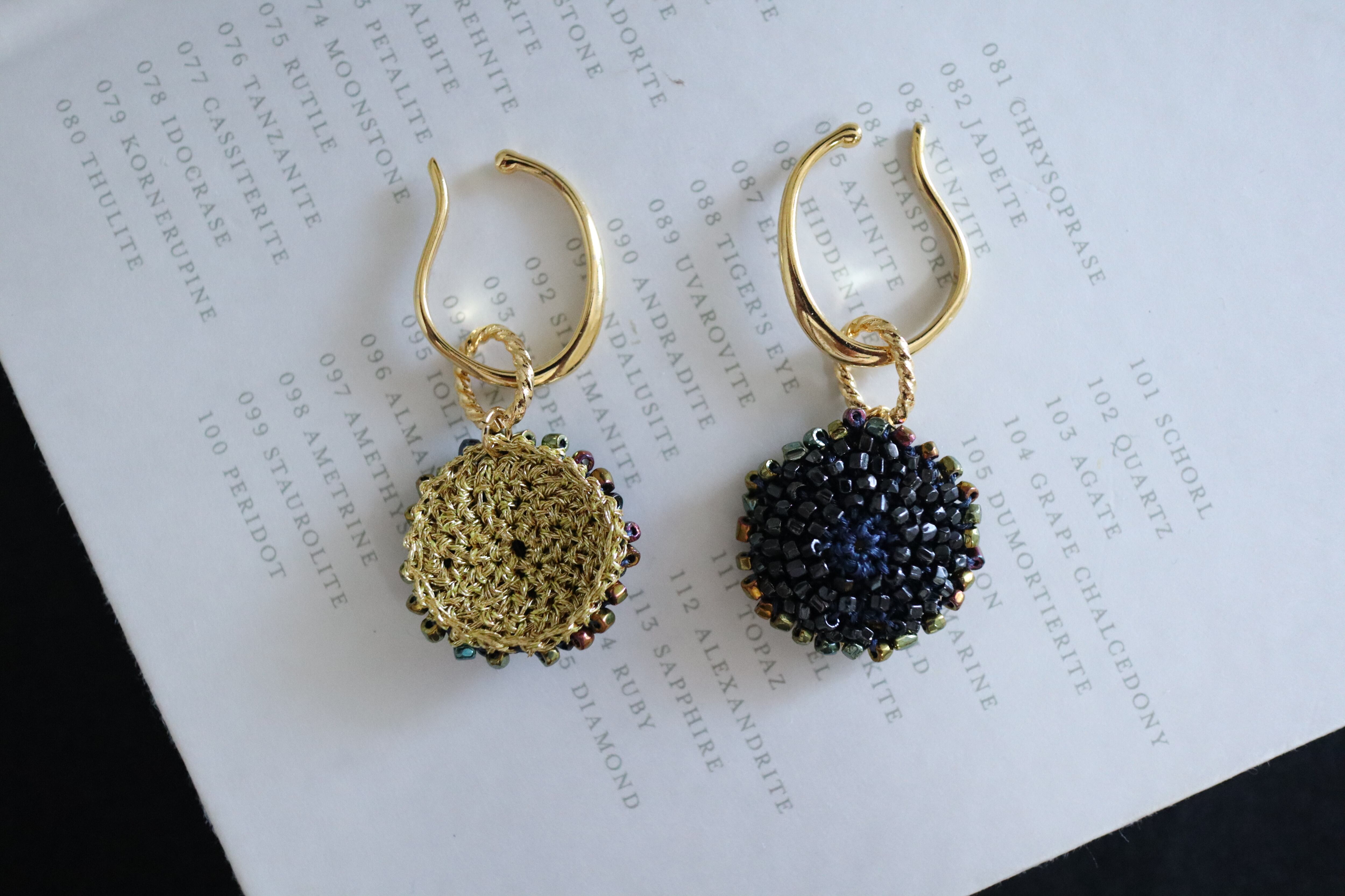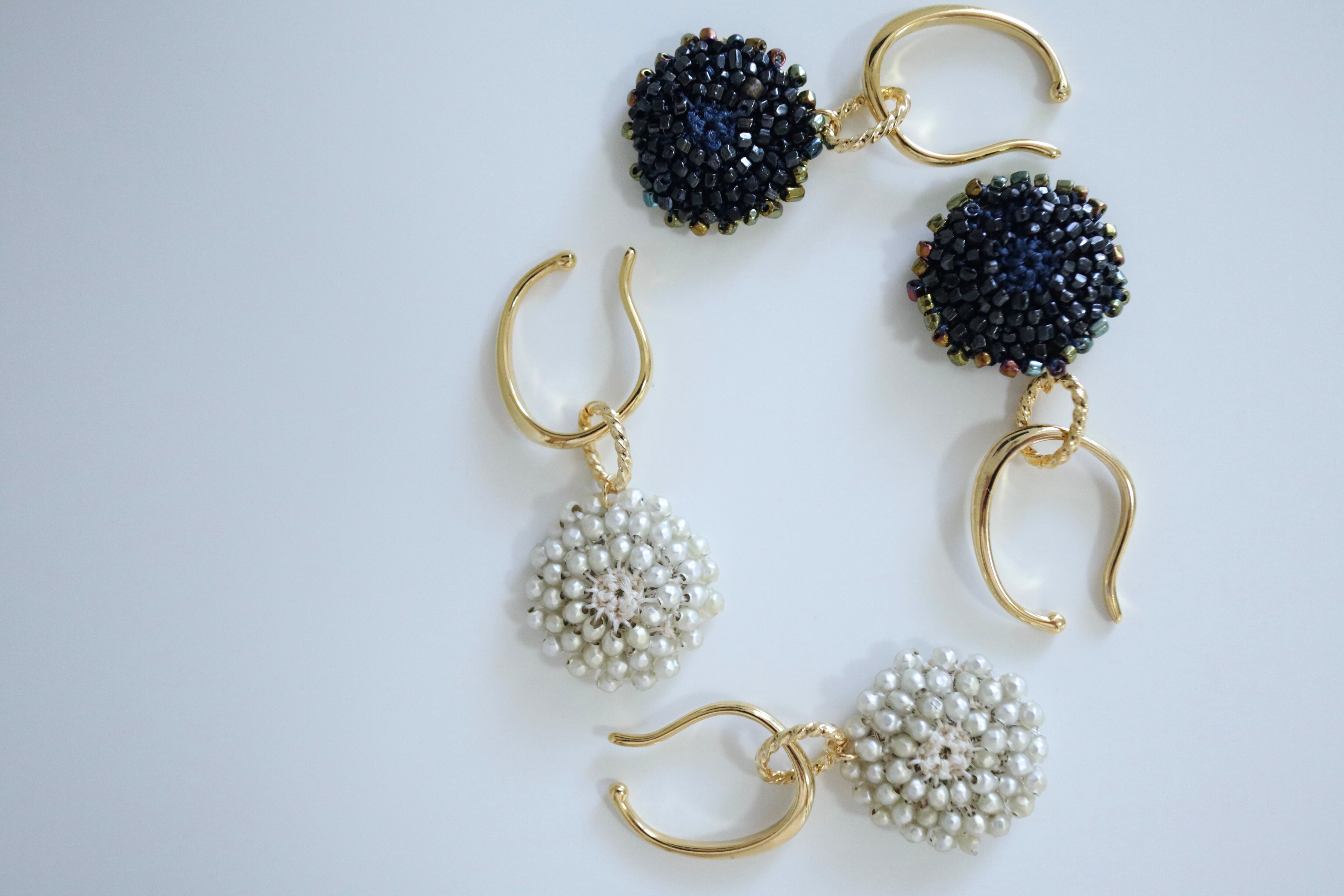 フランスアンティークビーズ, アンティークジュエリー, レース編みジュエリー, イヤーカフ, ブラックジュエリー, 黒い花アクセサリー, 一点物ジュエリー, 卒業式コーディネート, 入学式アクセサリー, 春の新作, 希少ビーズ, 自分へのご褒美ジュエリー