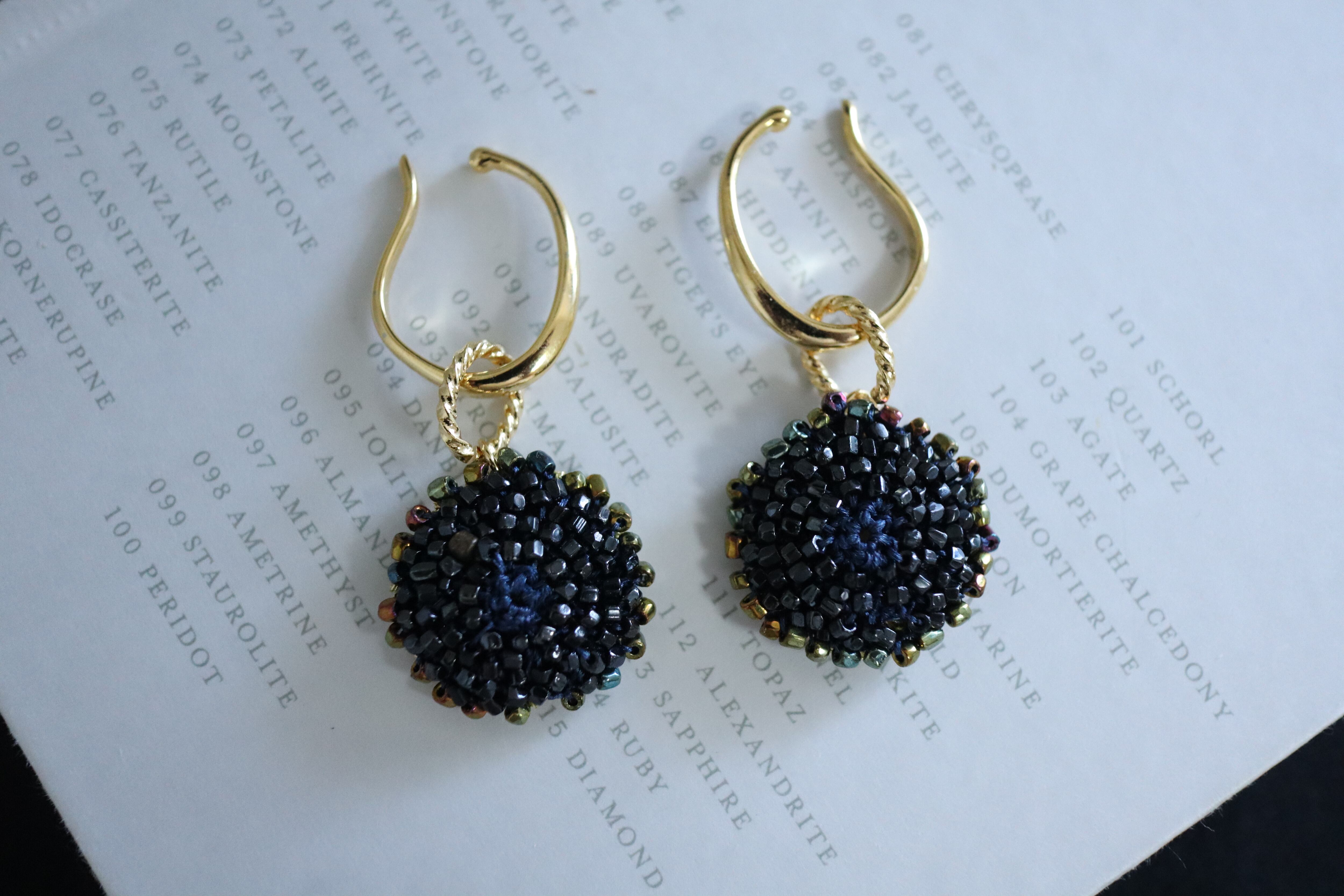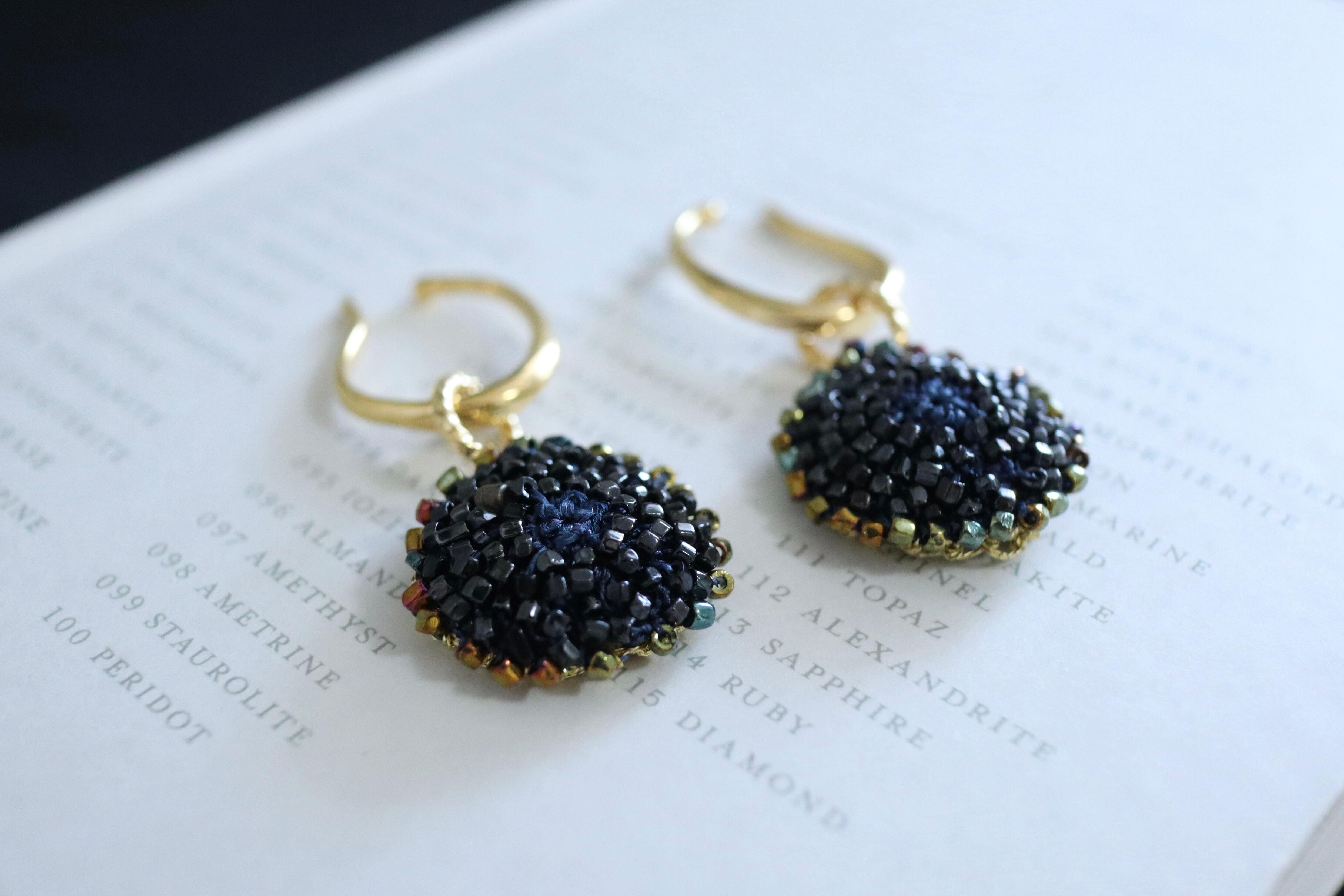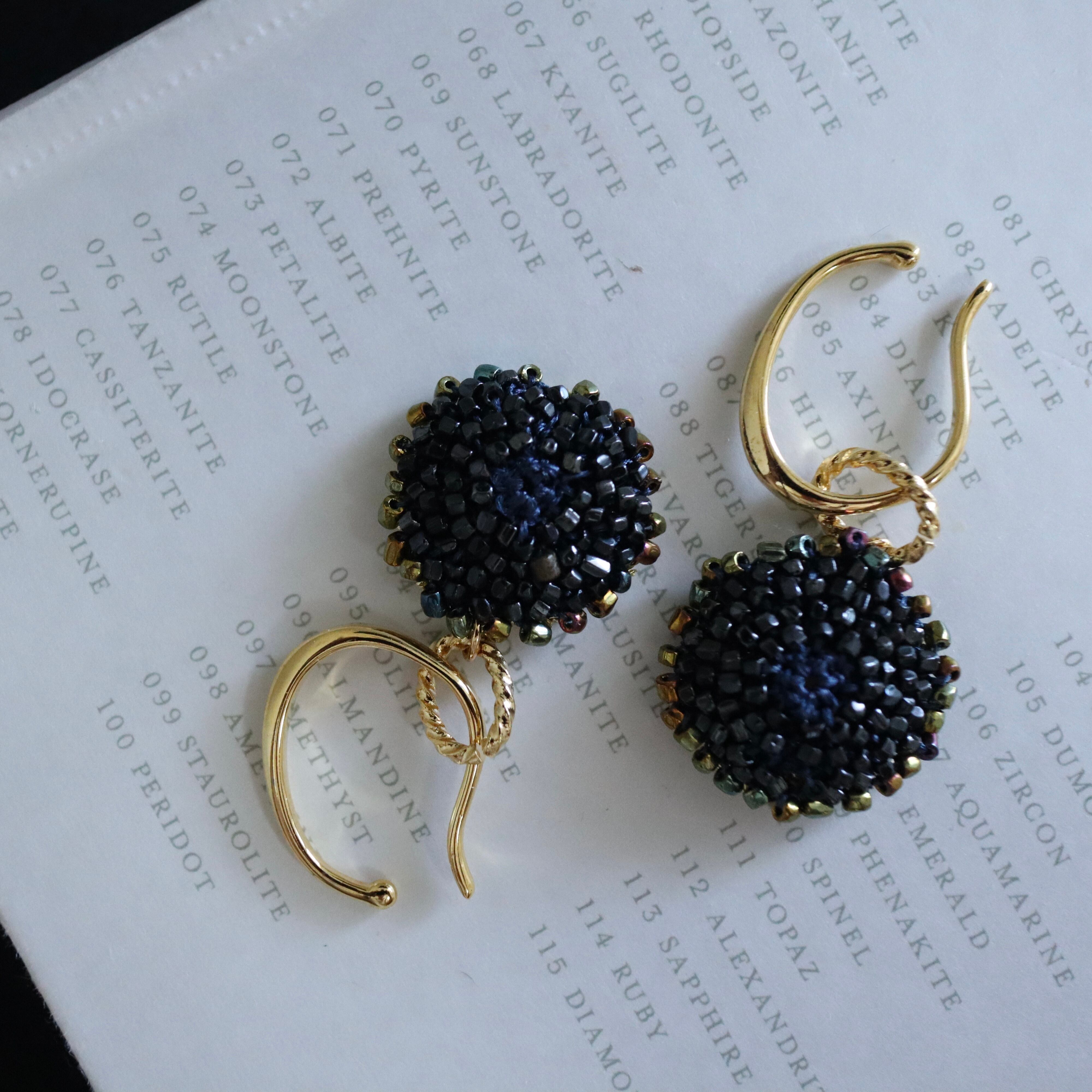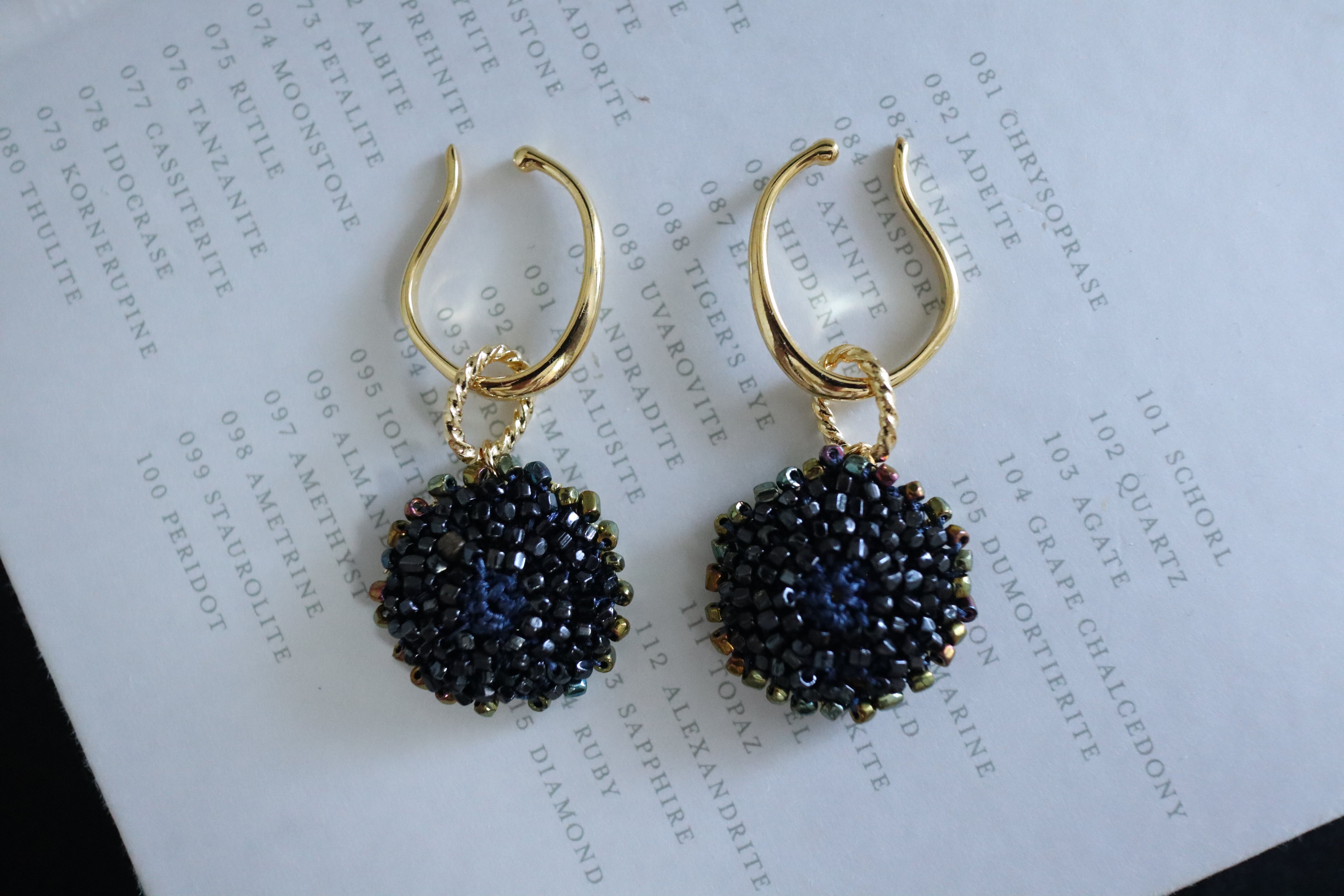 Minuit フランスアンティークビーズの両耳用イヤーカフ