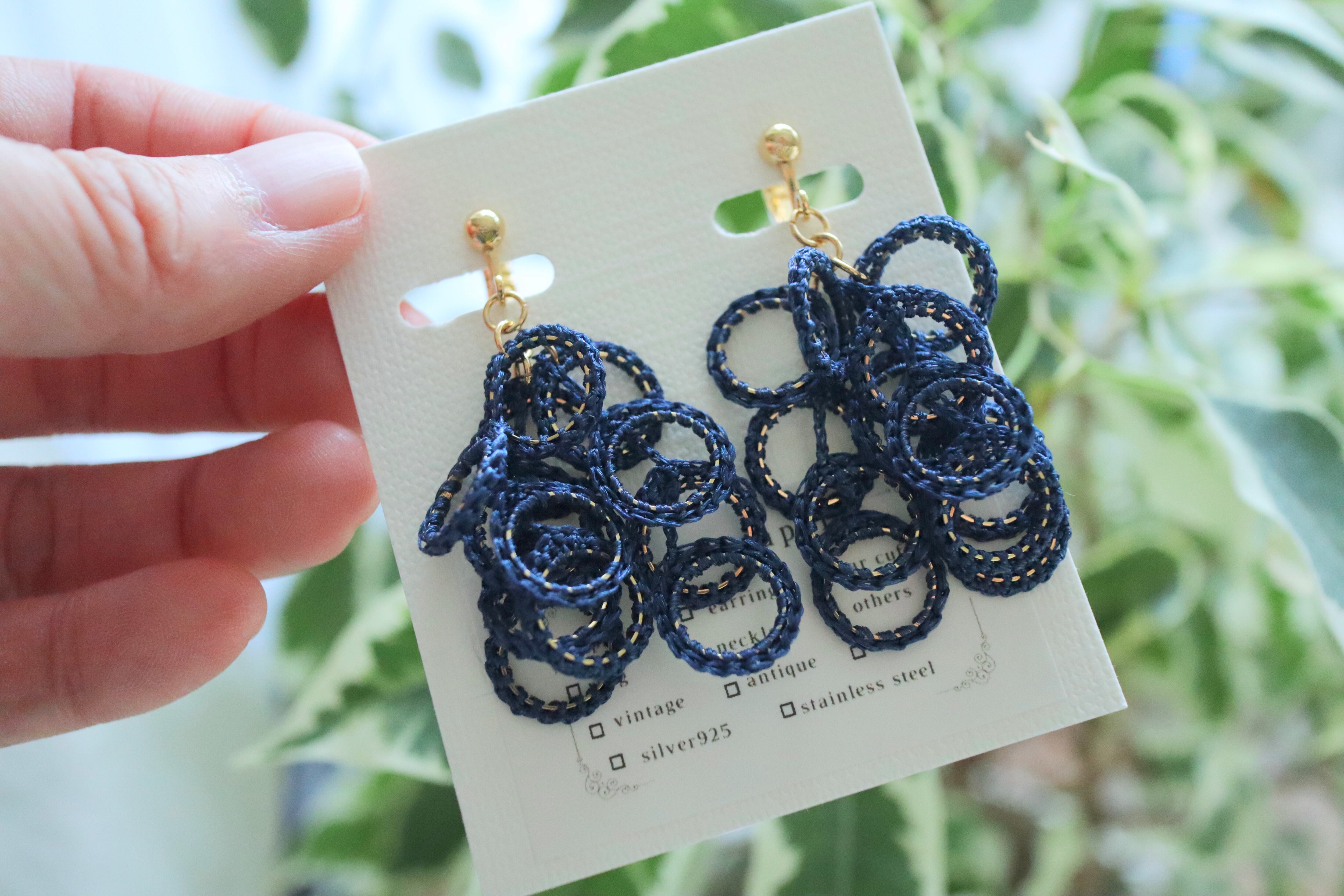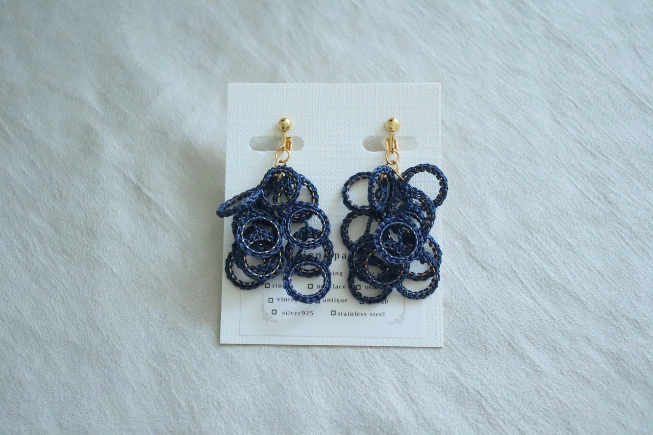 Halo - navy | 耳飾り | ワイルドシルク