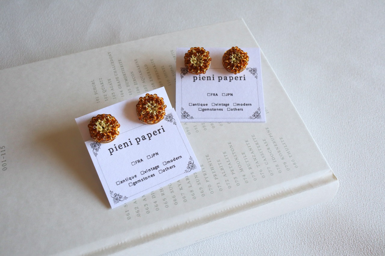 金木犀 フランスヴィンテージビーズの耳飾り * ワンポイント スタッズピアス イヤリング変更可