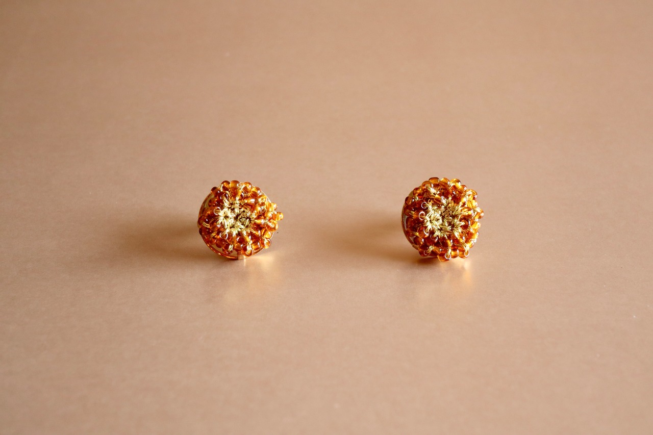 ゴールド、華やか、可愛い、小さめ、小粒、プチ、揺れない、スタッズ、小さい、さりげない、フェミニン、花、フラワー、プレゼント、ギフト、繊細、華奢、上品、センセーショナル、キャラメル、金木犀、イエロー、オレンジ