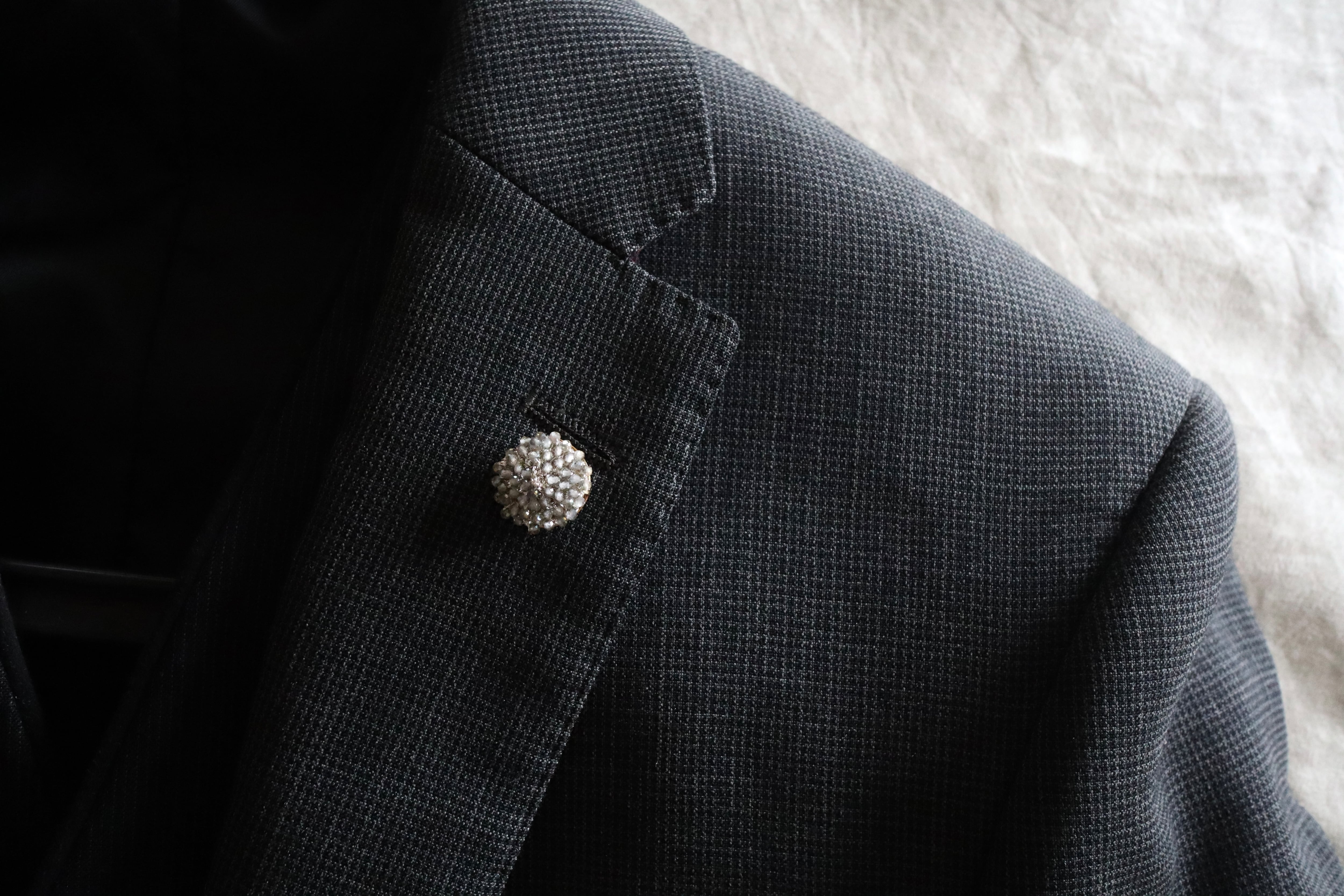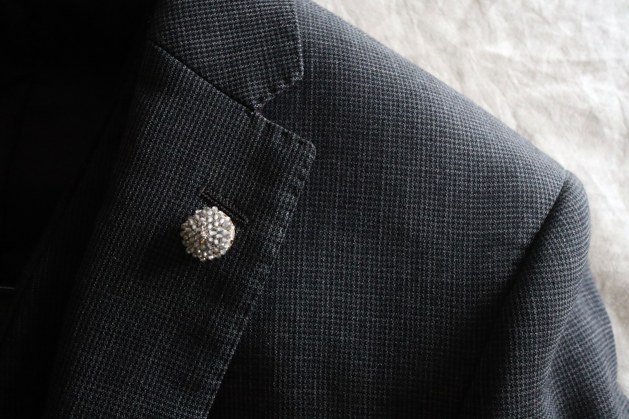 ブートニエールとはジャケットのフラワーホールに差す、花のモチーフのピンのこと。