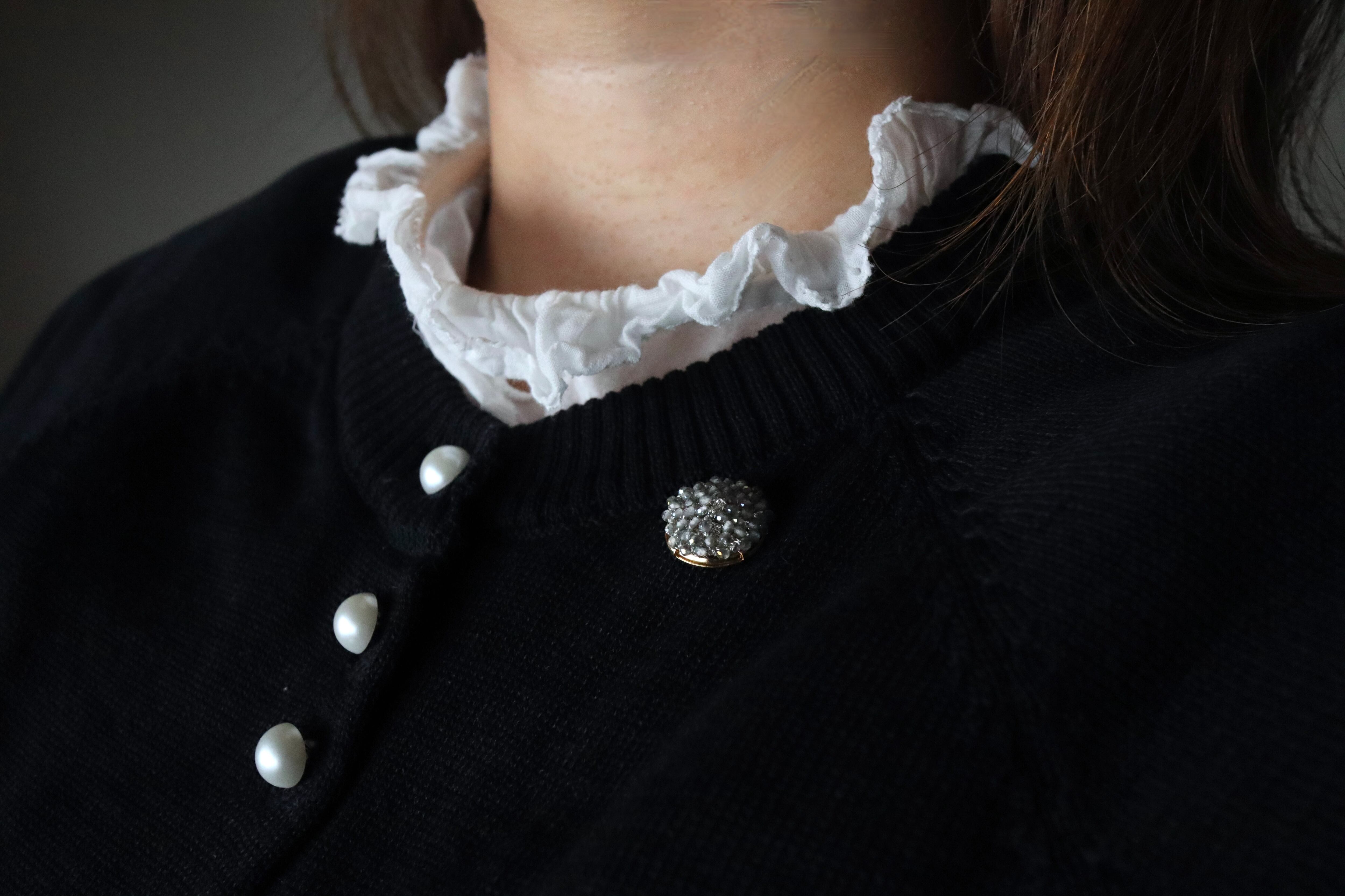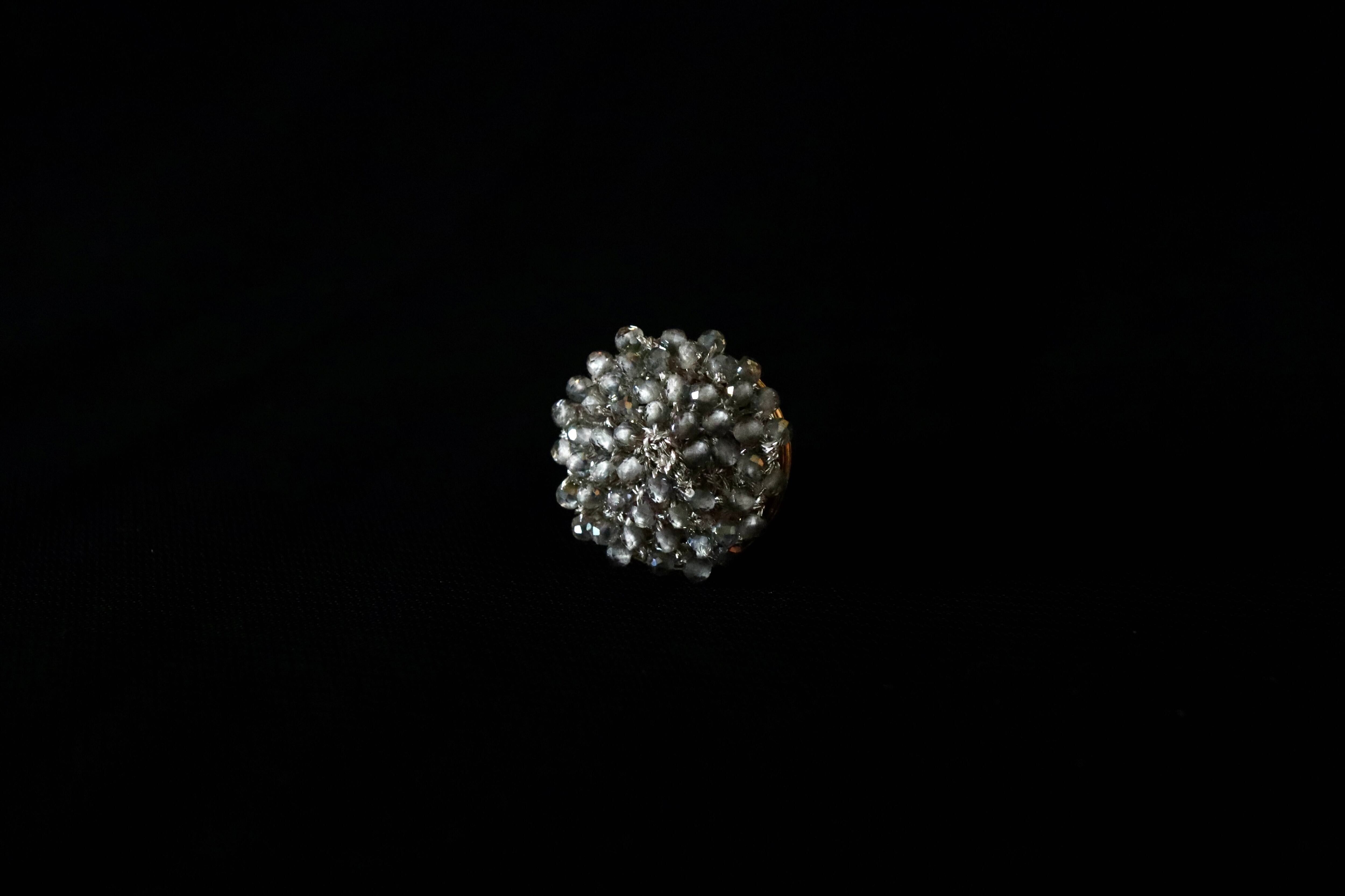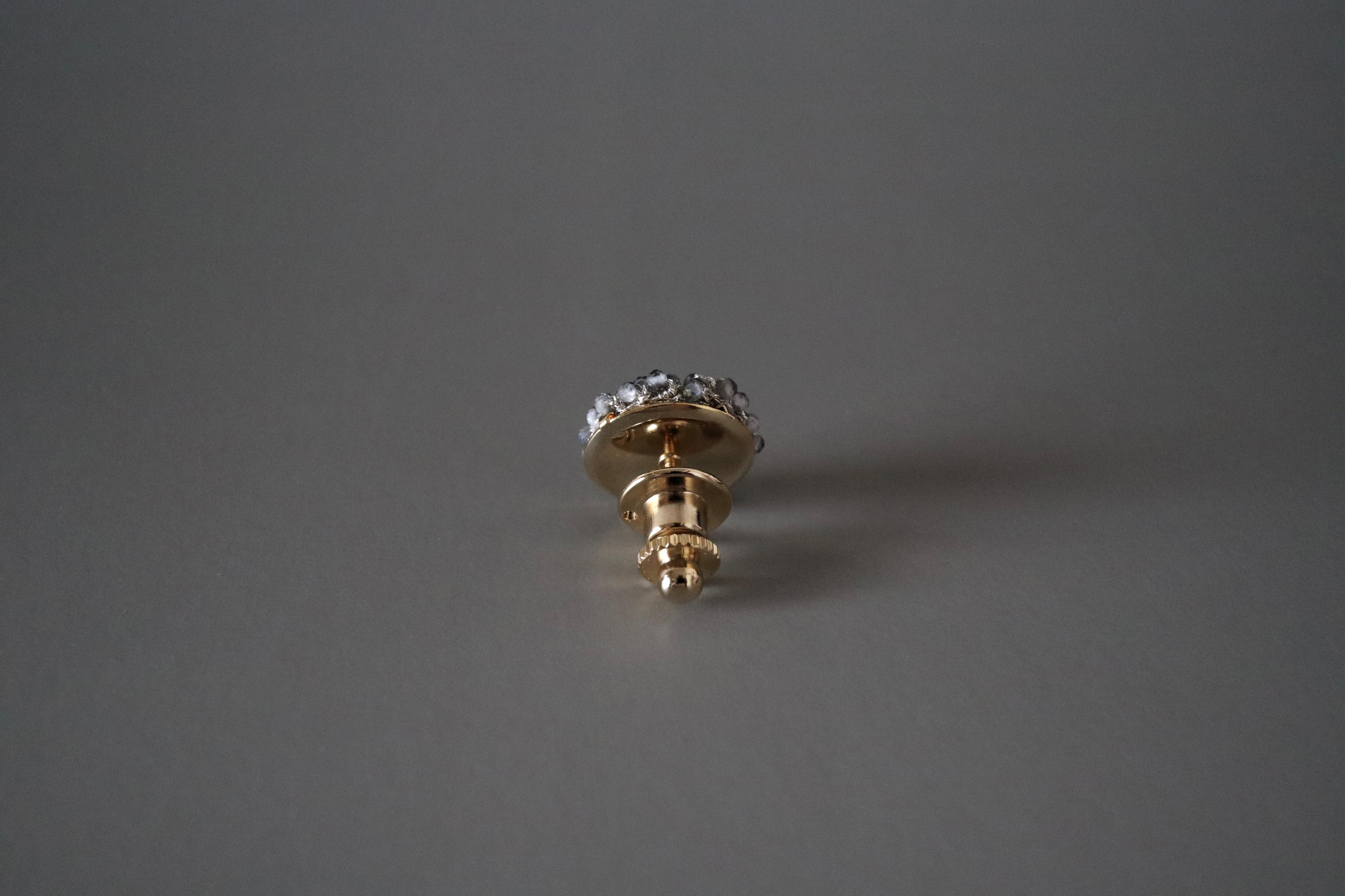 編み仕立てることで、どの角度から見ても輝きを強く放つブローチになっております