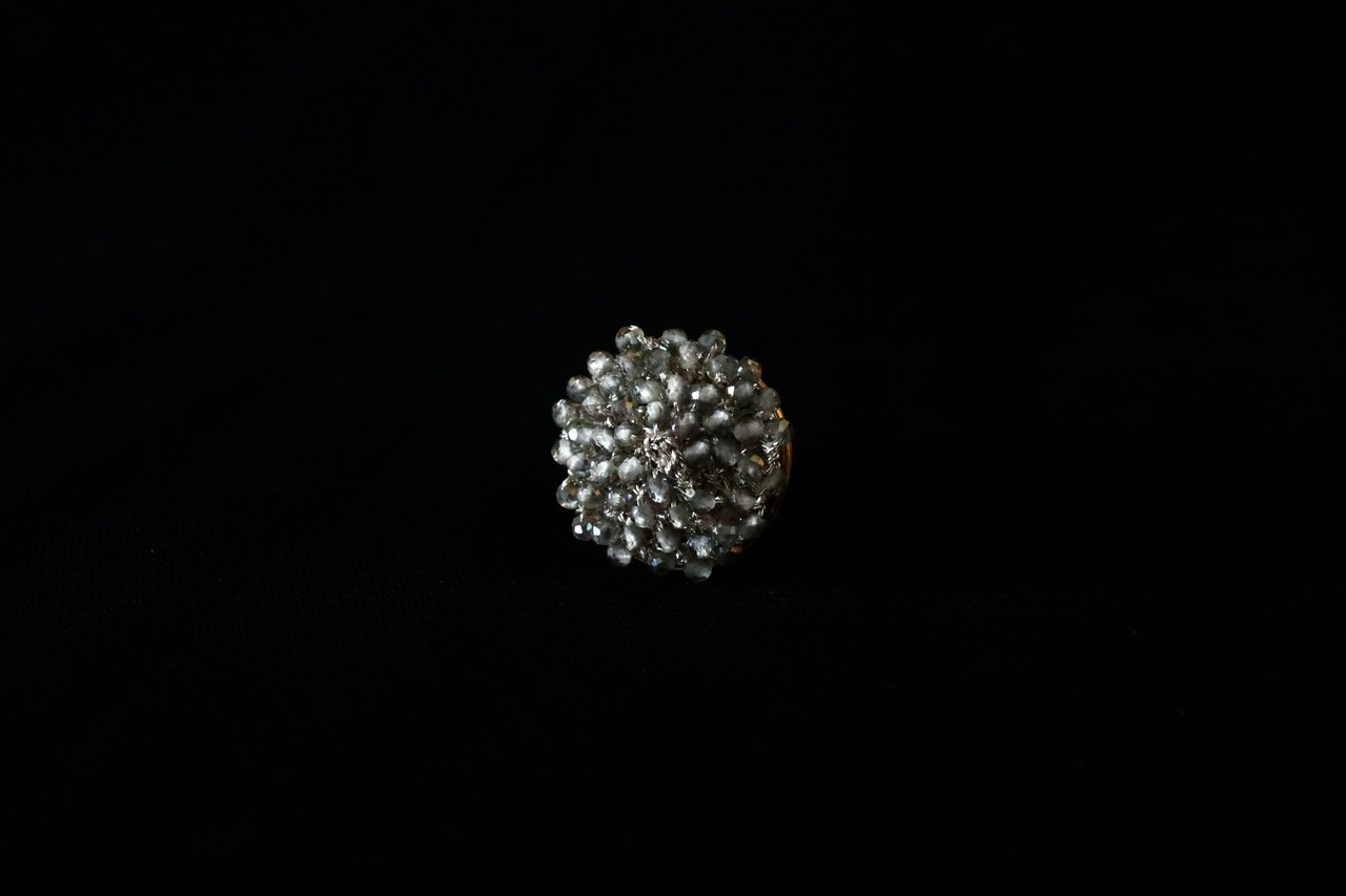 シルバーの糸で一粒ひとつぶ編み上げています。