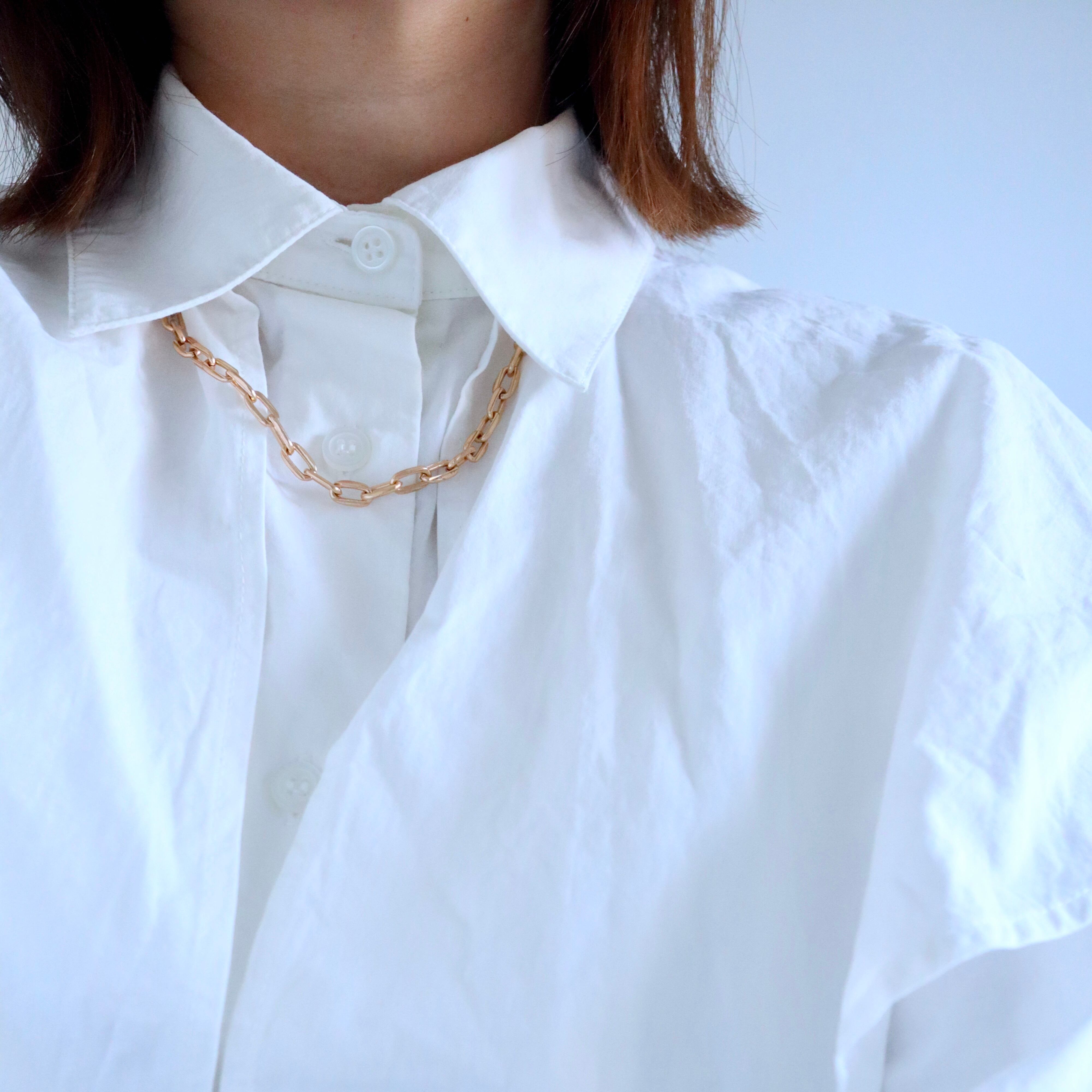 少し長めのデザインで、首元に程よい抜け感が生まれます。