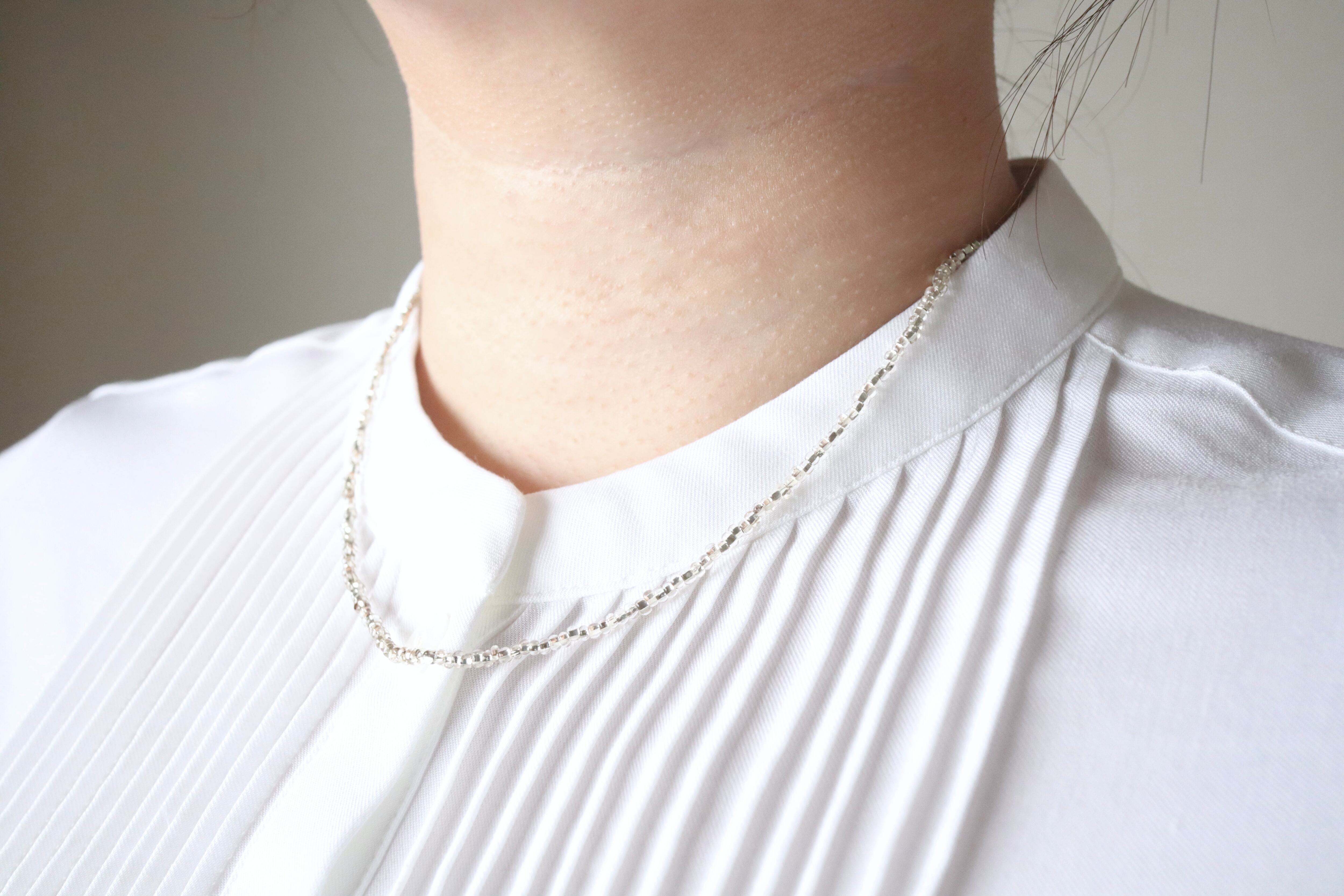 ネックレス、necklace、シルバー、silver、キラキラ、夏、フェミニン、合わせやすい、華奢、シンプル、上質、上品、普段使い、ギフト、プレゼント、光沢、ヴィンテージ、アンティーク、ニュアンス