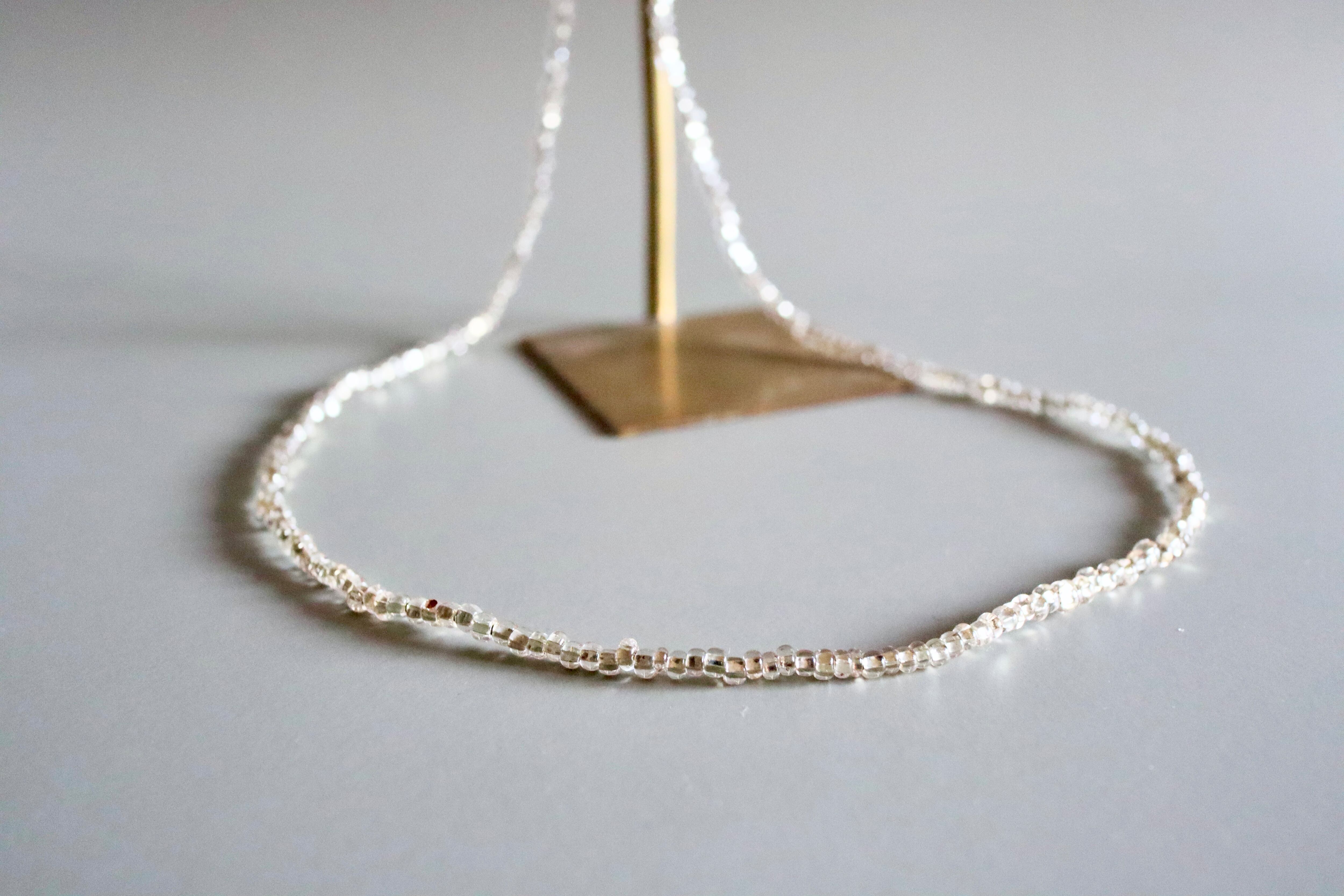 「ゴールド派のための」華奢なシルバーネックレス フランスヴィンテージビーズ