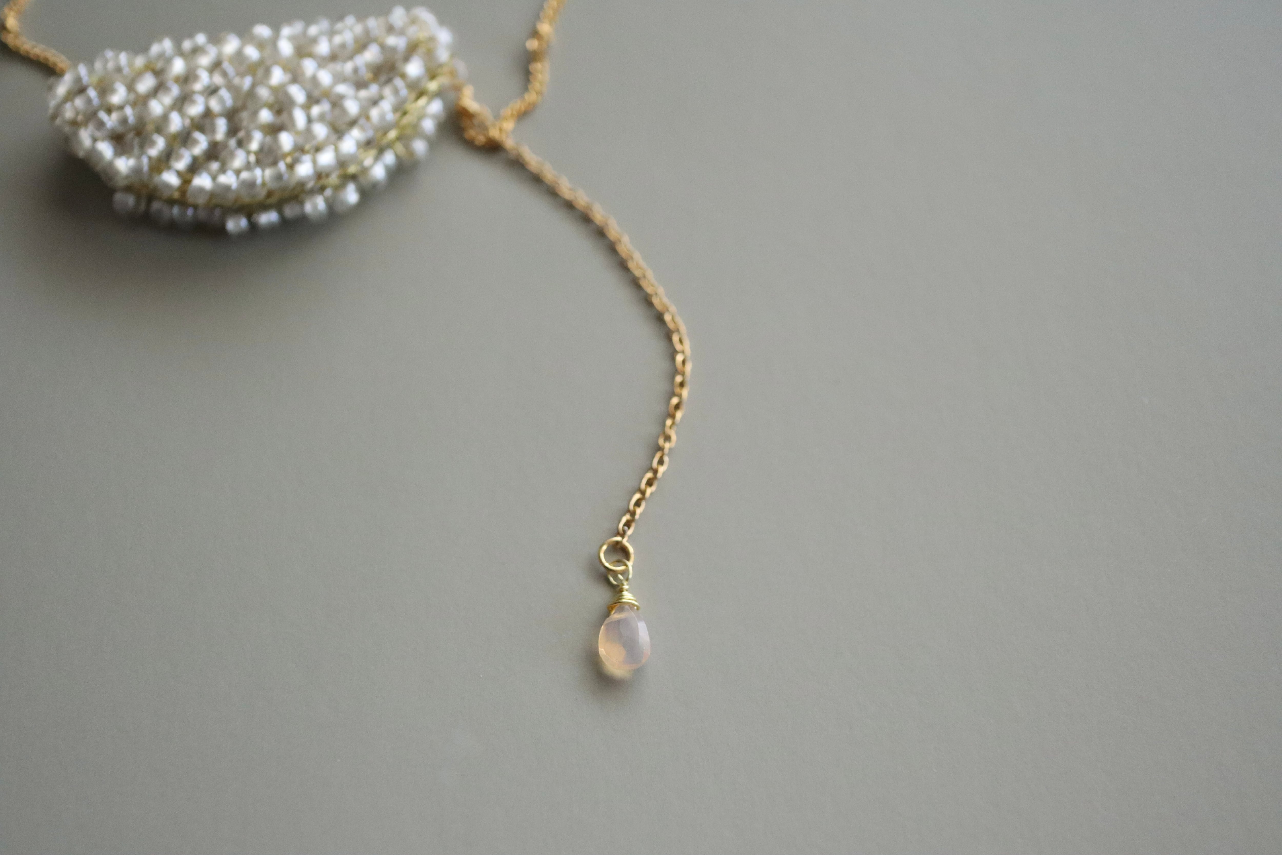 ● 使用素材 : ガラスビーズ、サージカルステンレスチェーン(金属アレルギー対応)、天然石プレシャスオパール、16kgp金具