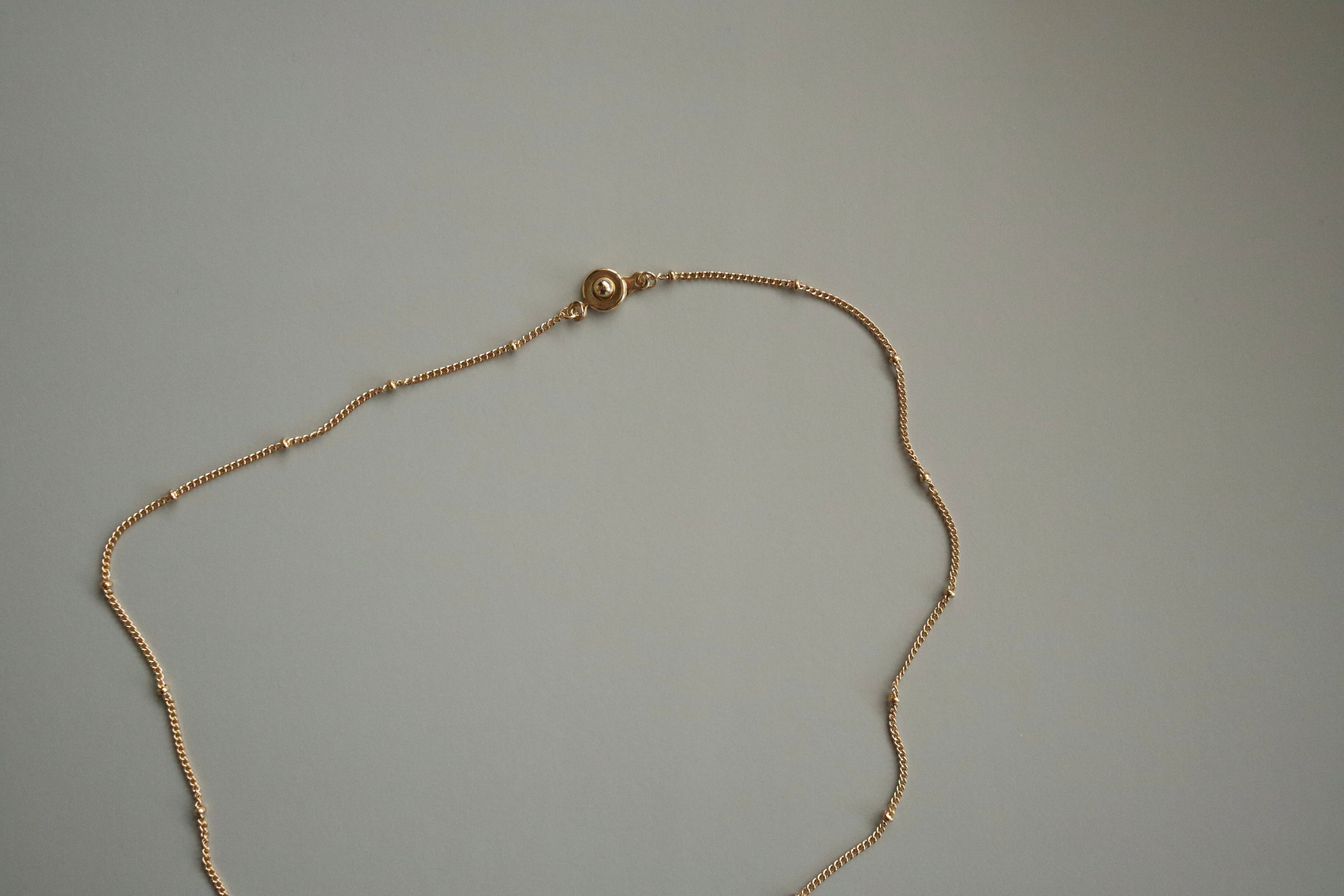 デザイン性のあるチェーンはシンプルな装いにも映えるデザインです