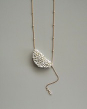 銀糸で編むことで見た目よりも軽く、ガラスビーズが陽に透けてキラキラと輝きます