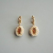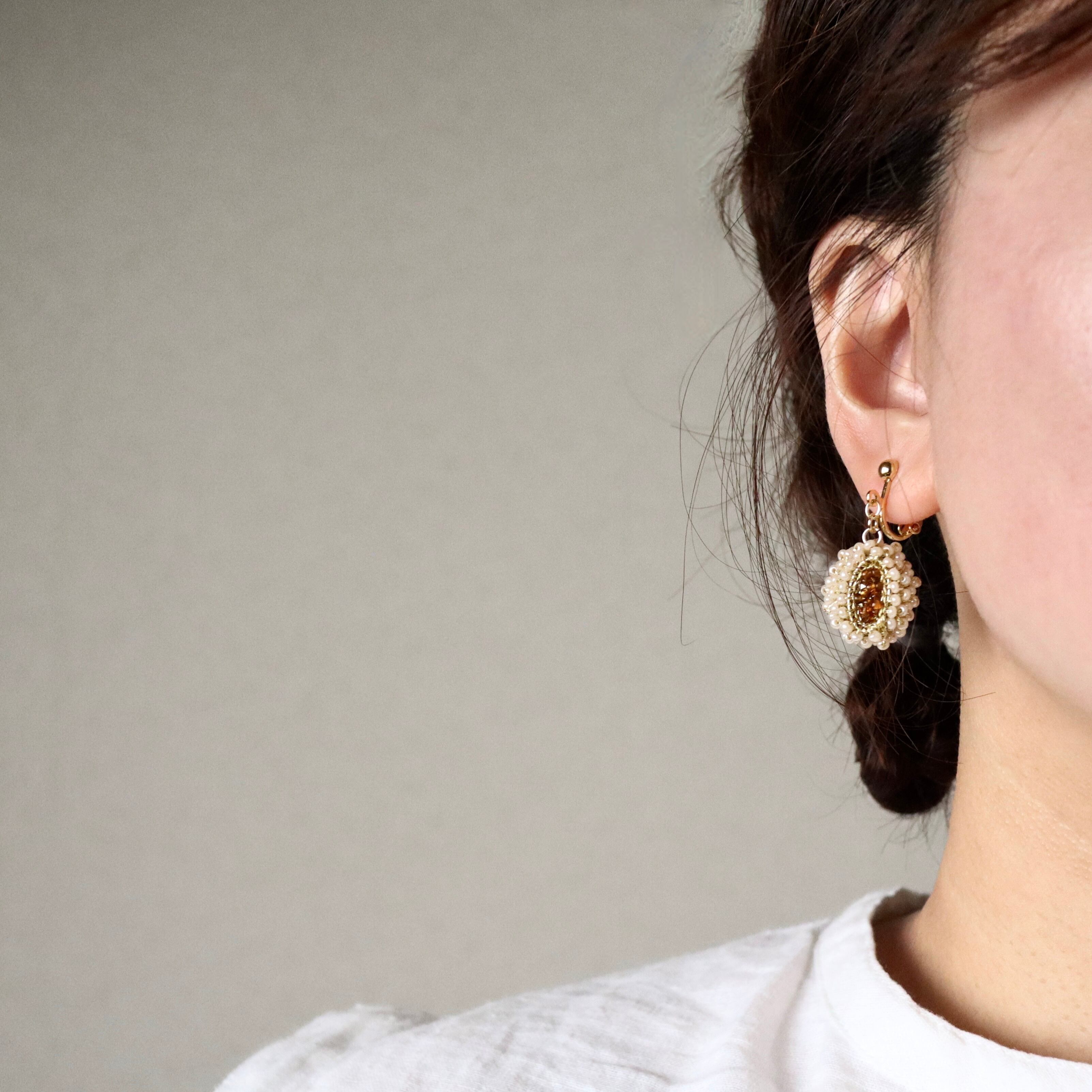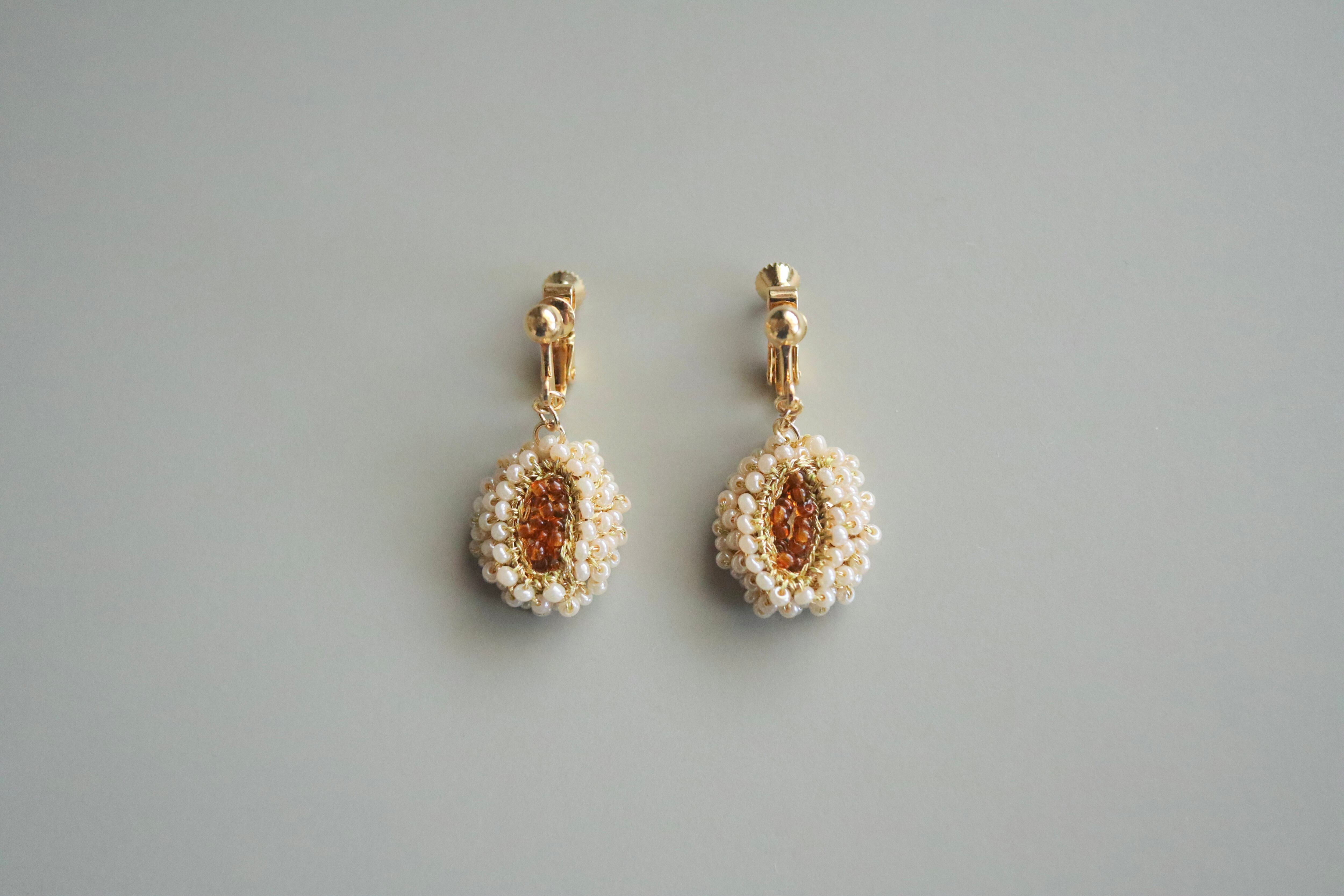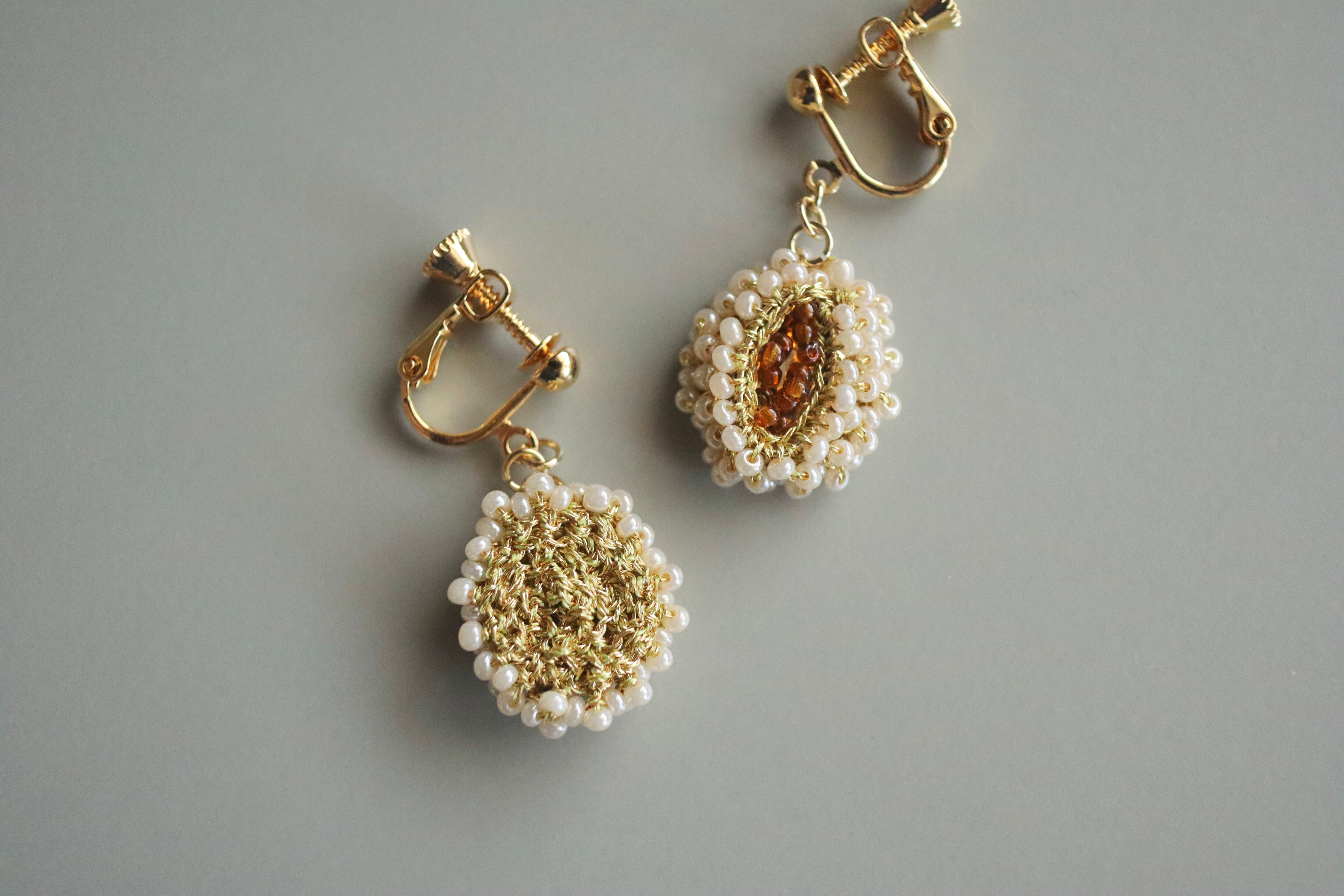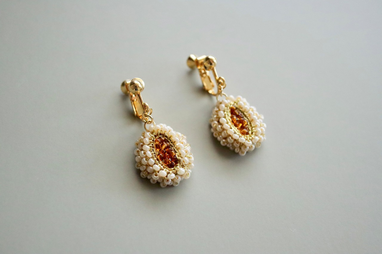 優しいクリームパールカラーと琥珀色のヴィンテージビーズが