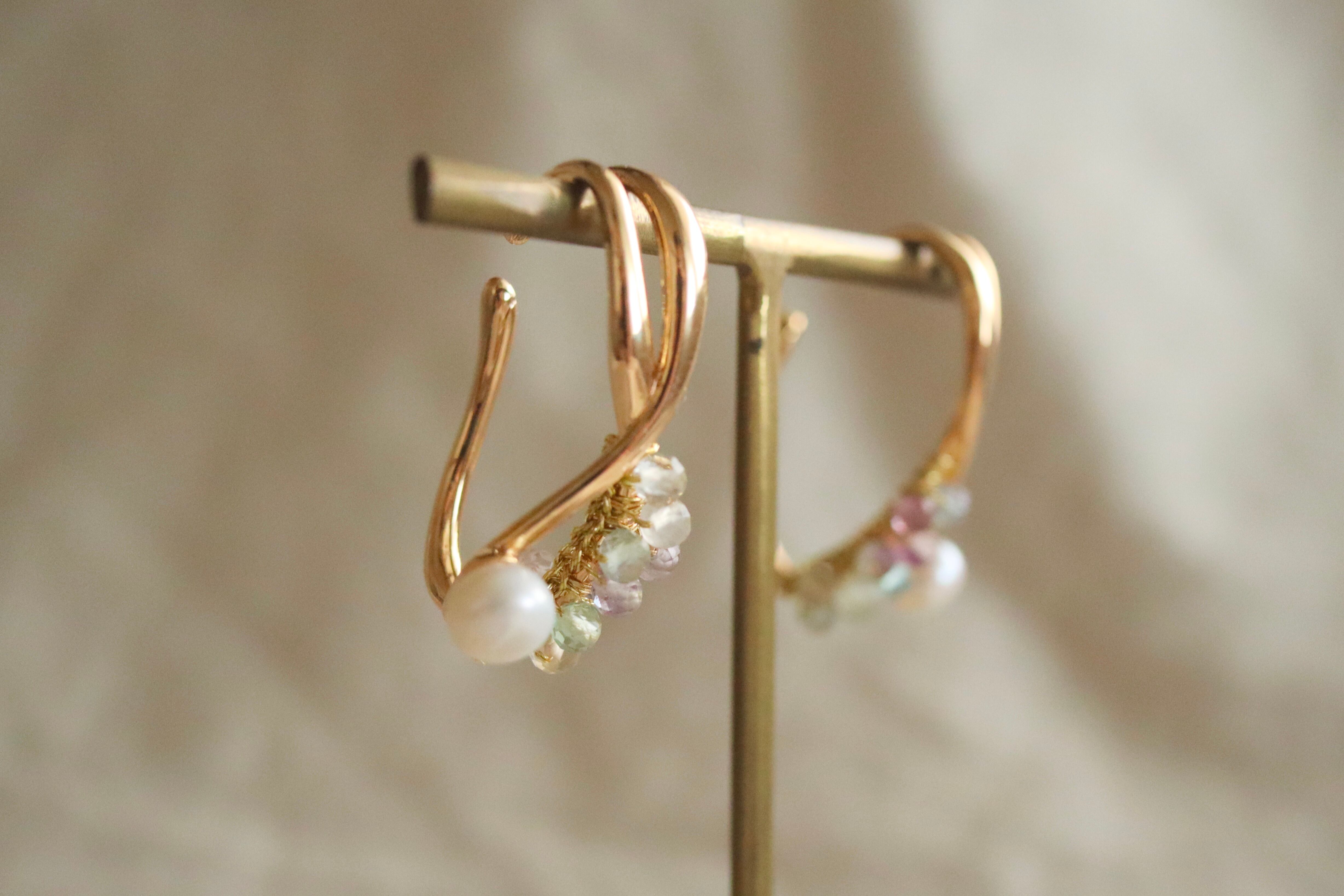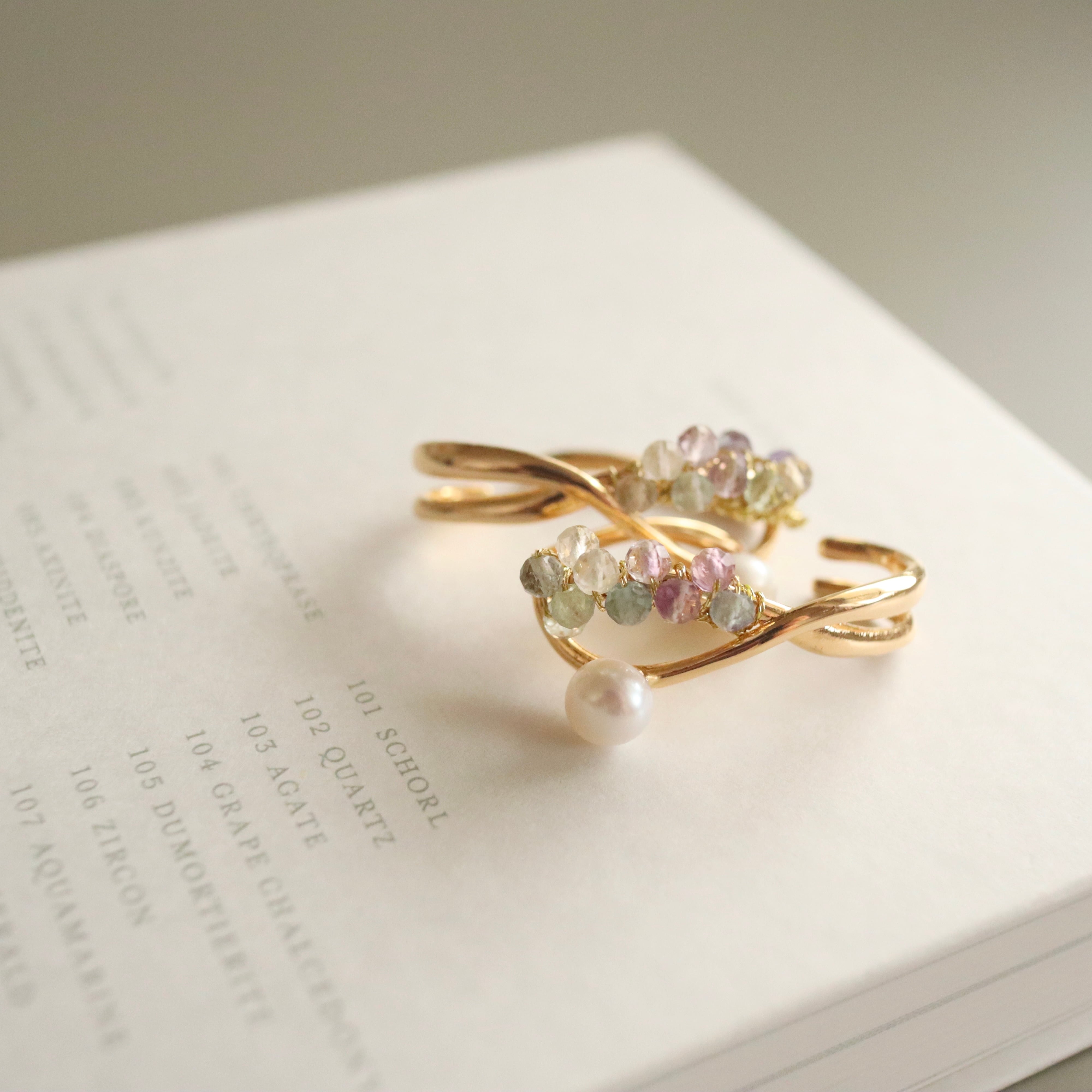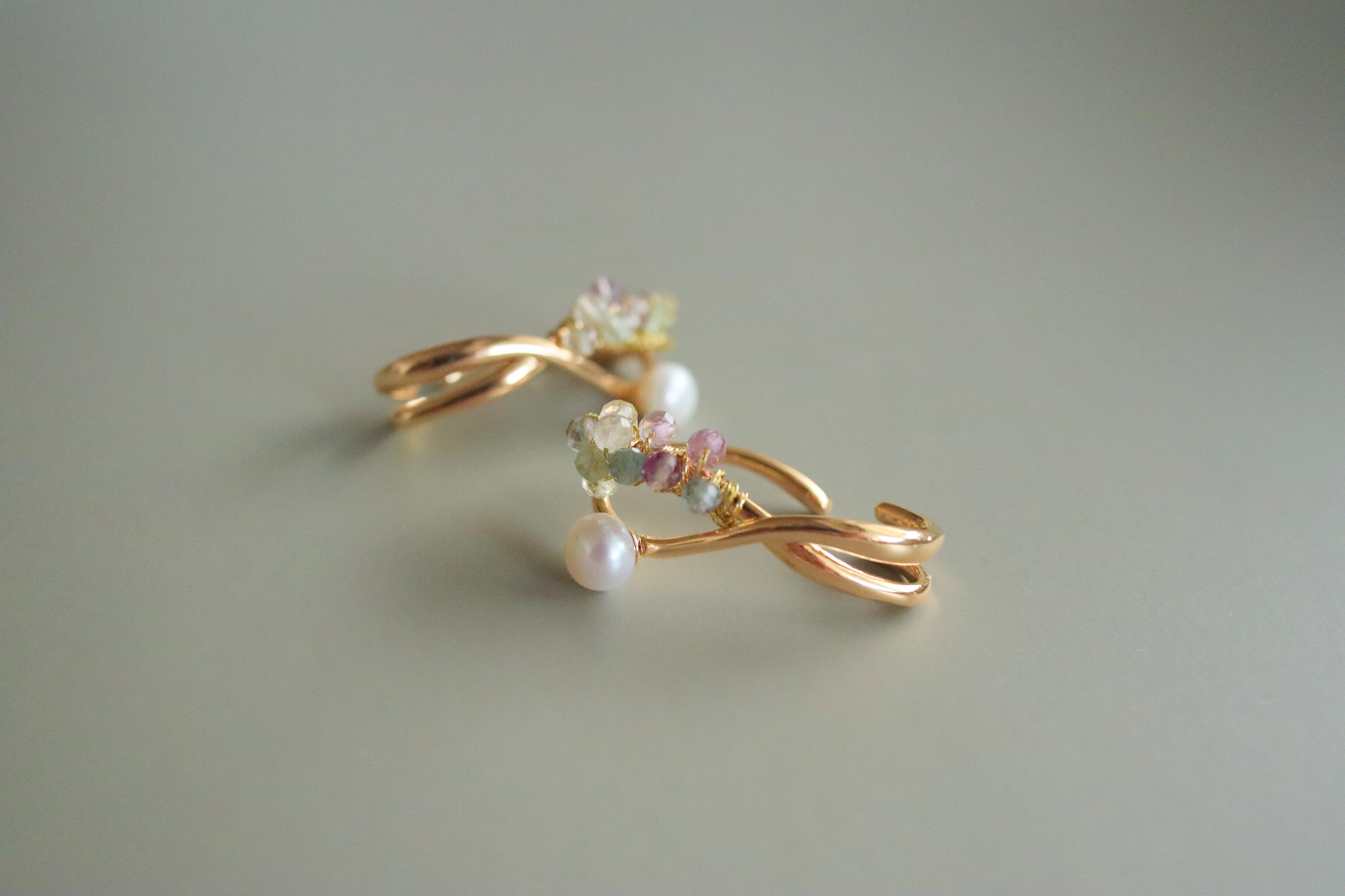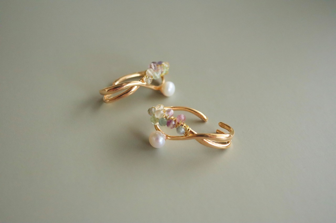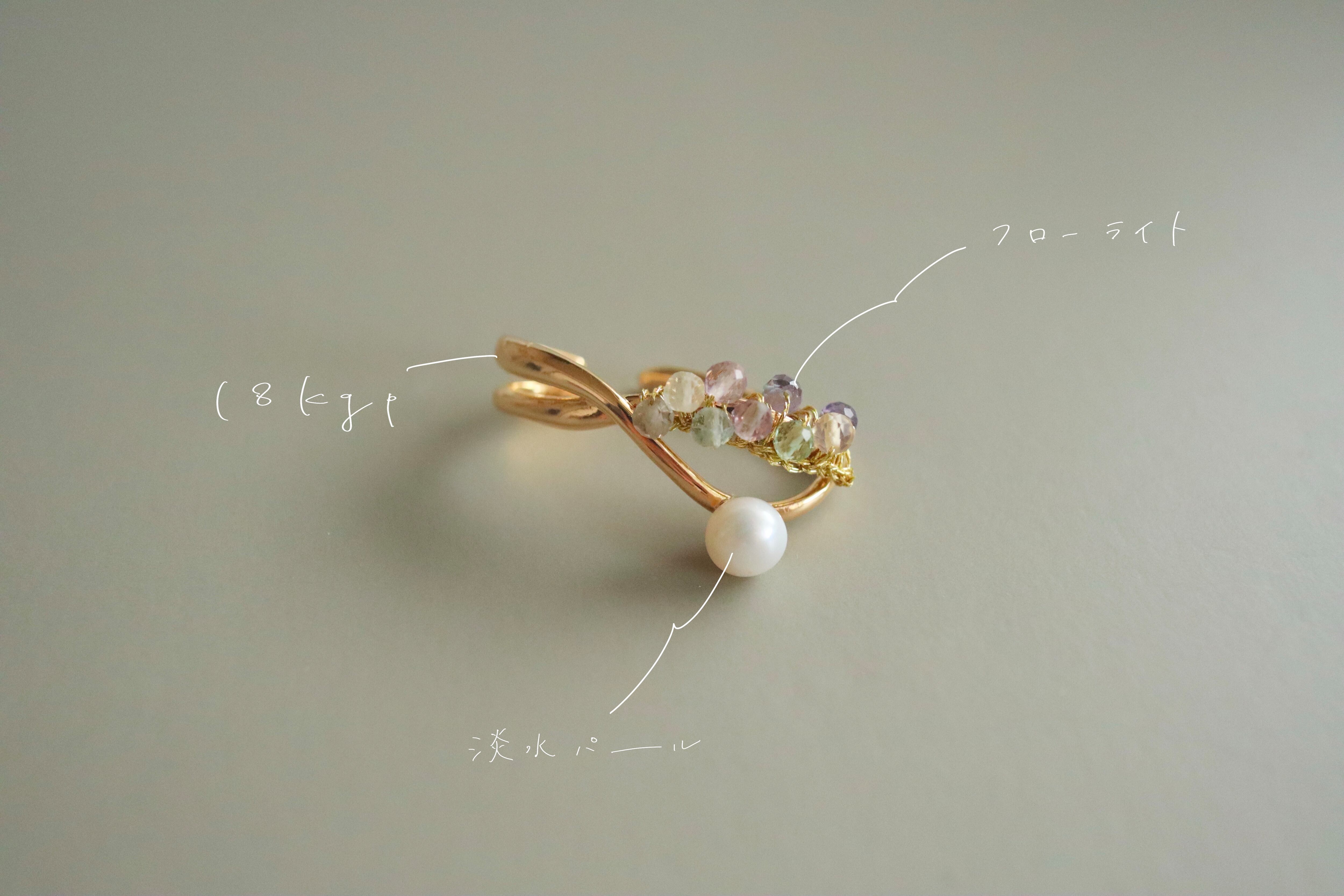 天然石フローライトと淡水パールのイヤーカフ[両耳用]