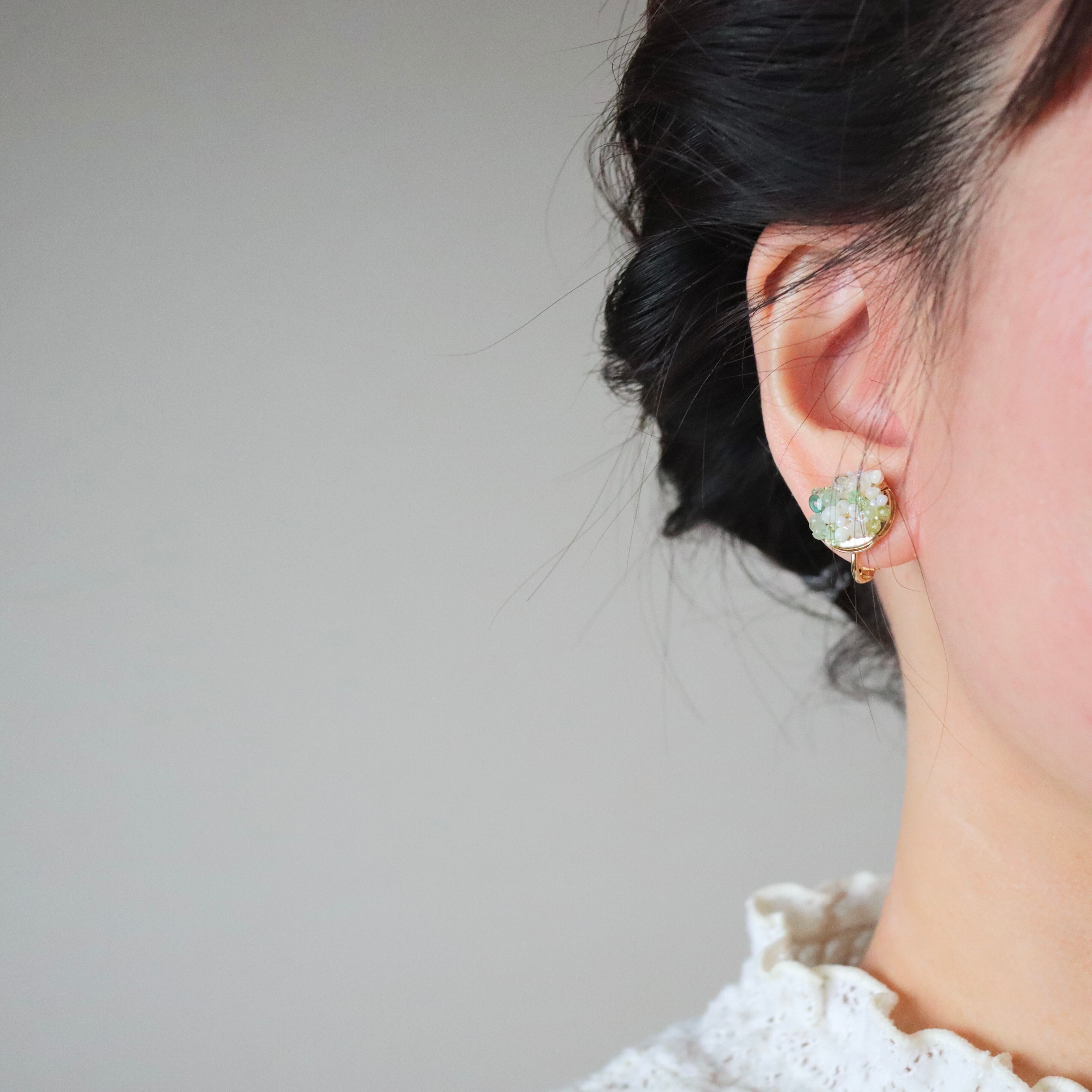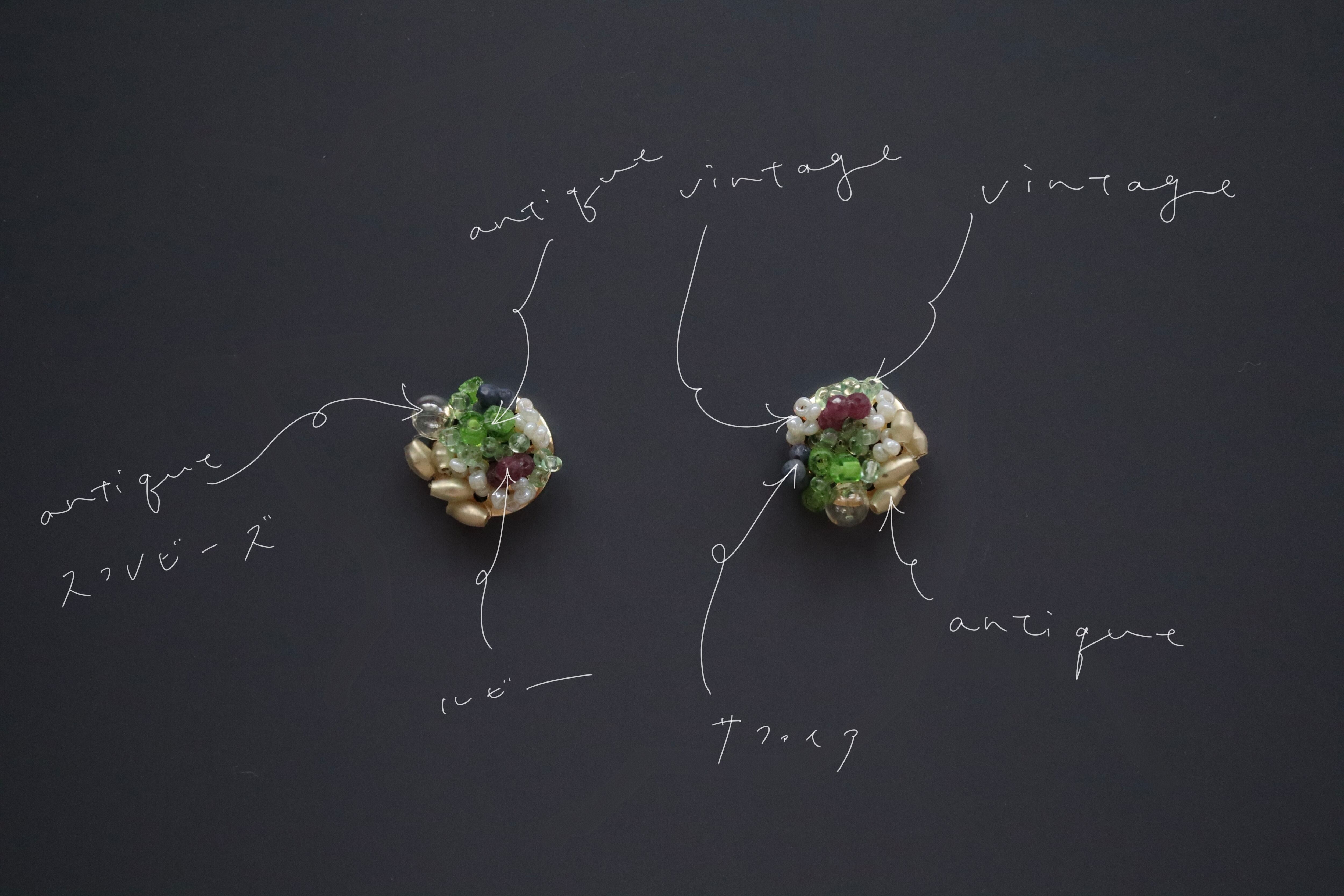 フランスアンティークビーズの繊細な輝きが重なり、