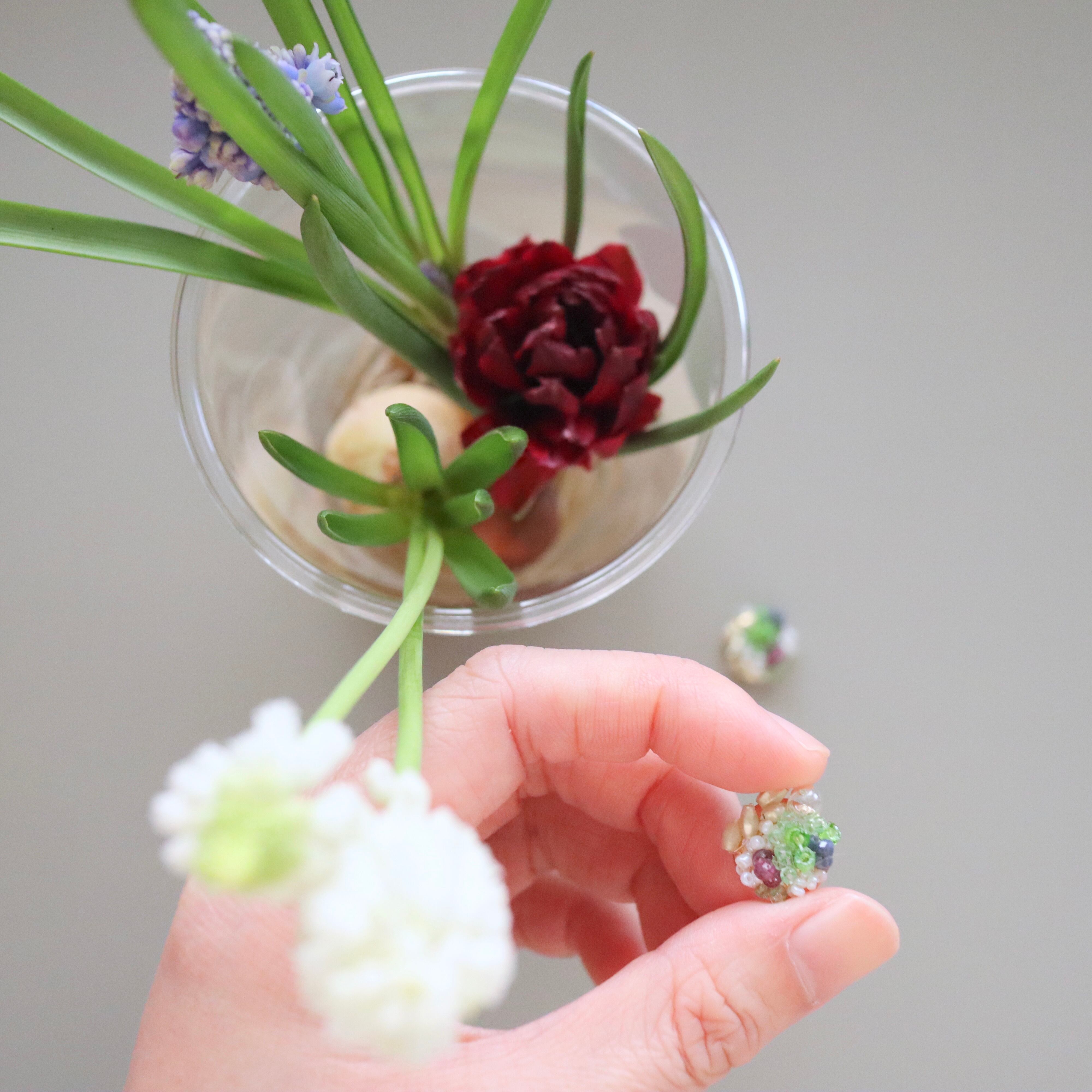 春の庭に咲くムスカリやチューリップをイメージし、