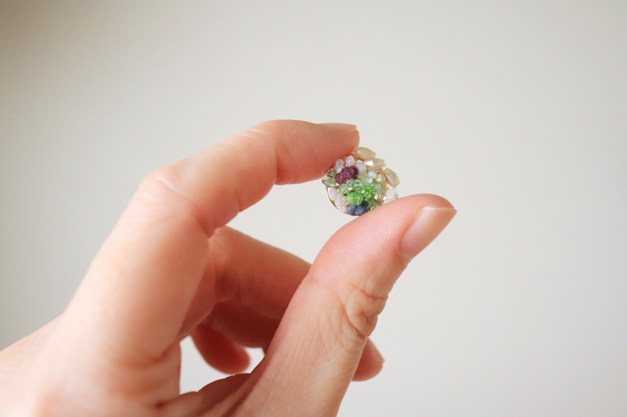 直径14mmの小さな華やかな一点ものアクセサリーです。